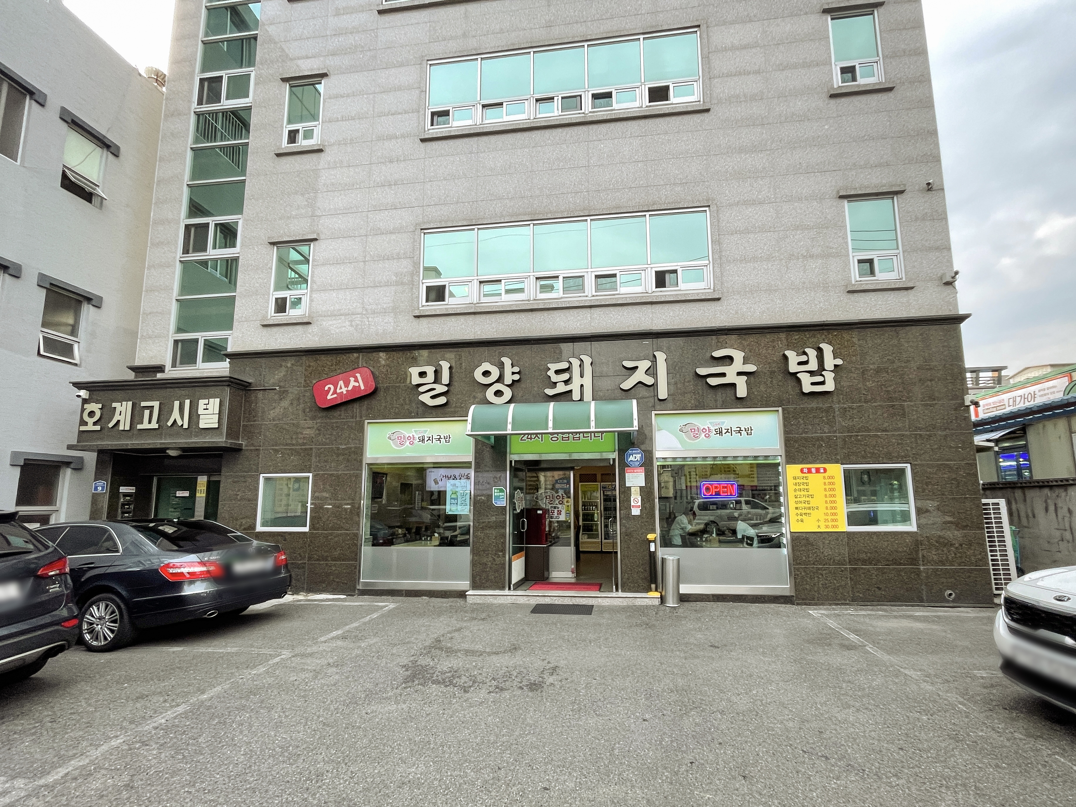 울산 북구 호계동 260-16, 1층에 위치한 '밀양돼지국밥'은 울산에 여행을 하다가 저녁식사를 하기위해 방문한 가게입니다. 차량을 가지고 여행을 하다보니, 주차장이 넓은 가게를 선호하는 편인데 호계동 '밀양돼지국밥'은 널찍한 주차장을 가지고 있어 편리하게 이용이 가능했습니다.