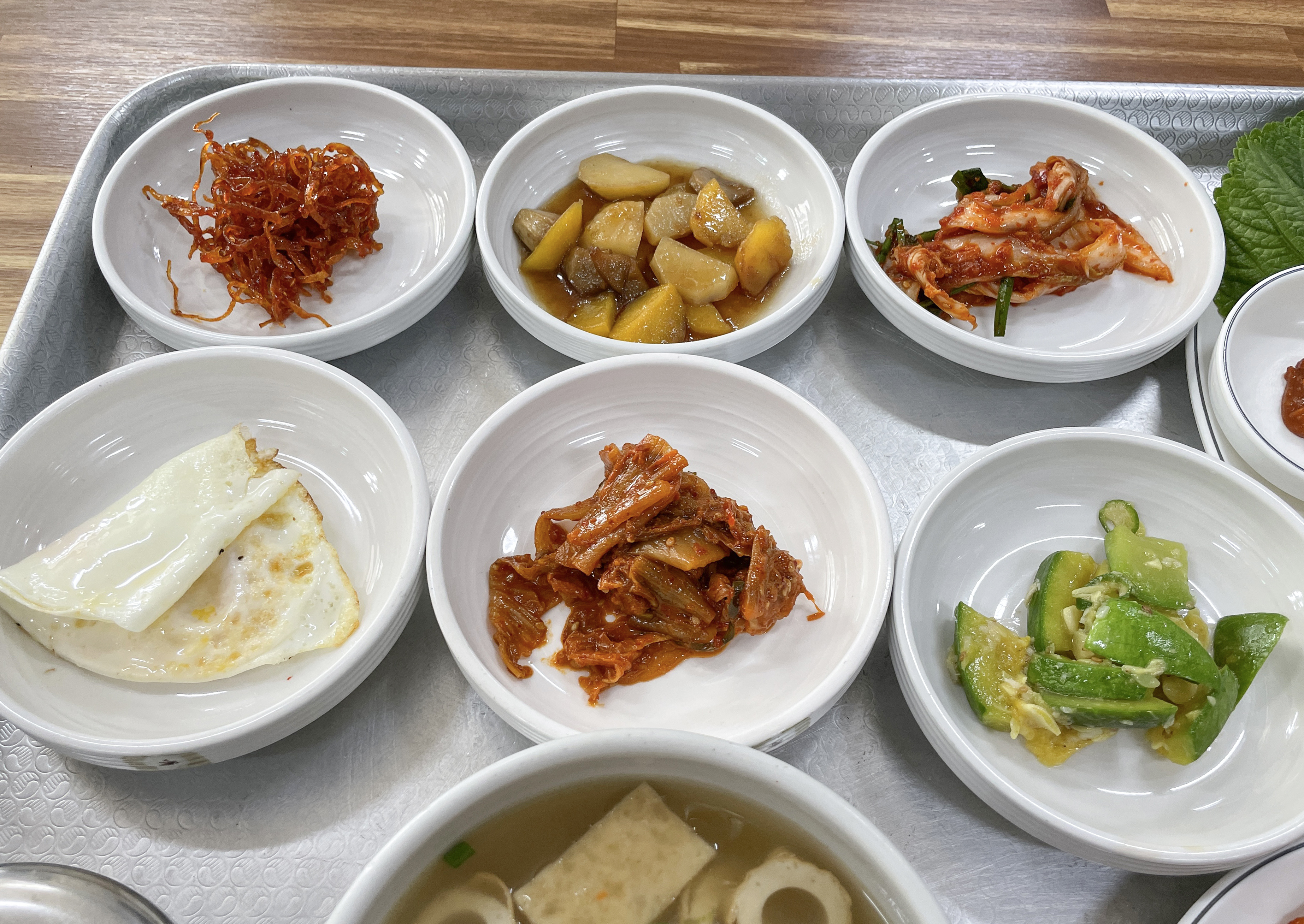 어묵국과 반찬들도 정갈하고 맛있었는데, 어묵국의 어묵도 좋은 재료를 쓰고, 쑥갓까지 넣어 실제 어묵탕 잘하는 가게의 맛과 비슷한 느낌이 나더라고요. 그밖에 반찬들도 깔끔 담백했고, 부족할 경우 더 달라고 말씀드리면 더 주셔서 배불리 만족할 만큼 식사할 수 있었습니다.