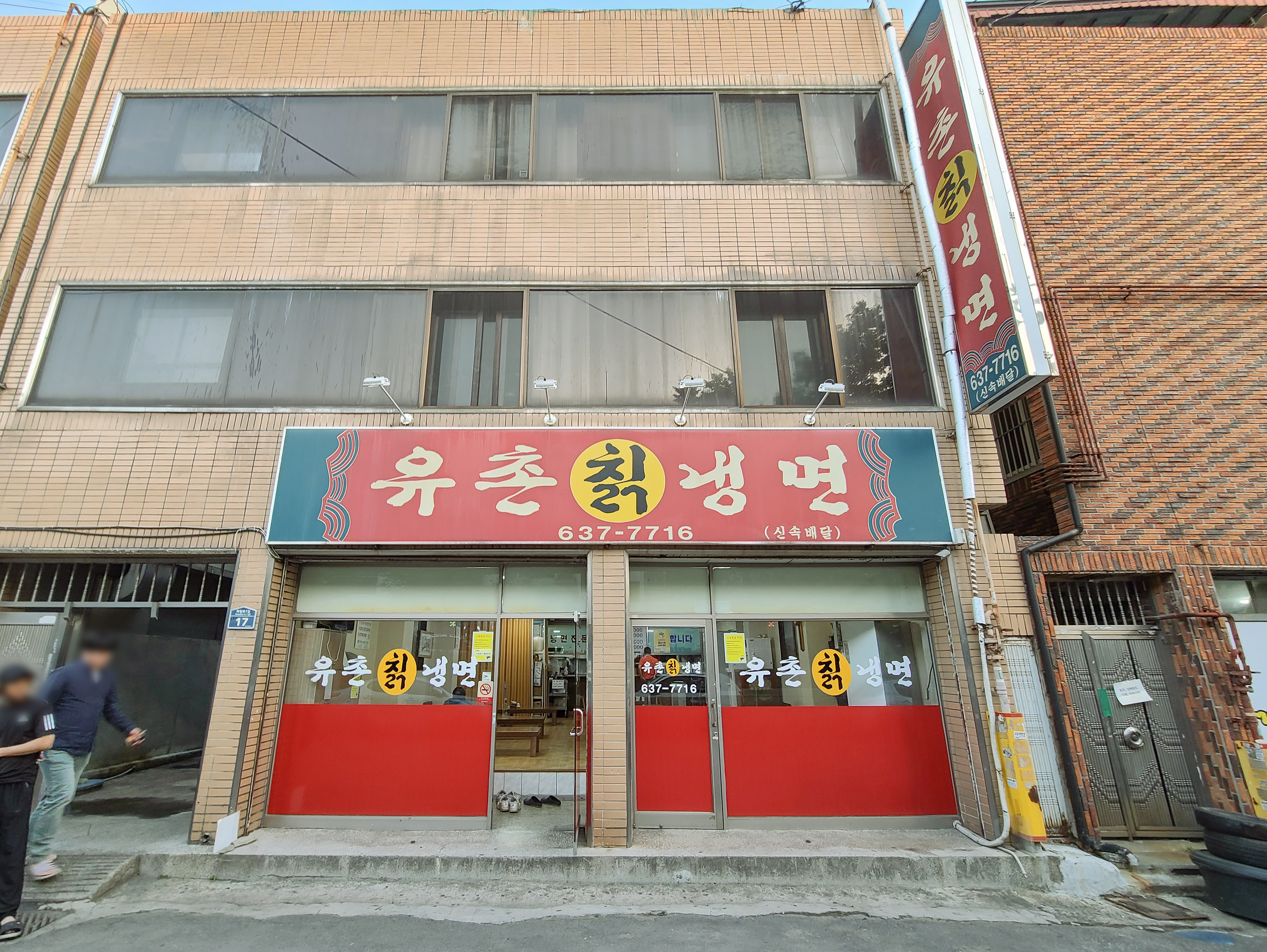 대구 달성군 화원읍 천내리 125-1, 1층 에 위치한 유촌칡냉면은 주차장이 따로 있지는 않았고, 가게 앞 이면도로에 주차를 하고 방문하였습니다. 가게 간판에서 내공 있는 노포의 느낌이 물씬 느껴졌고, 배달도 하는 가게인지 간판에 (신속배달)이라는 문구가 적혀있었습니다. 가게는 꽤 널찍했고 신발을 벗고 앉아서 먹는 형태였습니다.