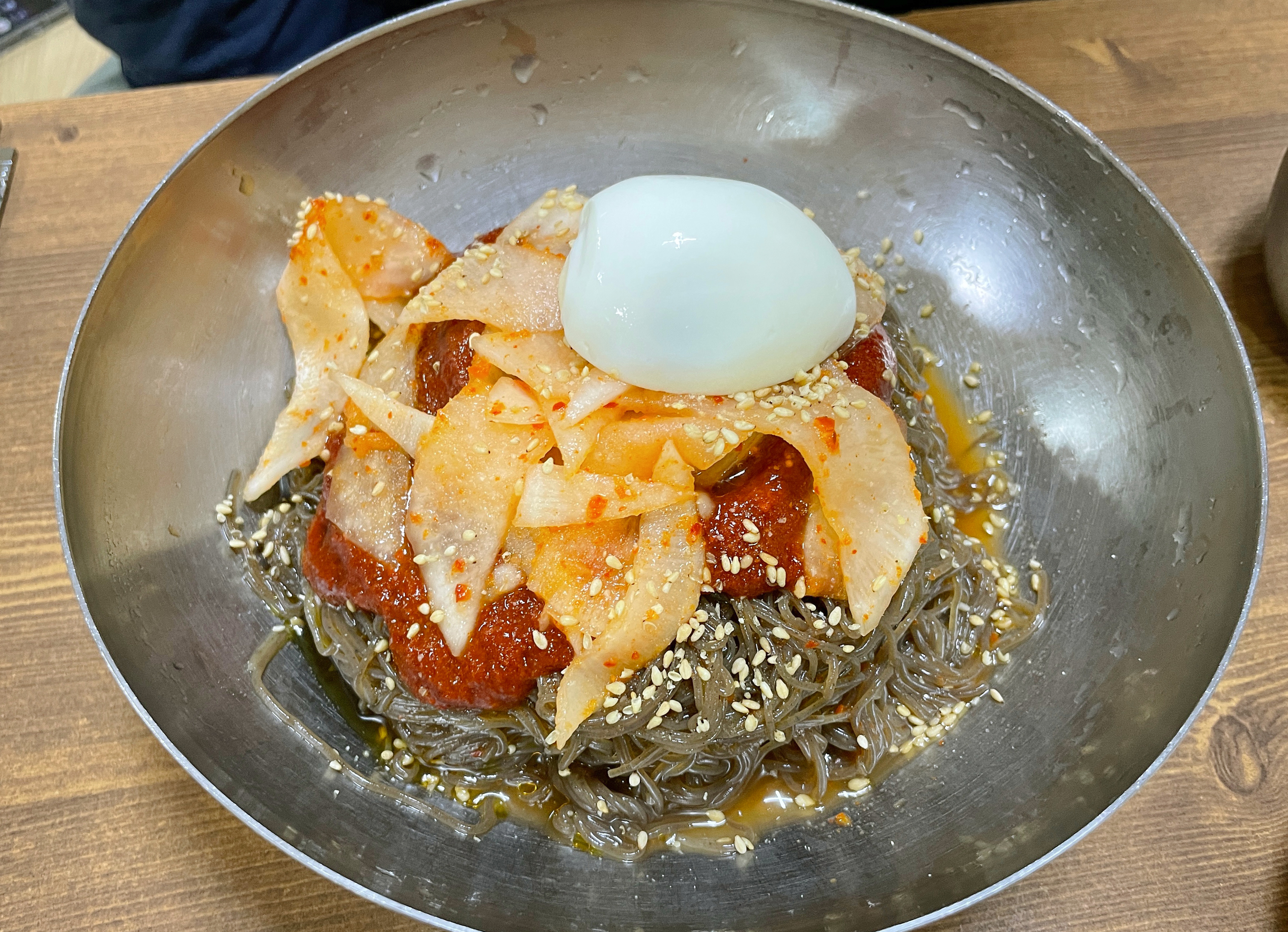 주문한 비빔냉면과 물냉면이 나왔습니다. 비빔냉면은 매콤 고소한 양념장에 무생채가 올라가 새콤함을 더해주었고, 물냉면은 육수에 살얼음을 동동 띄워서 시원함을 더해주었습니다. 면발도 꽤 많이 있어서 하나만 먹어도 배가 부를 것 같더라고요.