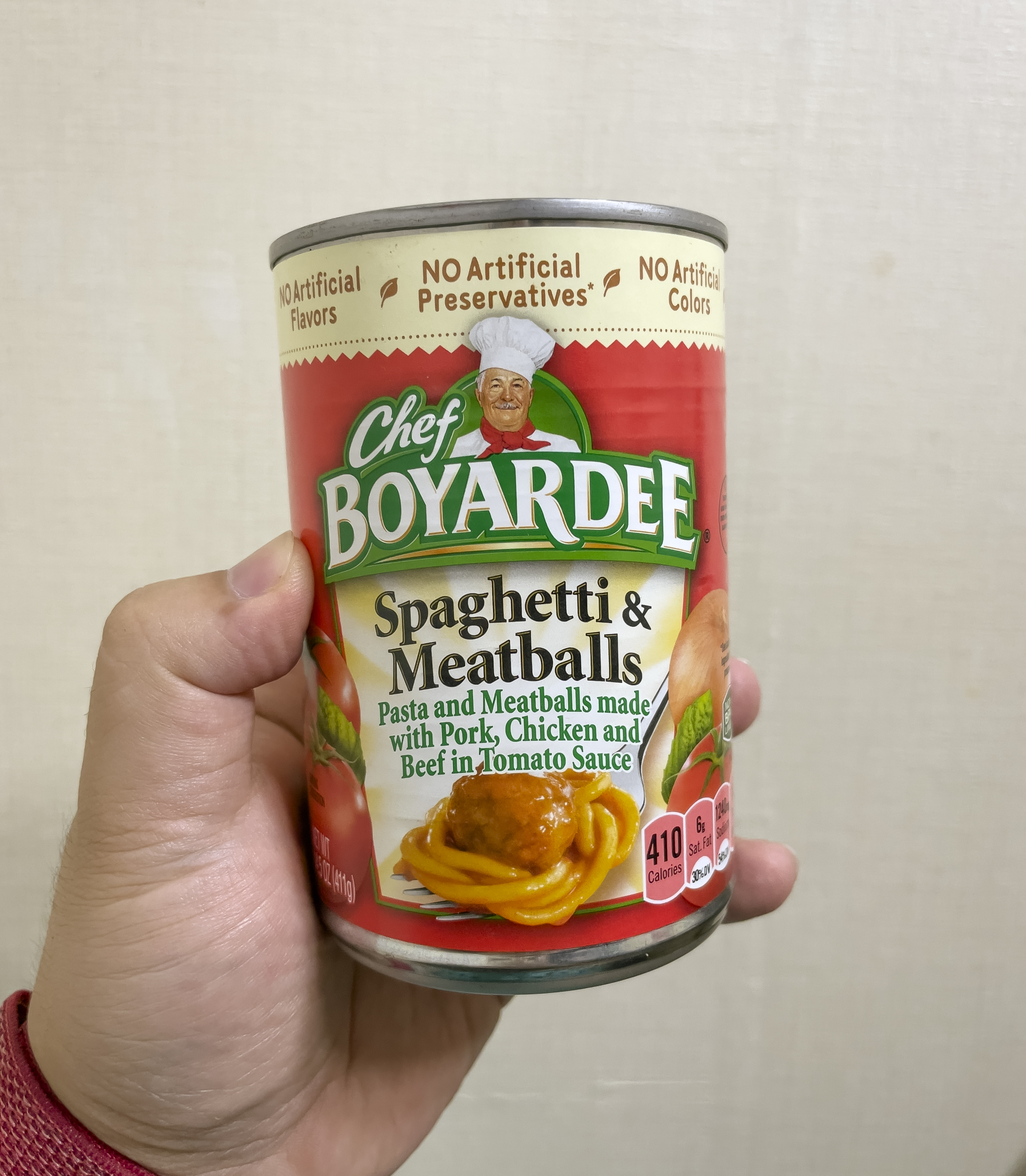 보야디 미트볼스파게티의 모습은 위와 같이 생겼습니다. 통조림 스파게티의 열량은 411g 당 410 칼로리라고 합니다. 조리방법은 전자레인지에 1분30초간 익혀주거나, 프라이팬에 중불로 데워주면 되었습니다.