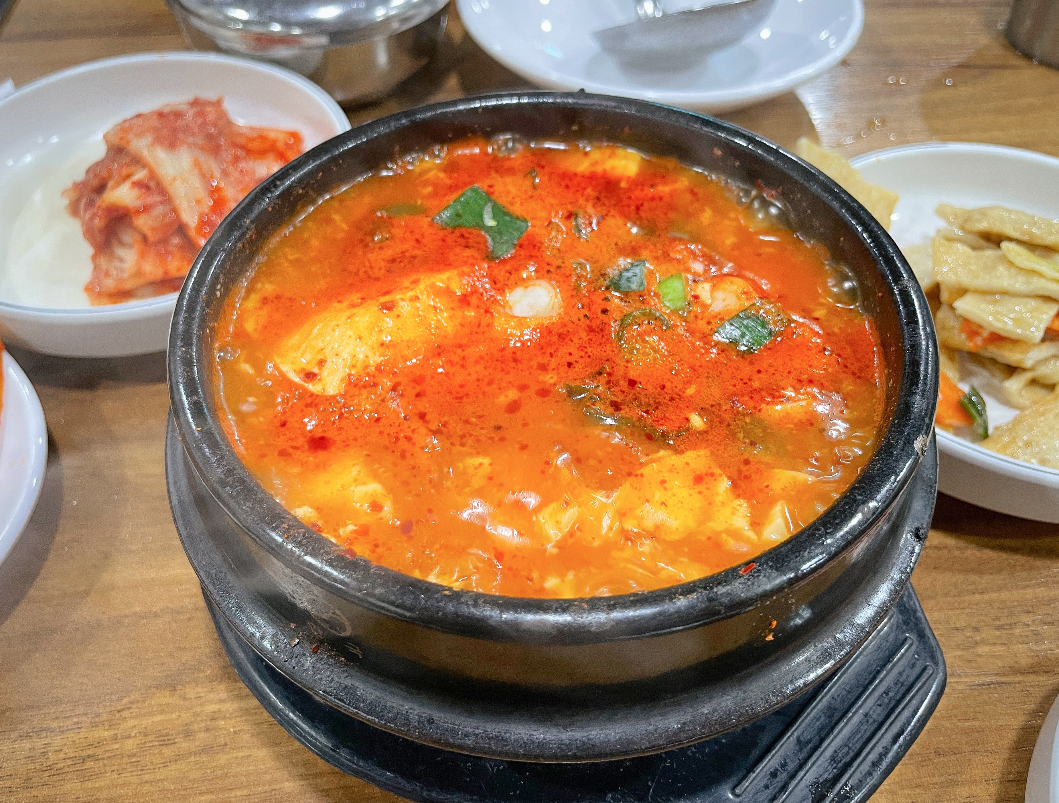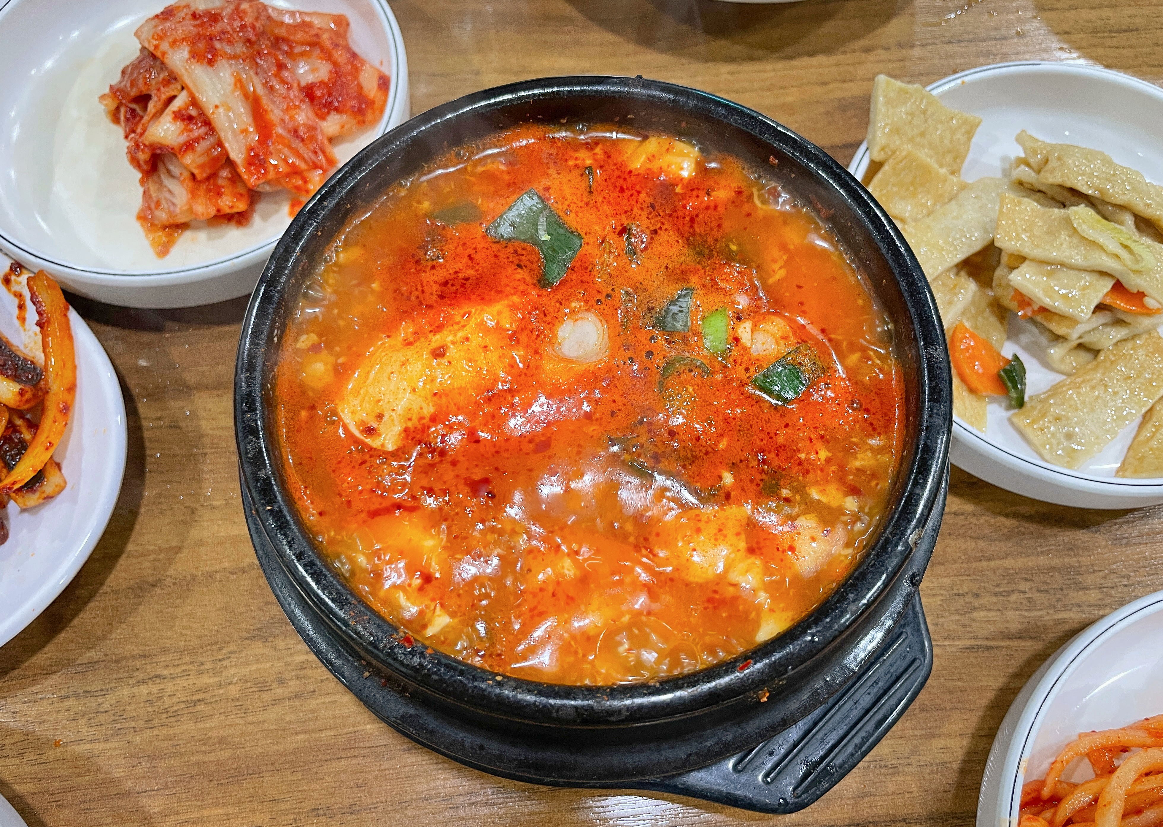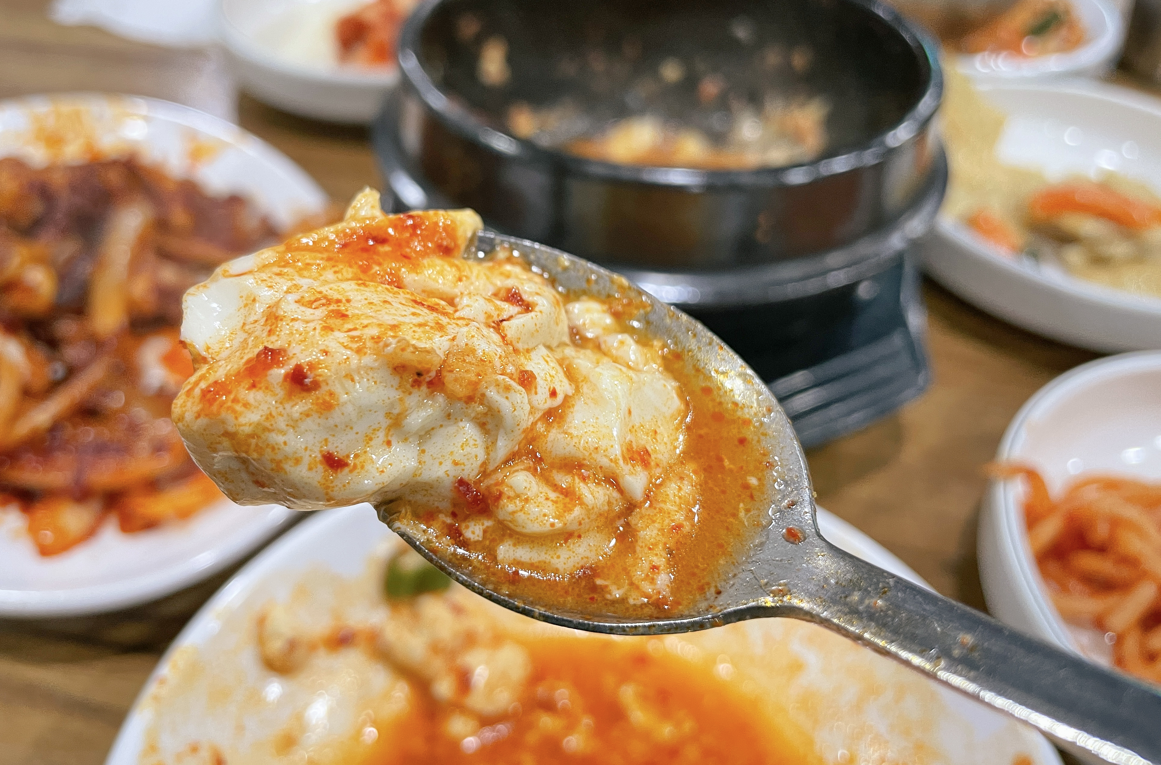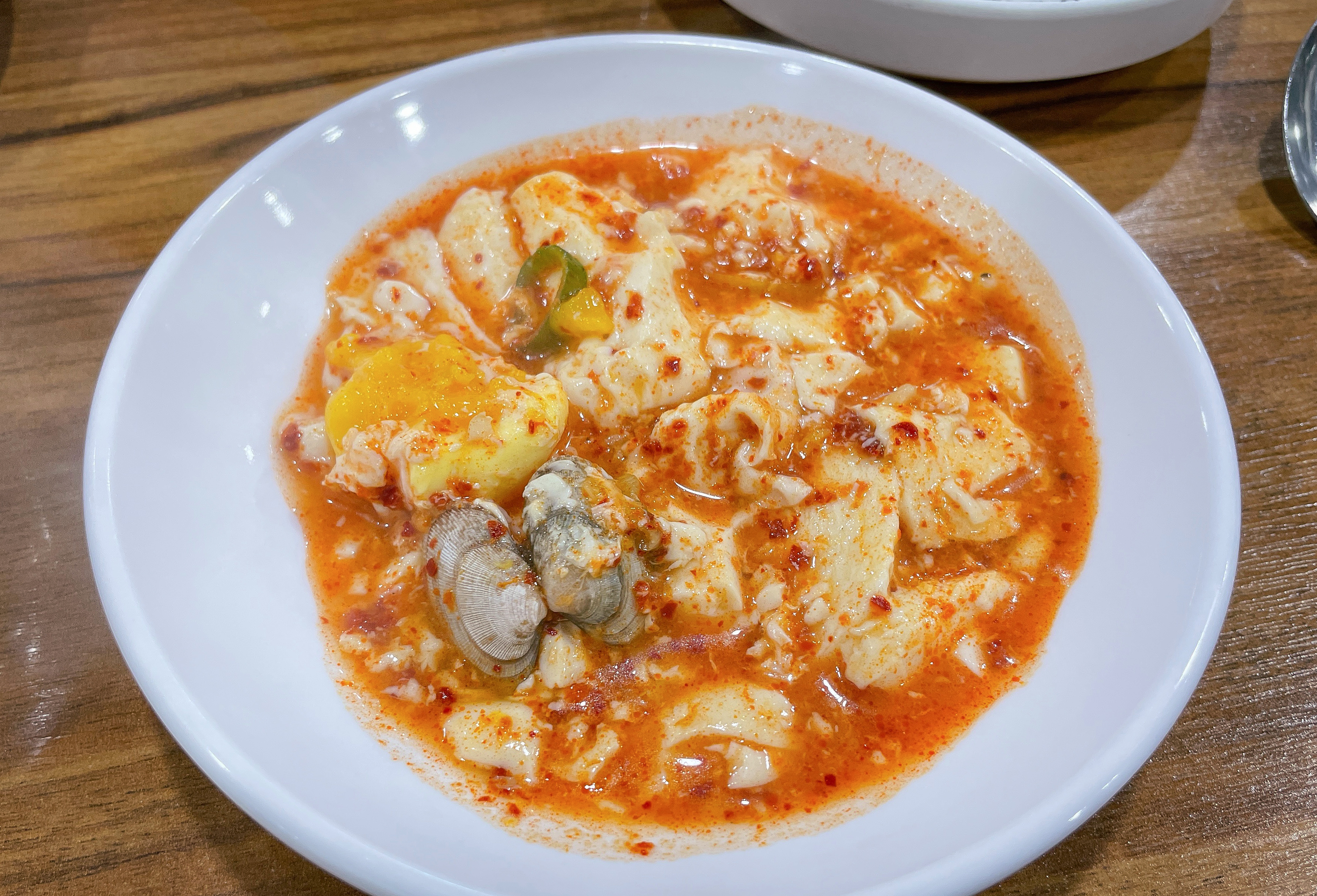 덕수정의 오징어볶음도 맛있었지만, 같이 주문했던 순두부찌개도 맛있게 먹었습니다. 순두부찌개는 약간 칼칼하게 끓인 진한 국물에, 바지락 그리고 달걀을 풀어넣은 형태의 찌개였습니다. 양도 제법 넉넉한 편이었고, 모두가 아는 순두부찌개의 그 맛(?)이었습니다.
