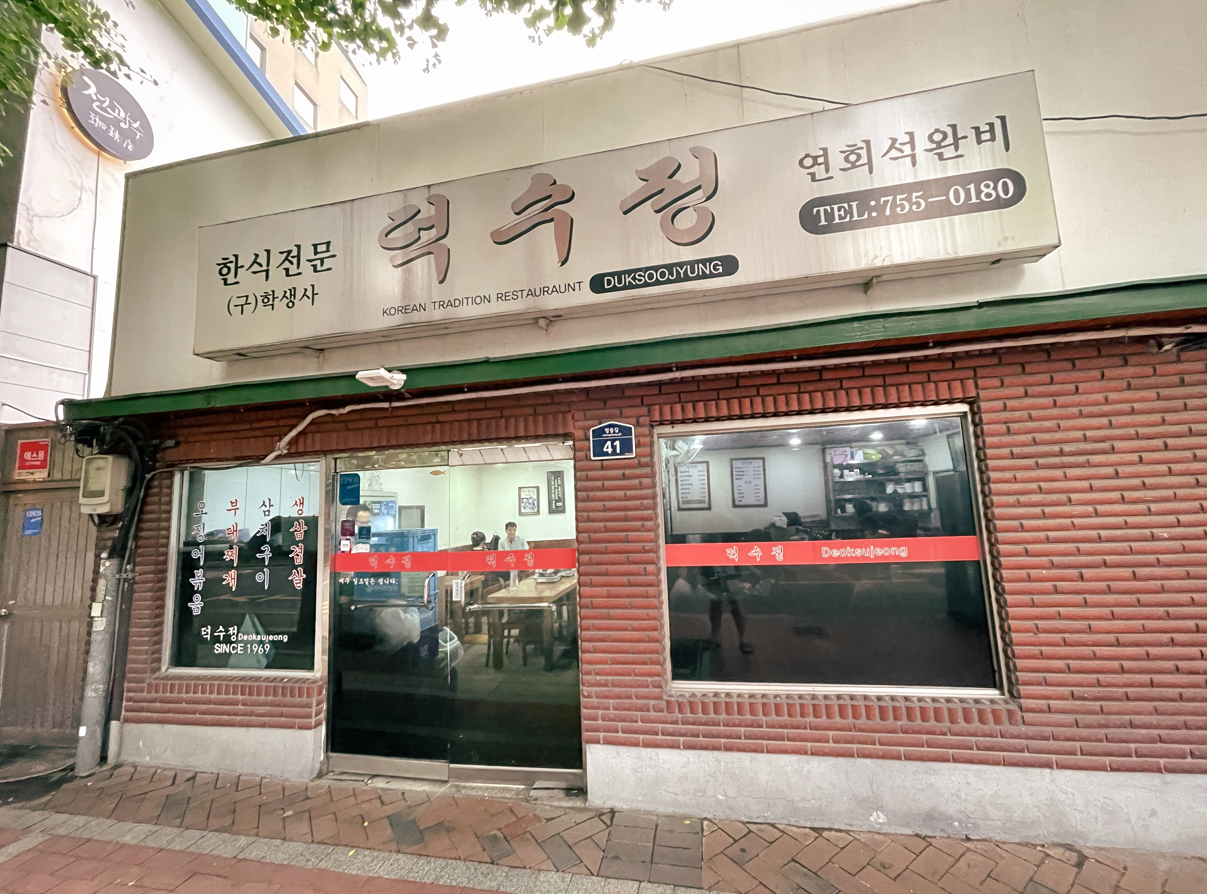 가게는 원래 이름인 '학생사'라는 이름과 함께 세월의 흔적이 보이는 '덕수정' 간판이 걸려있었습니다. 가게 한편에는 Since 1969라고 작게 적혀있었고, 실제 1대로 어머니와 운영 중이셨다는 할머니께 여쭤보니 "이 가게가 52년이 되었다" 고 알려주셨습니다. 원래는 분식집으로 운영하다가 점차 부대찌개, 오징어볶음 같은 메뉴들이 잘 팔리자 현재의 메뉴가 되었다고 하시더라고요.