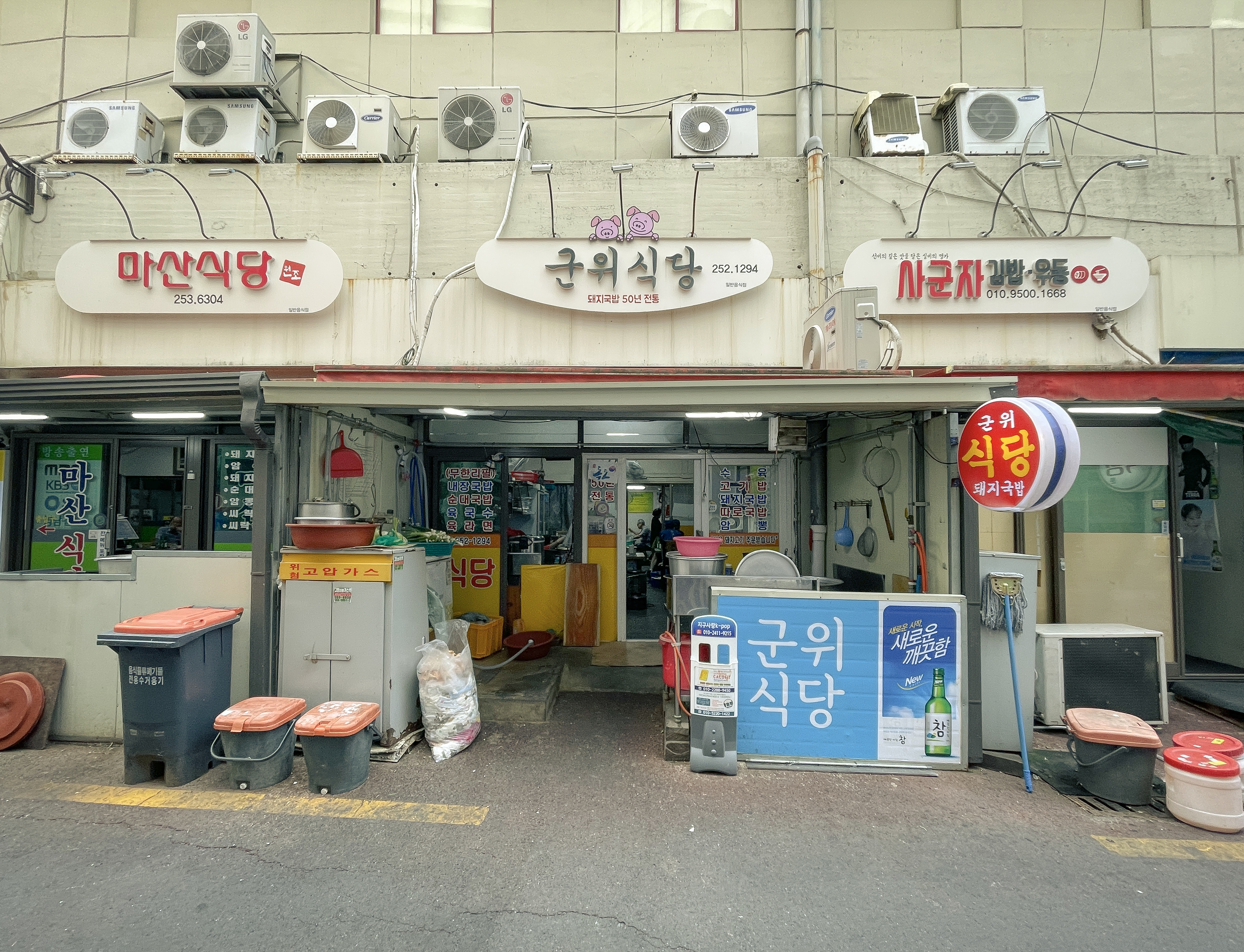 군위식당은 대구 중구 포정동 21-3, 1층에 위치해 있으며, 08시~22시까지 영업중인 가게였습니다. 특히 이 가게는 수육과 밥이 따로 나오는 고기밥이 유명한 가게였는데요, 저는 그냥 따로국밥을 주문해서 먹었습니다.