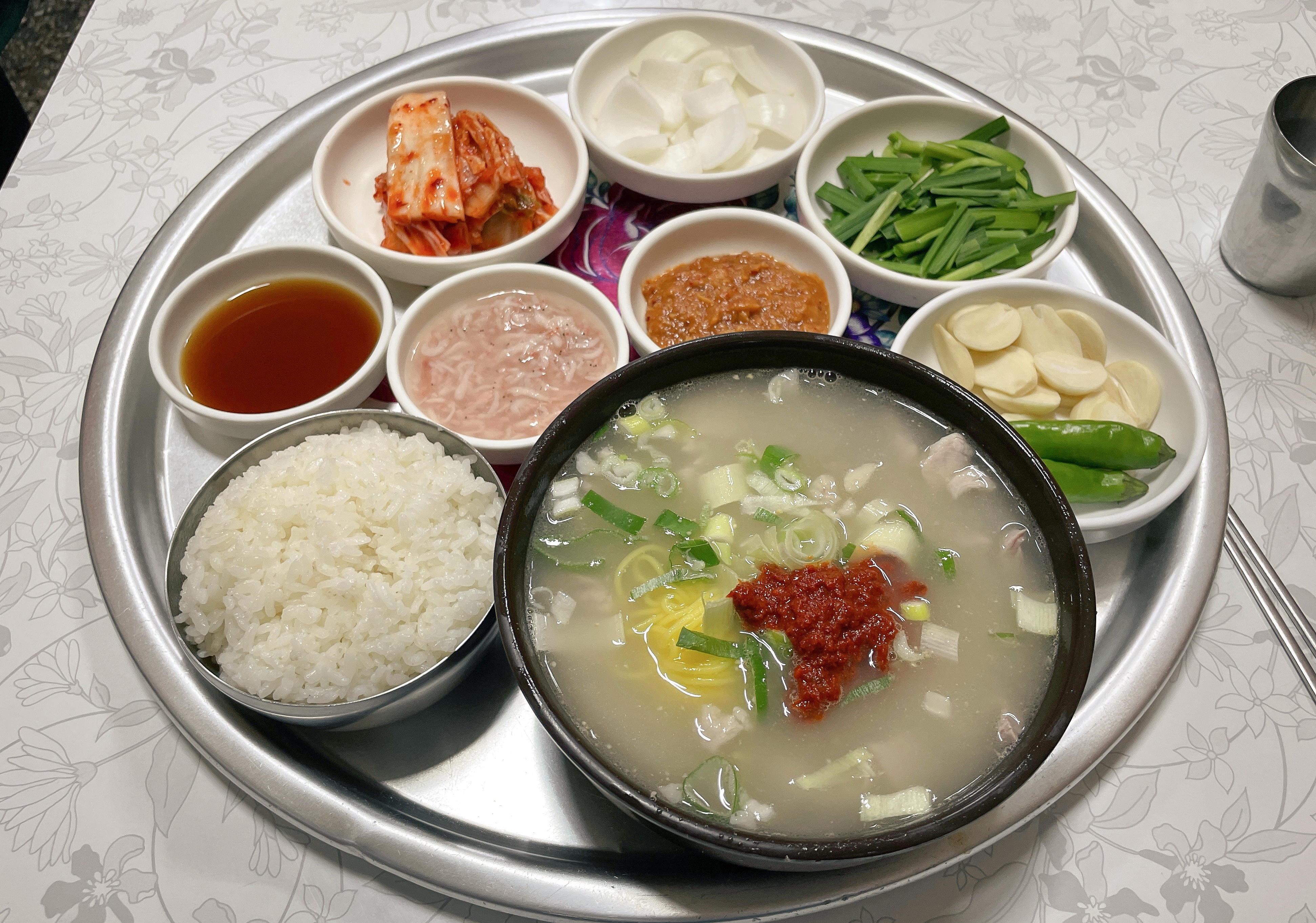 돼지국밥의 돼지고기를 어느 정도 건져먹은 다음, 밥을 국물에 말아서 먹었습니다. 앞서 먹은 소면도 있고 돼지고기도 국밥 안에 많이 들어있어서 속이 꽤 든든하더라고요. 배가 많이 고픈 상태였다면 고기밥을 주문해도 괜찮을 것 같다는 생각이 들었습니다.