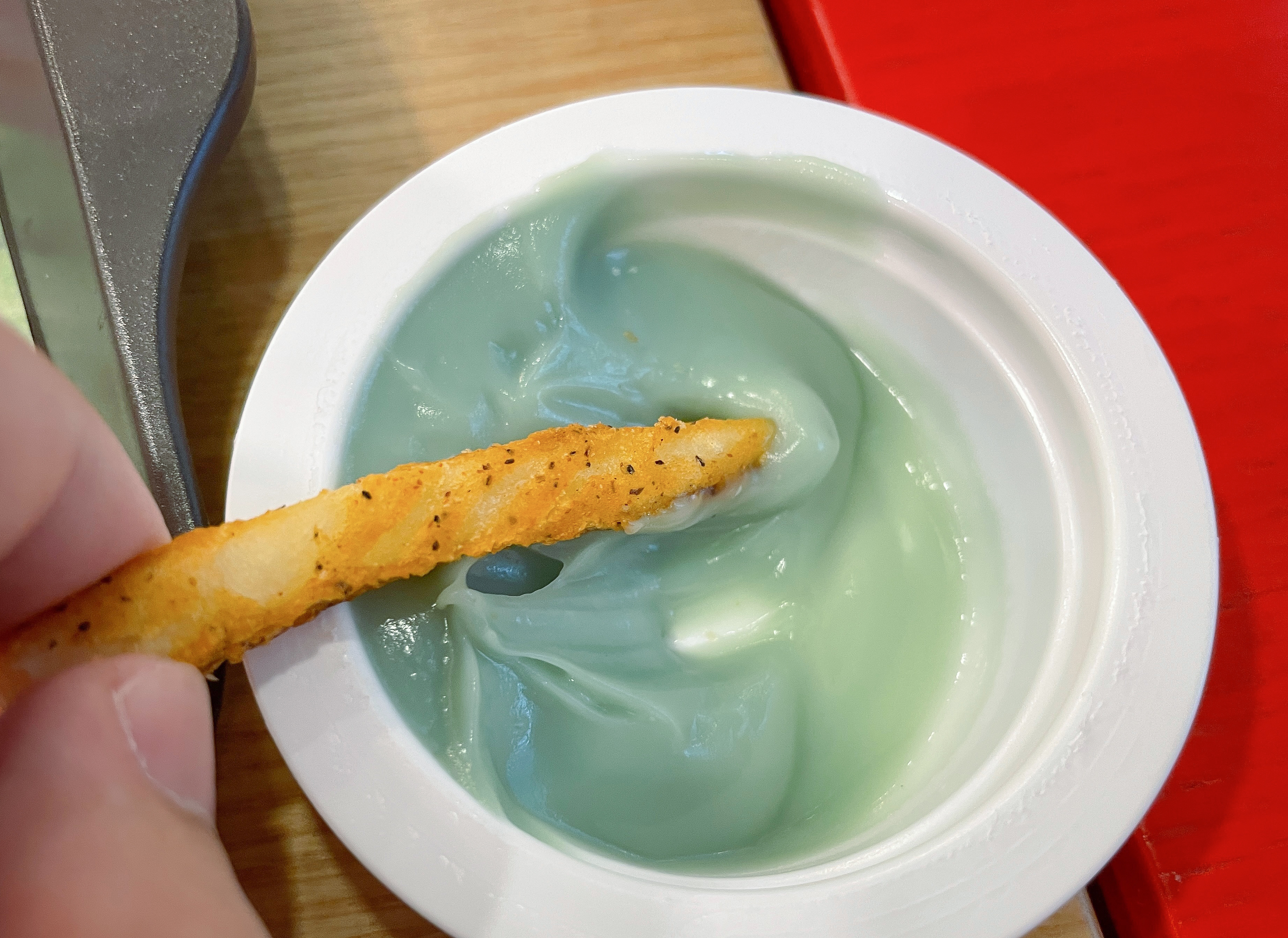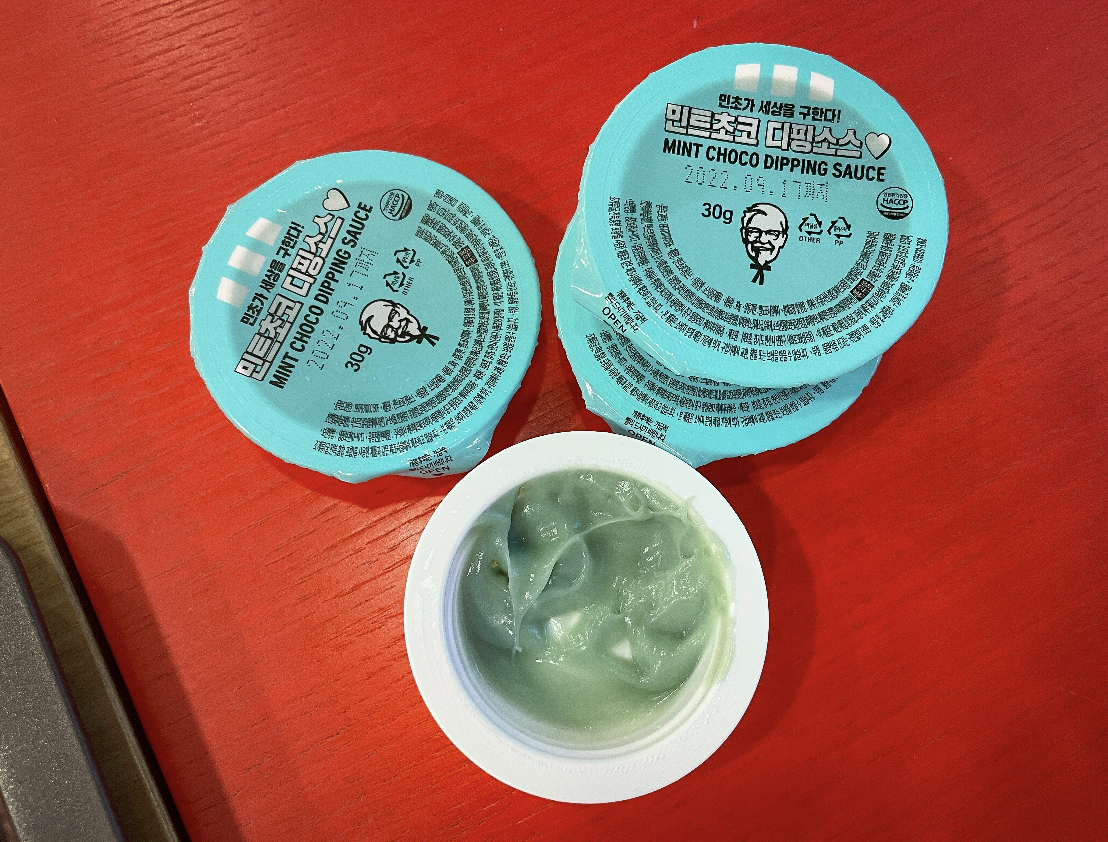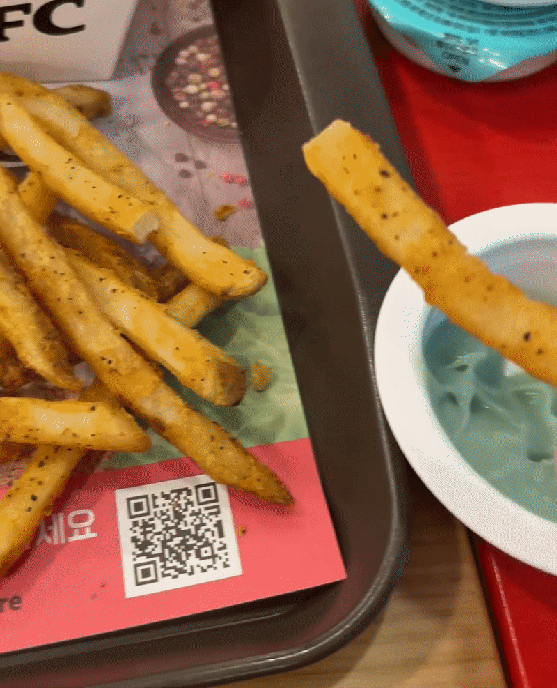 민트초코 디핑소스는 점도가 좀 있는 편이었고, 기름에 튀긴 치킨과 감자튀김의 느끼한 맛을 잡아주긴 하는데, 민트초코의 향 자체가 너무 강하다 보니 원래 메뉴의 맛을 해친다고나 할까요. 정말 민초단이 아니라면 호불호가 있을듯한 맛이었습니다. 여러분은 민트초코맛에 대해 어떻게 생각하시나요??