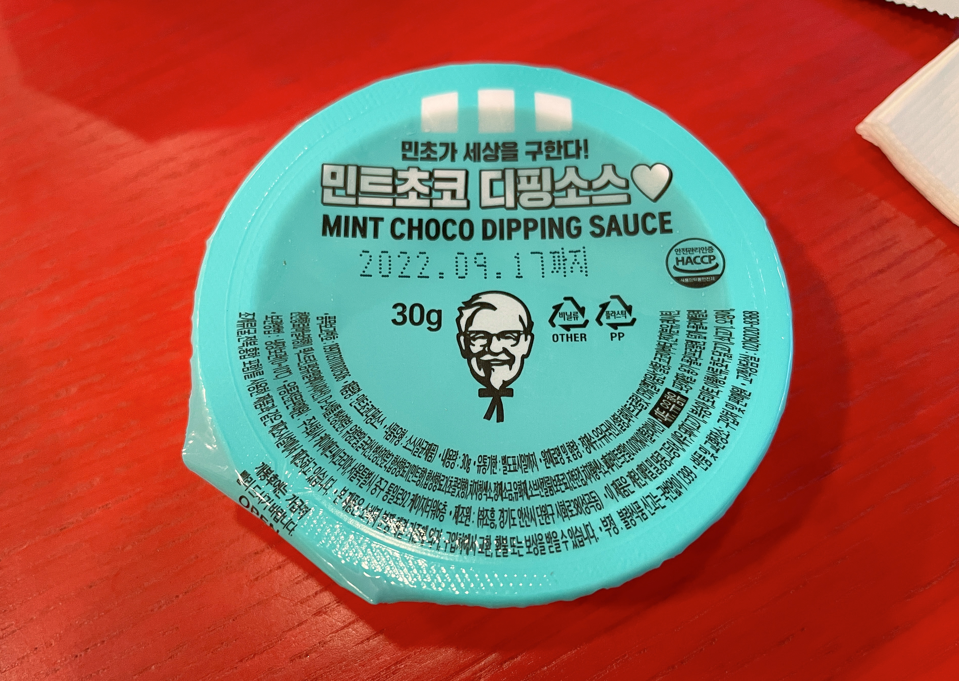 KFC 민트초코디핑소스는 개당 900원에 판매되고 있었고, KFC 다른 소스들이 300원~500원에 판매되는 것을 고려하면 약간 비싼 편에 속하는 소스라고 볼 수 있겠습니다.