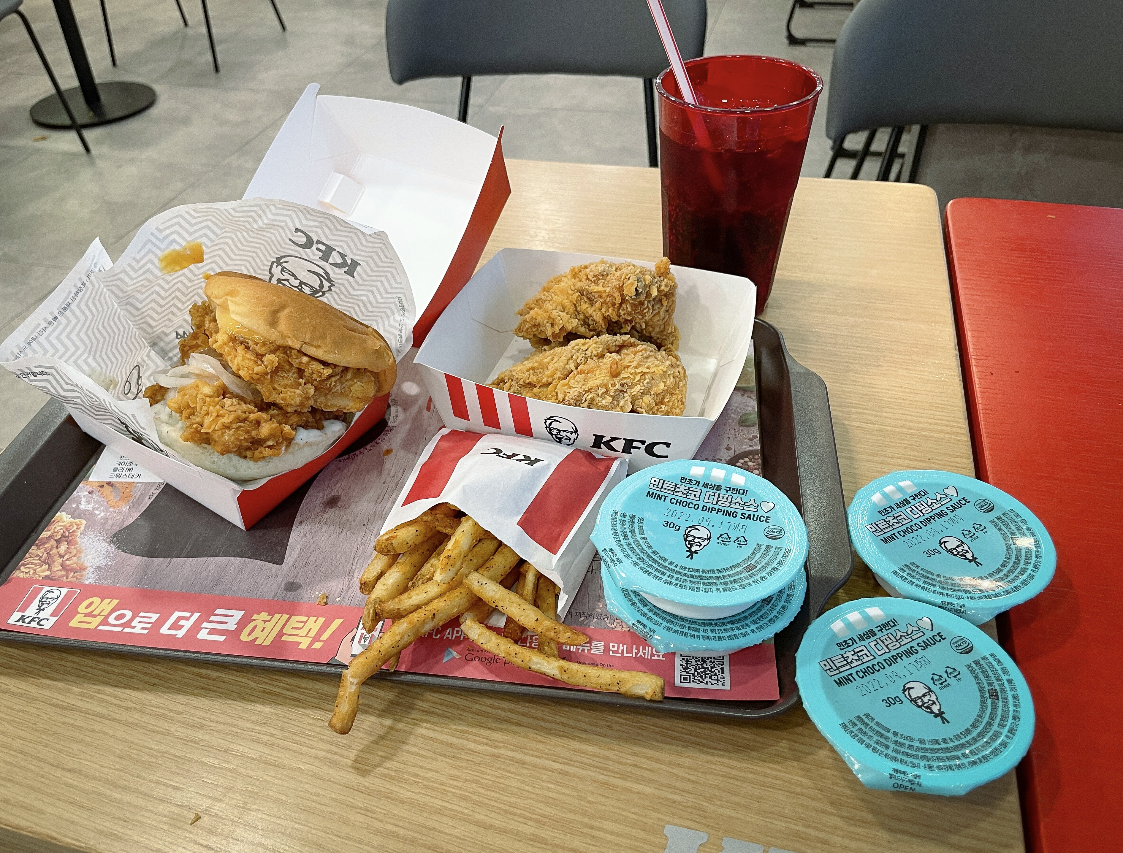 최근 'KFC ✕ 배달의민족' 컬래버레이션으로 나오게 된 민트초코 디핑소스를 먹어봤습니다.