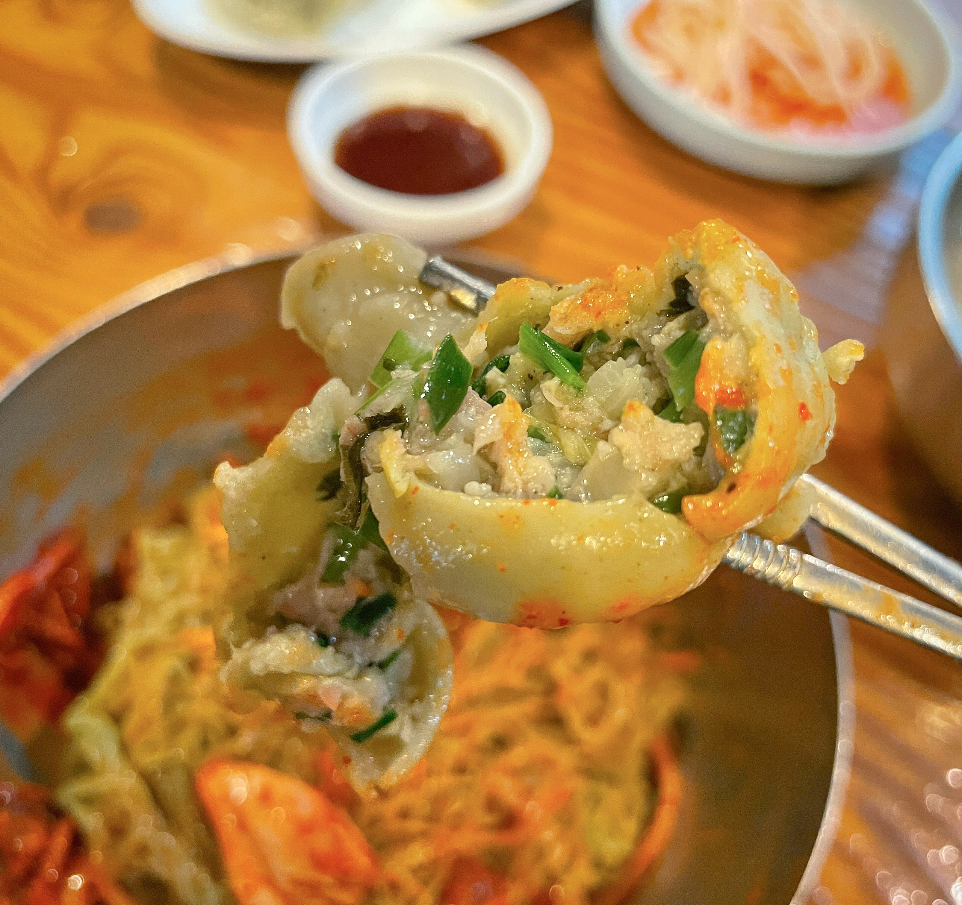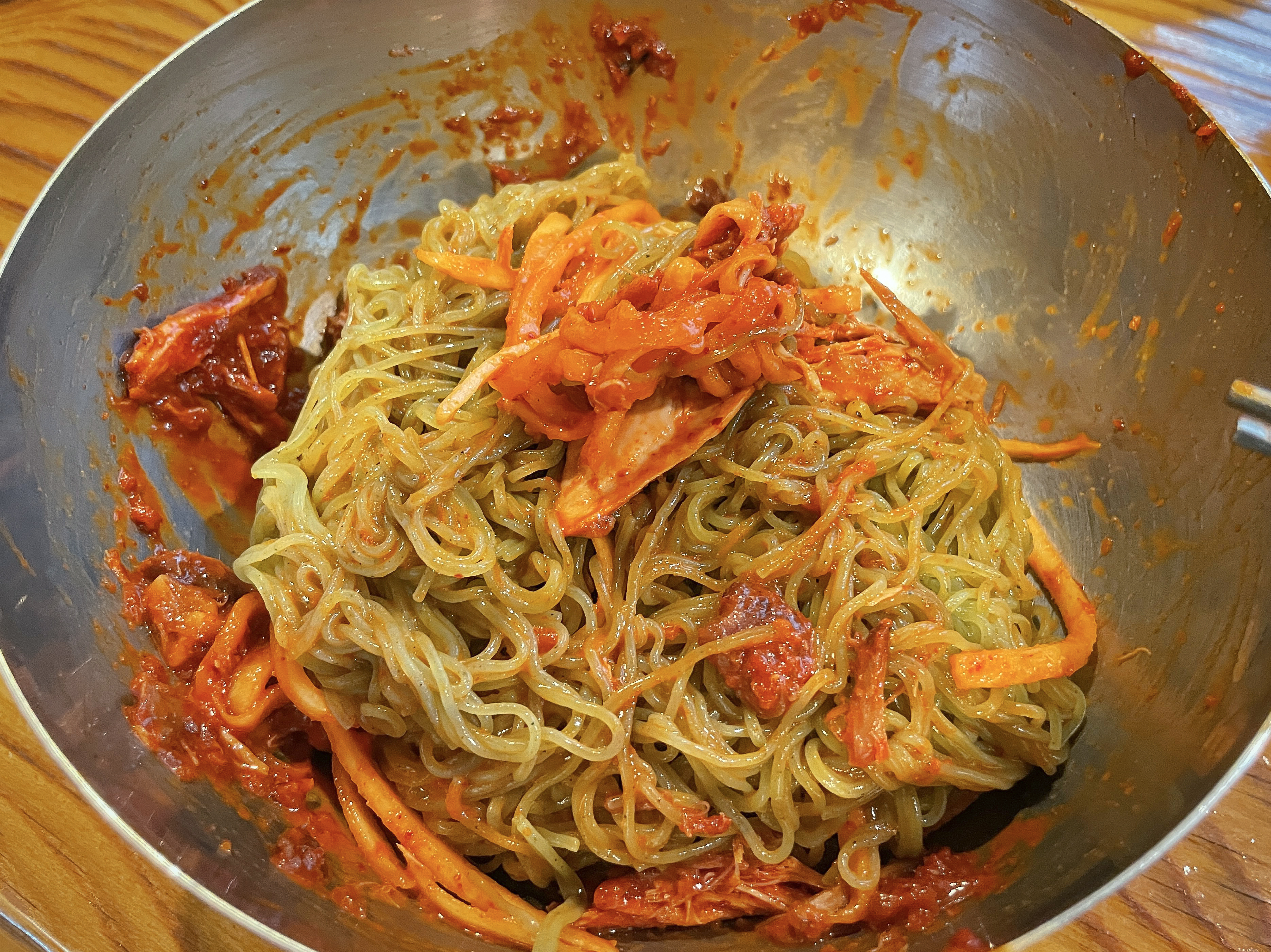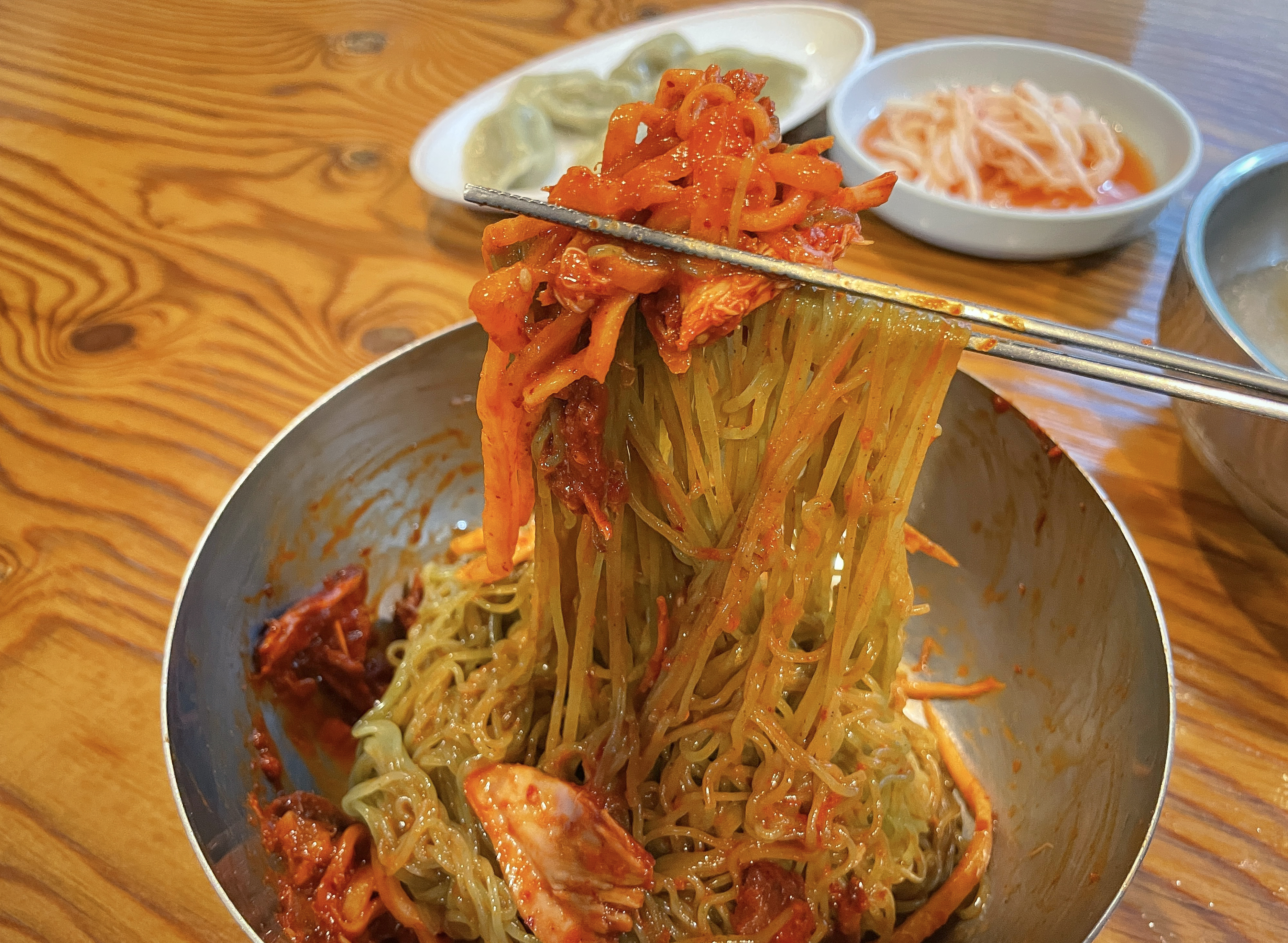 72세 가게 사장님이 직접 담근 파김치와 배추김치는 시골집 김치를 먹는 듯이 맛있었고, 칼국수와도 잘 어울렸습니다. 이 날 꿩칼국수, 꿩 냉면, 꿩만두를 먹었는데 가장 맛있게 먹었던 메뉴는 꿩 냉면(비빔)이었습니다. 새콤한 양념장과 꿩고기의 조합이 잘 어울렸고, 요즘같이 더운 날 먹기에 딱인 음식이었습니다.