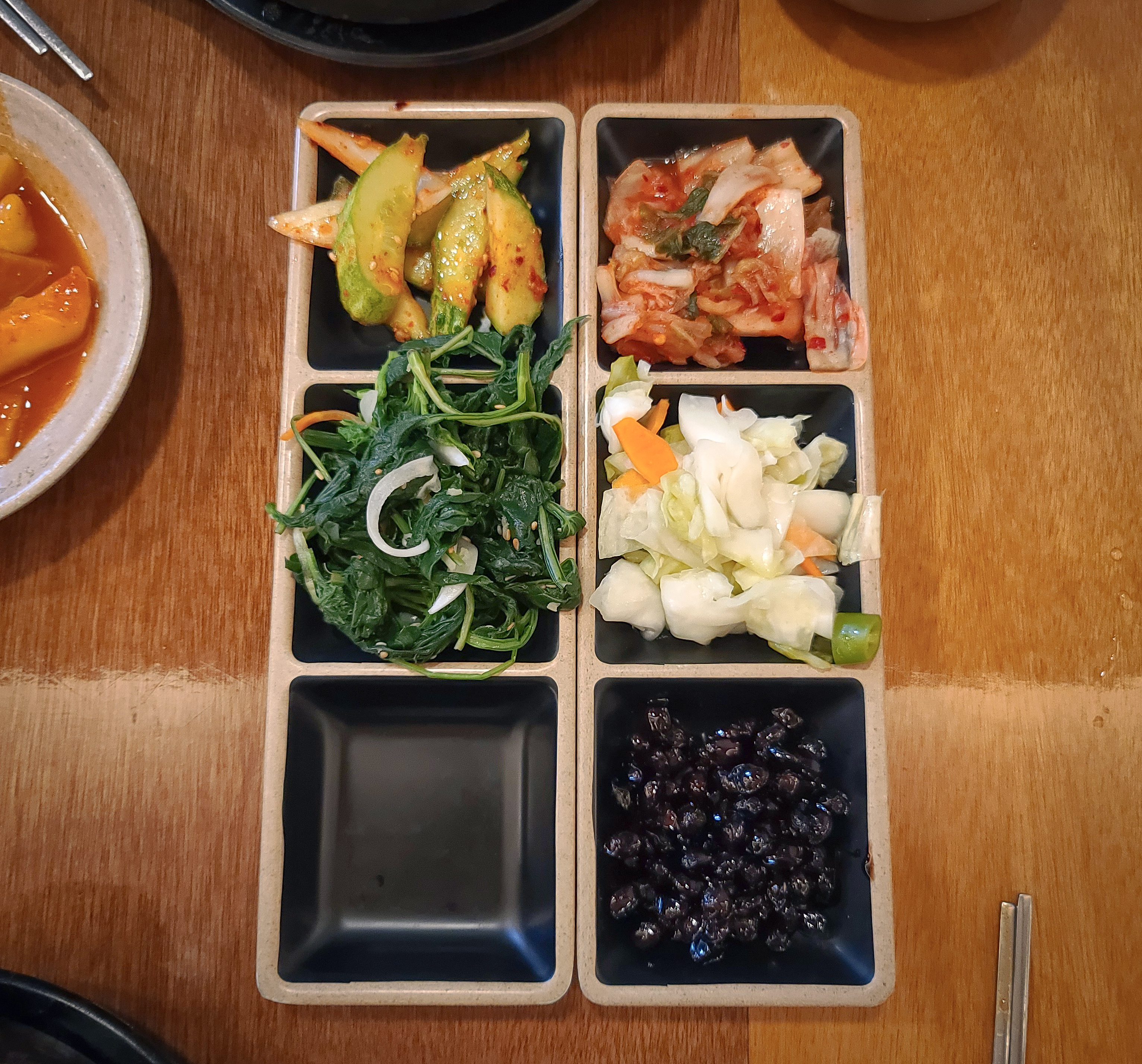 보라매 순남시래기 가게에 들어가면 셀프바 형태로 반찬을 덜어갈 수 있는 공간이 마련되어 있어 원하는 반찬을 원하는 만큼 덜어갈 수 있게 되어있었습니다. 도토리묵과 떡볶이, 잡채, 배추김치, 시금치무침, 오이무침, 콩자반 등 반찬도 다양해서 마치 집밥을 먹는 느낌이 들었습니다.
