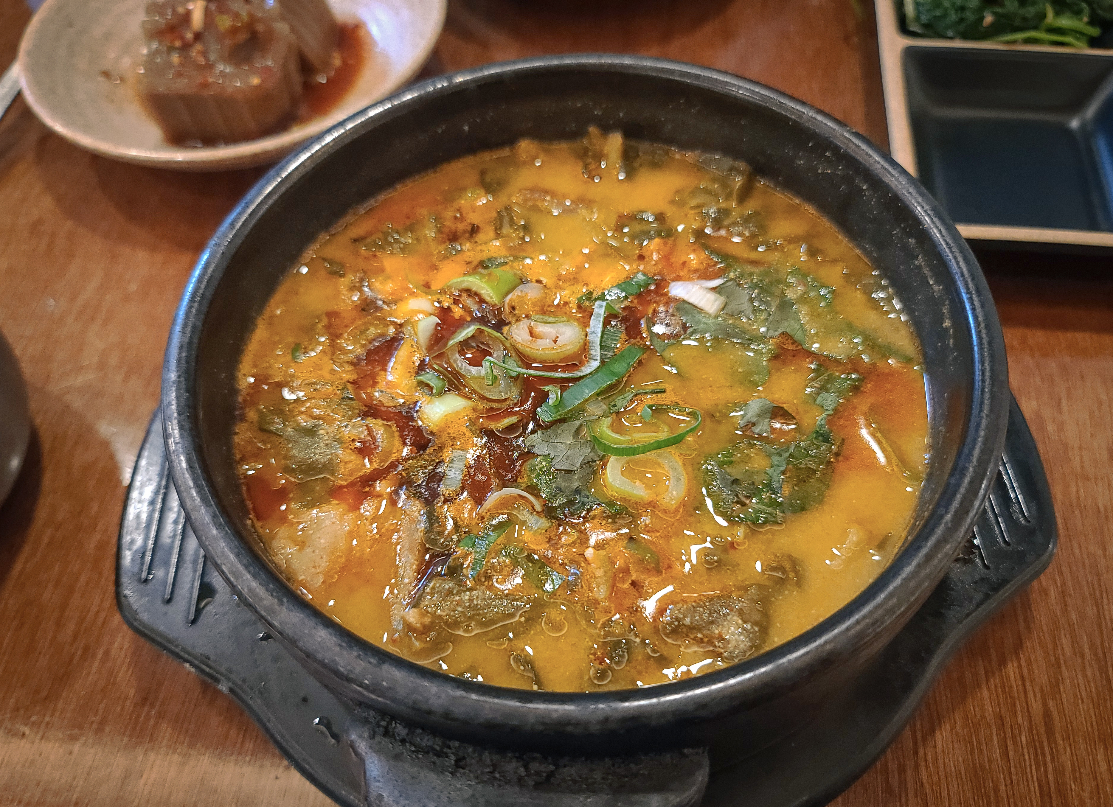 시래기곱창뚝배기는 얼큰담백한 시래기국에 부드러운 식감의 고소한 소곱창을 넣어 깊은 맛을 낸 메뉴라고 합니다. 제가 시래기 된장국을 워낙 좋아해서 순남시래기의 시래기곱창뚝배기는 처음 먹어보는 메뉴인데도 마음에 들더라고요.