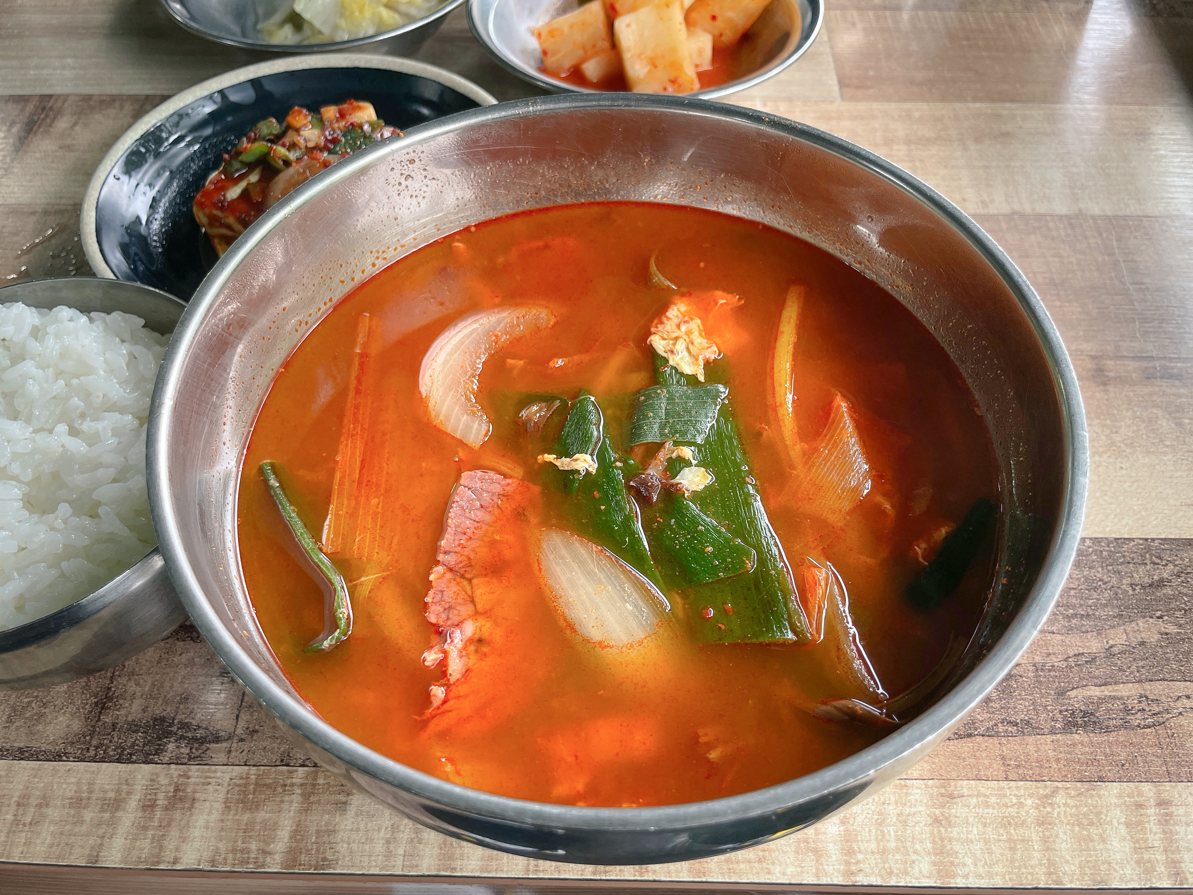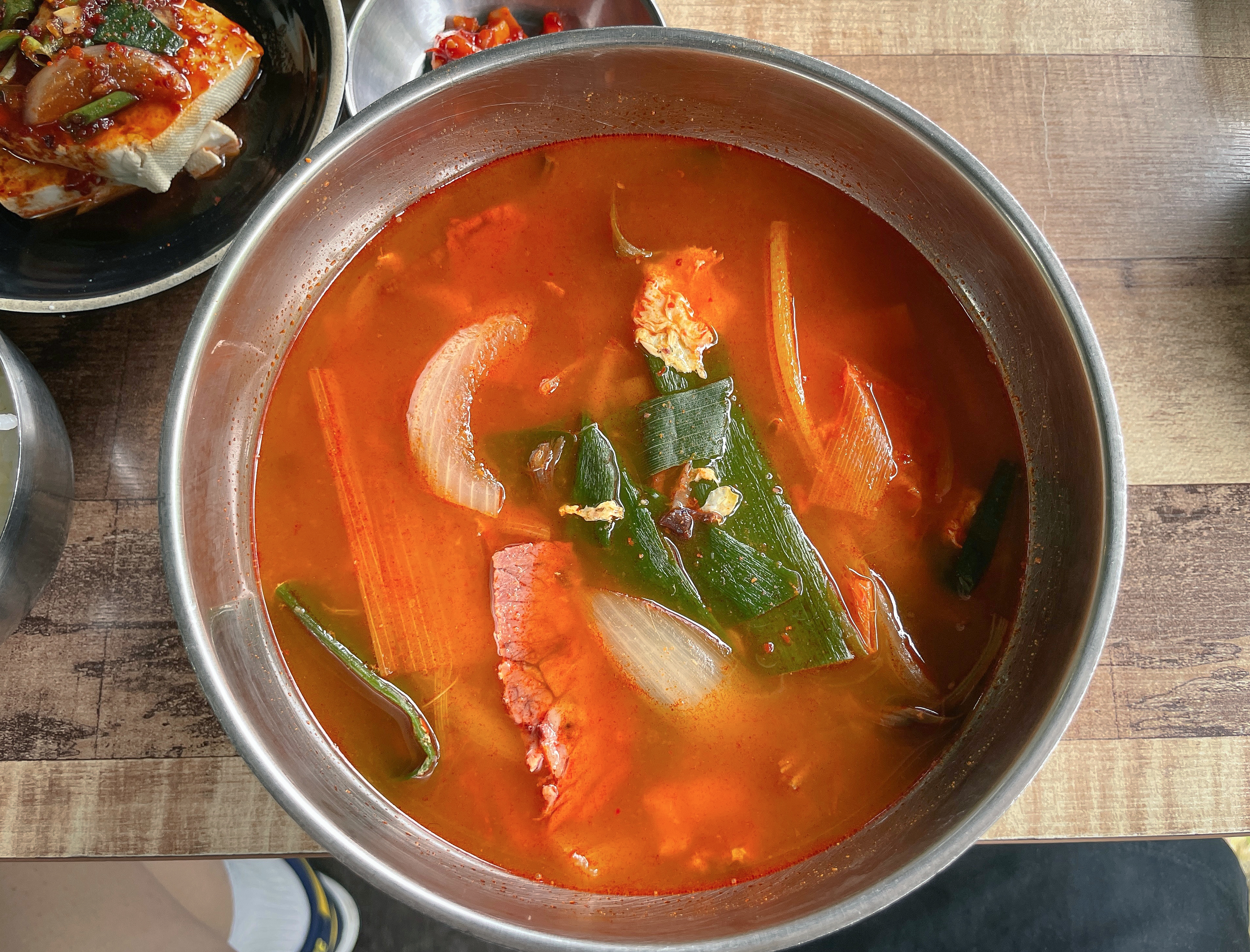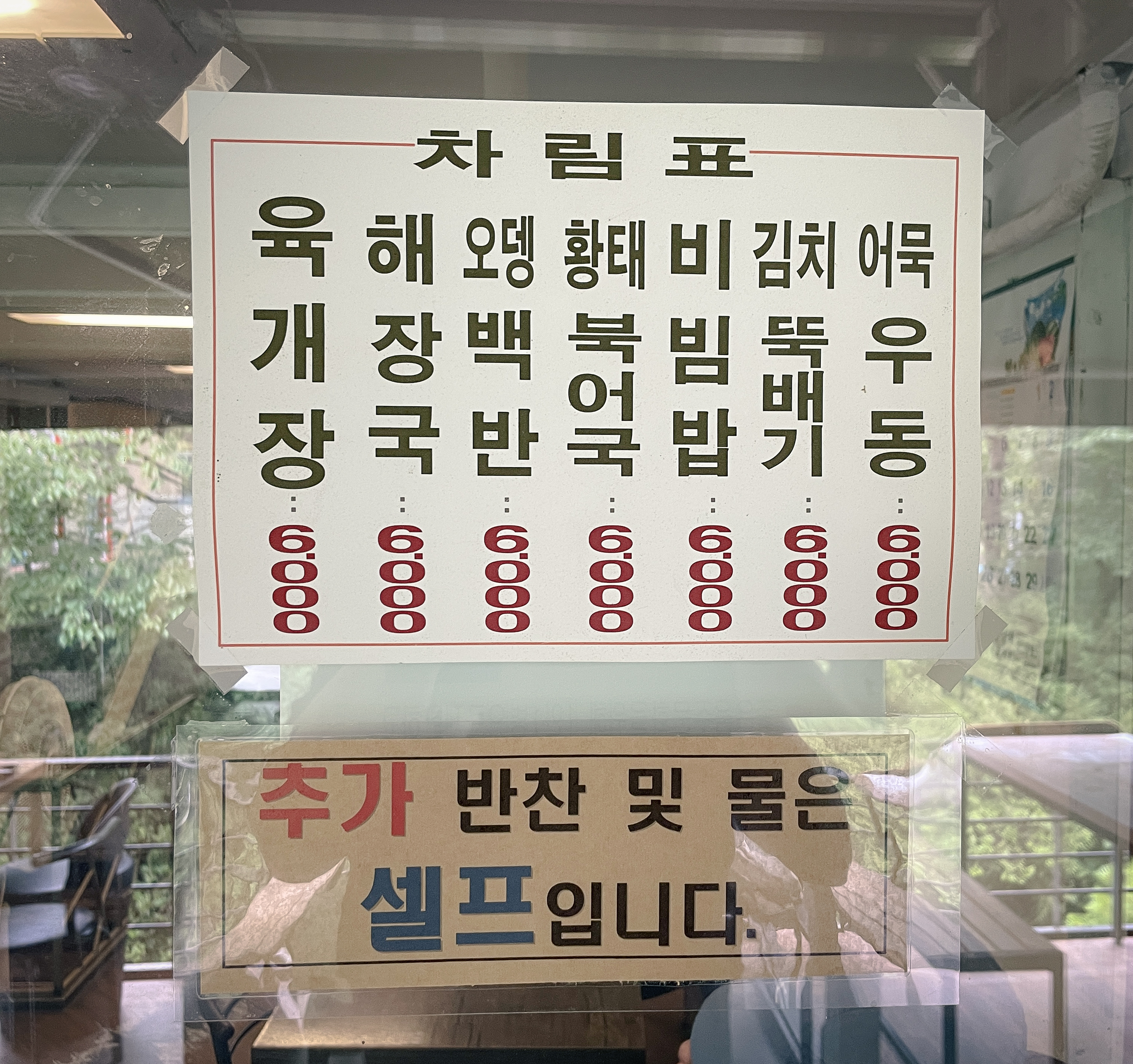 샘터마루의 메뉴는 모두 6,000원으로 육개장, 해장국, 오뎅백반, 황태북어국, 비빔밥, 김치뚝배기, 어묵우동이 있었습니다. 특히 이 가게의 가장 인기 있는 메뉴는 육개장으로 대부분의 손님들이 육개장을 주문하더라고요. 저와 지인은 육개장과 비빔밥을 주문했습니다.