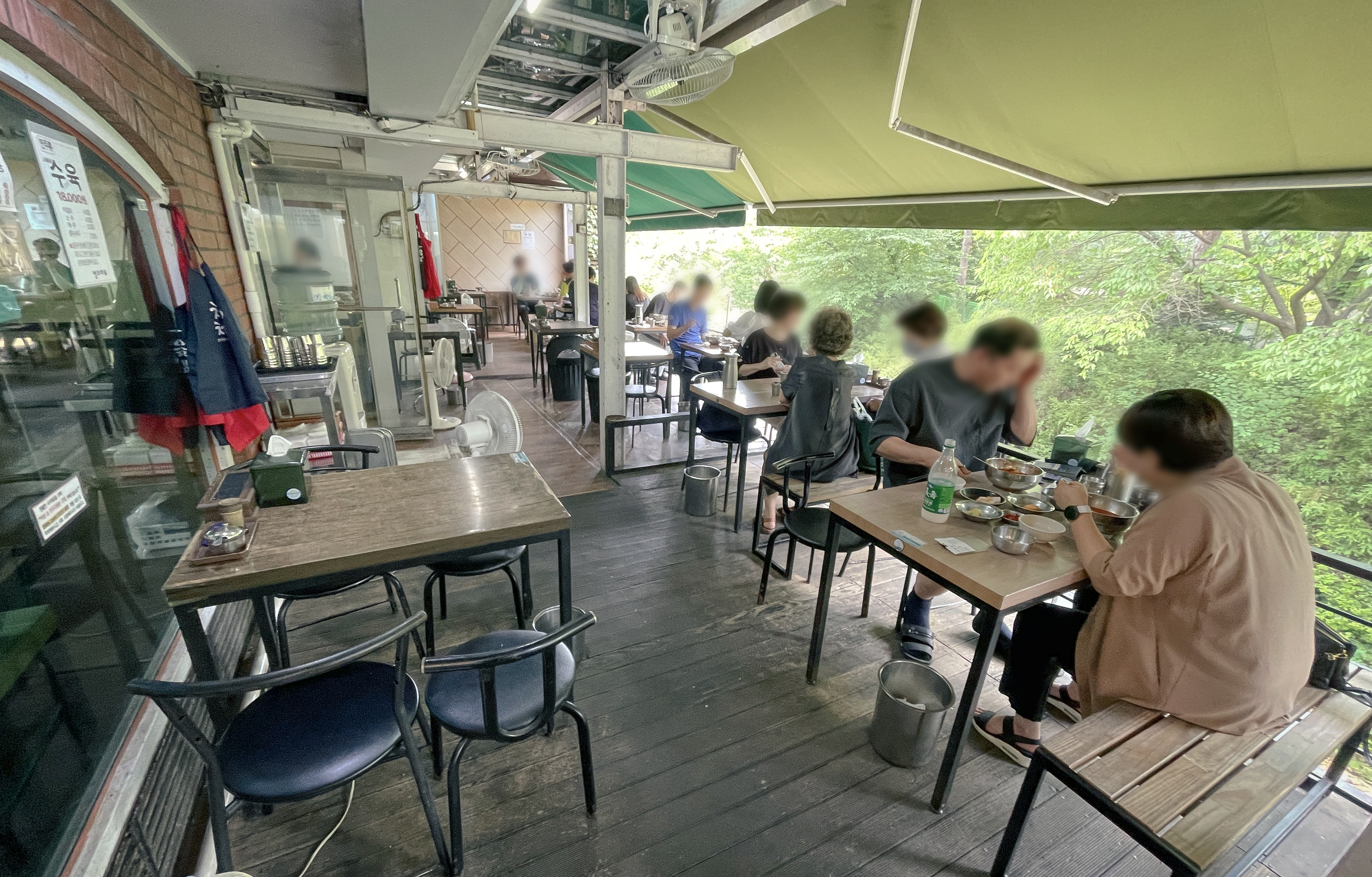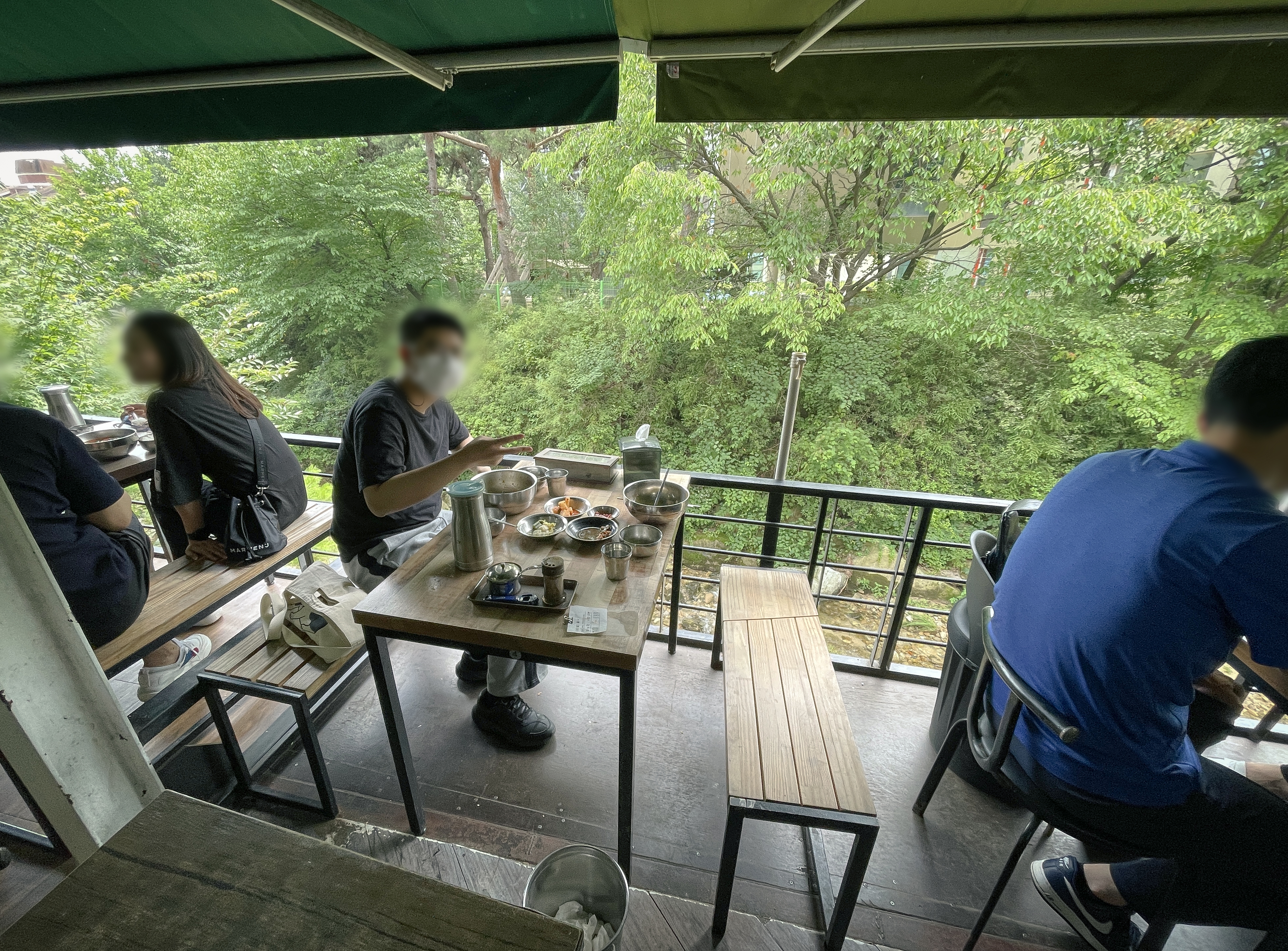 수유동 샘터마루는 손님들이 실내공간을 놔두고 모두 밖에서 식사하고 계시더라고요, 실내에서는 양쪽에 에어컨을 풀가동하여 추울 정도였는데, 요즘같이 더운 날씨에도 모두 계곡을 바라보며 식사하는 손님들이더라고요. 물론 저도 마찬가지로 계곡을 바라보며 식사하려고 했으니깐요.