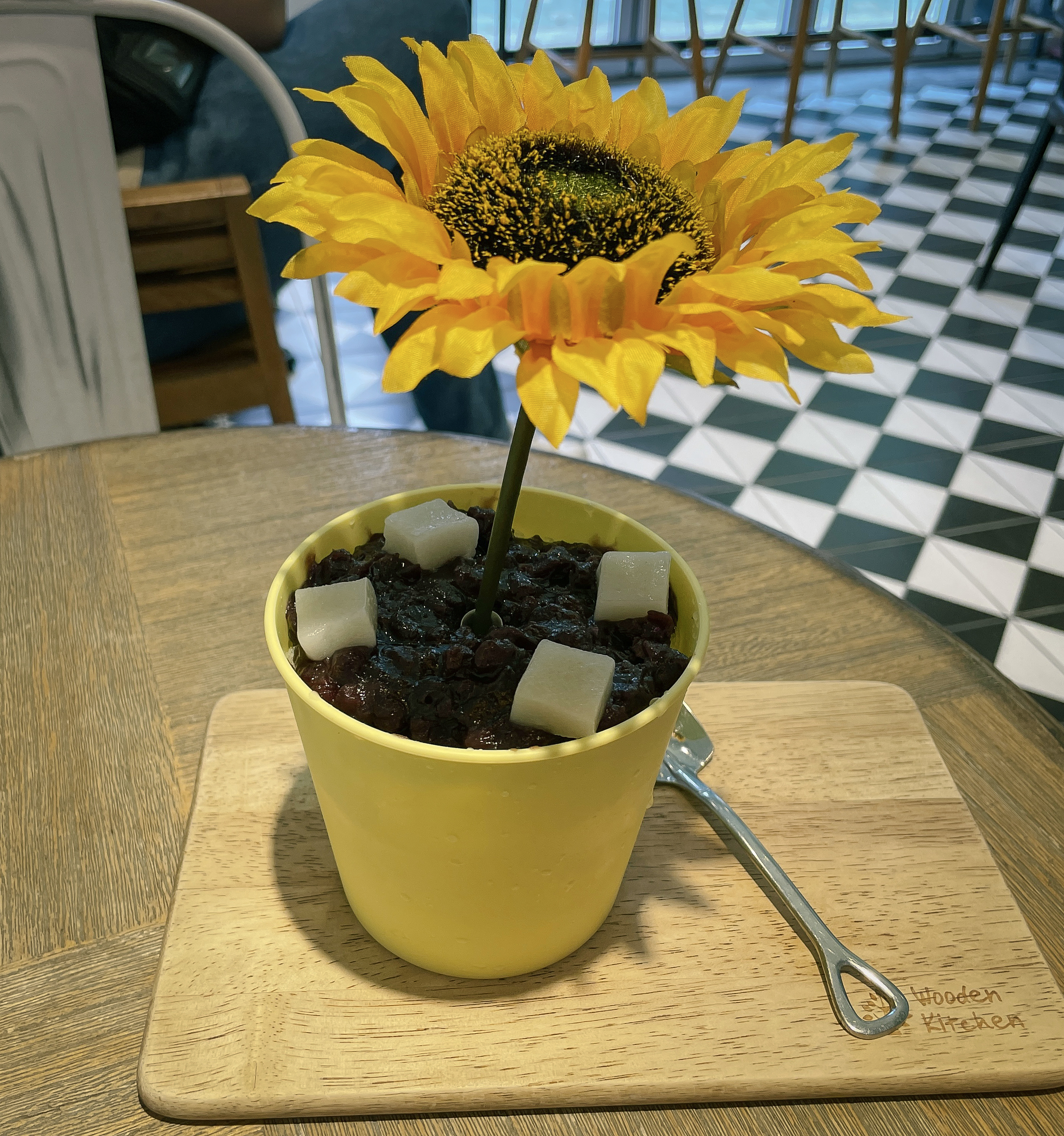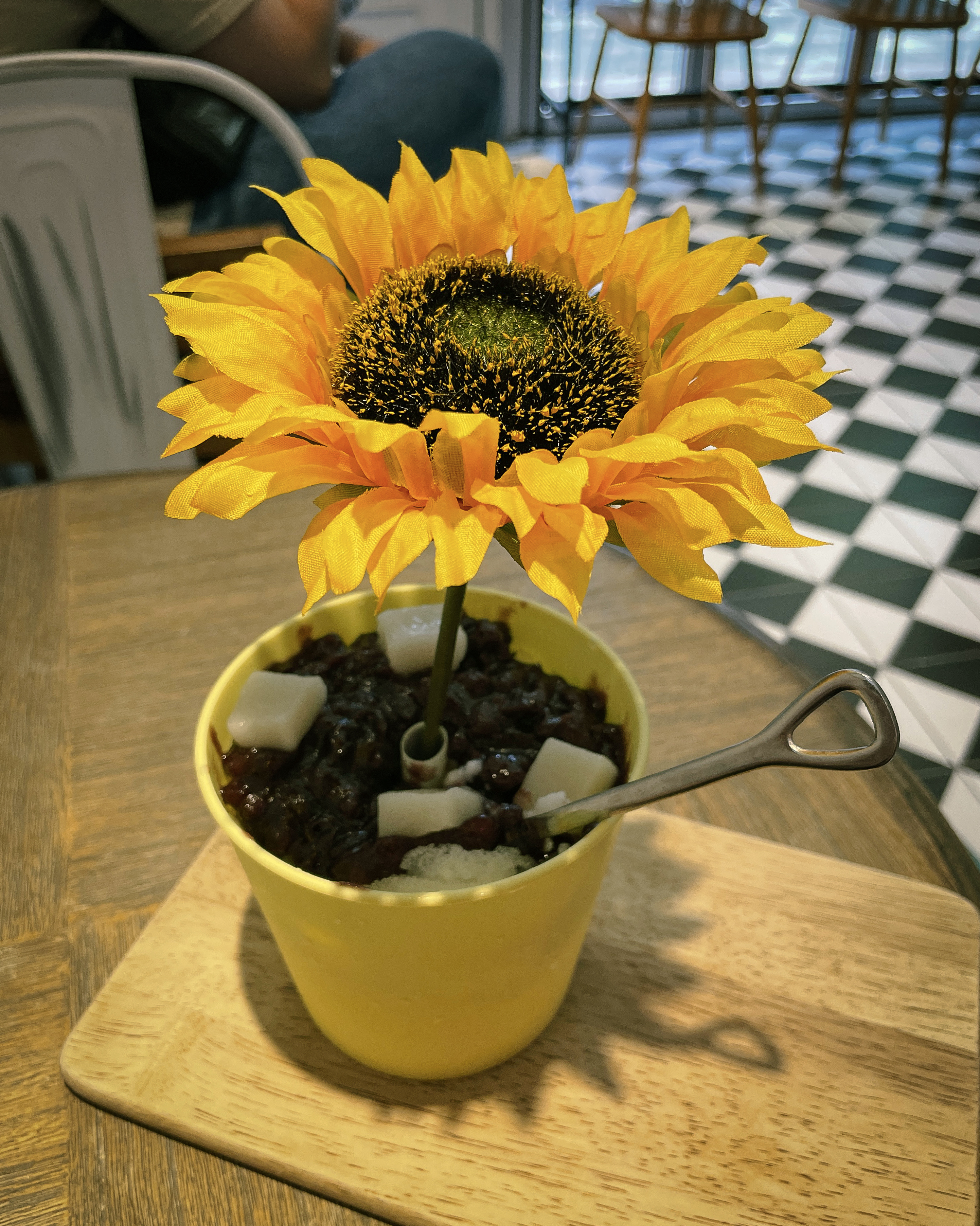 결국 중간 정도 먹다가 화분 속 꽃을 빼내어 먹었습니다. 화분에 담겨 나오는 팥빙수는 보기엔 이뻤지만, 먹기엔 너무 불편한 팥빙수였습니다. 그래도 이색 팥빙수를 도전해보고 싶으신 분은 한 번 방문해보셔도 좋을 듯합니다.