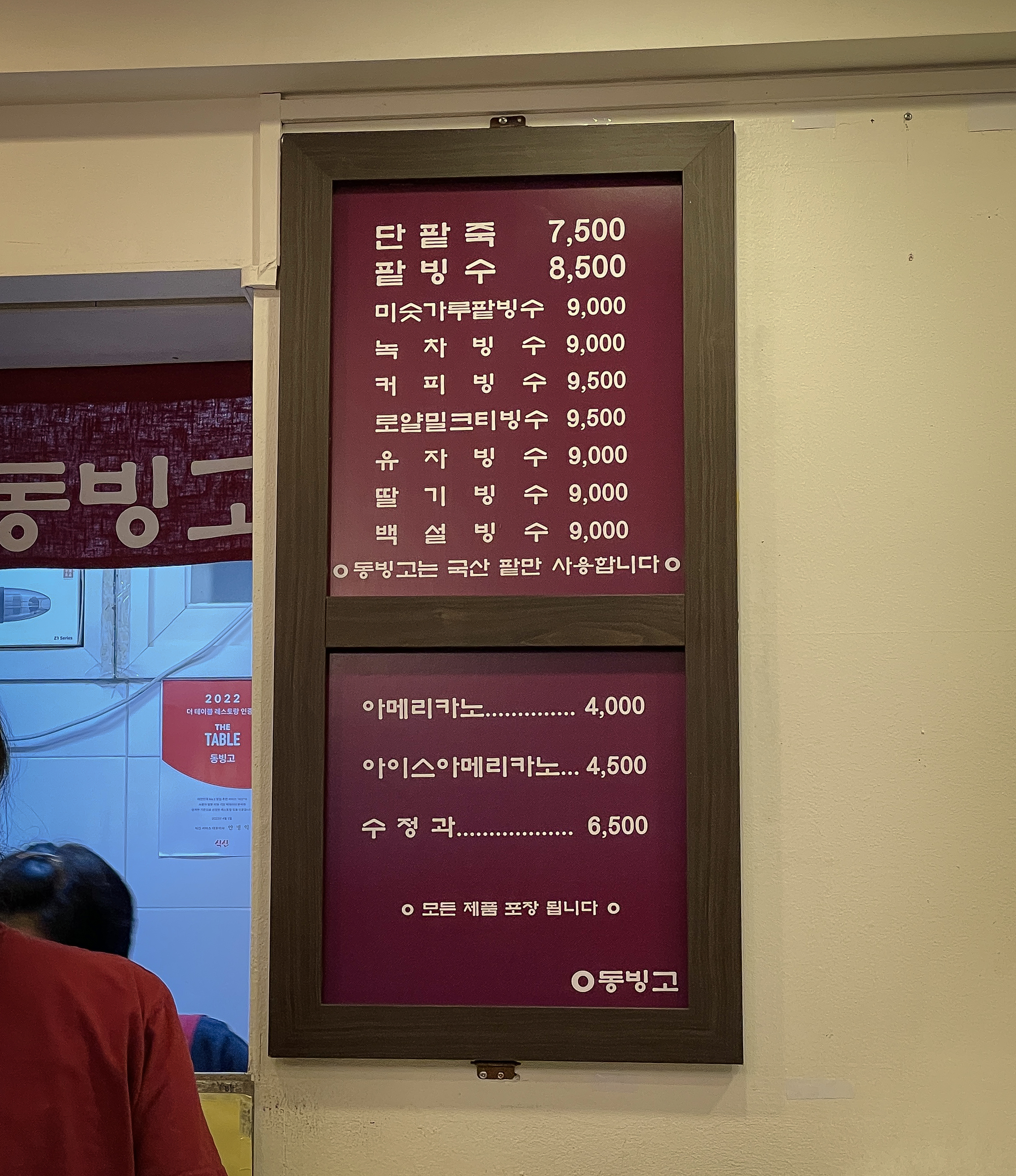 동빙고는 한여름 밤인데도 대기하는 손님들로 붐비는 가게였습니다. 가게가 위치한 아파트가 노후화되어 재건축하여 대기하는 환경이 좋지 않음에도, 남녀노소 할 것 없이 20~30분간의 대기를 마다하지 않고 기다리더라고요, 저는 팥빙수가 대체 얼마나 특별하길래 이렇게 많은 손님이 몰려드는지 궁금하여 대기 후 가게 안으로 들어갔습니다.