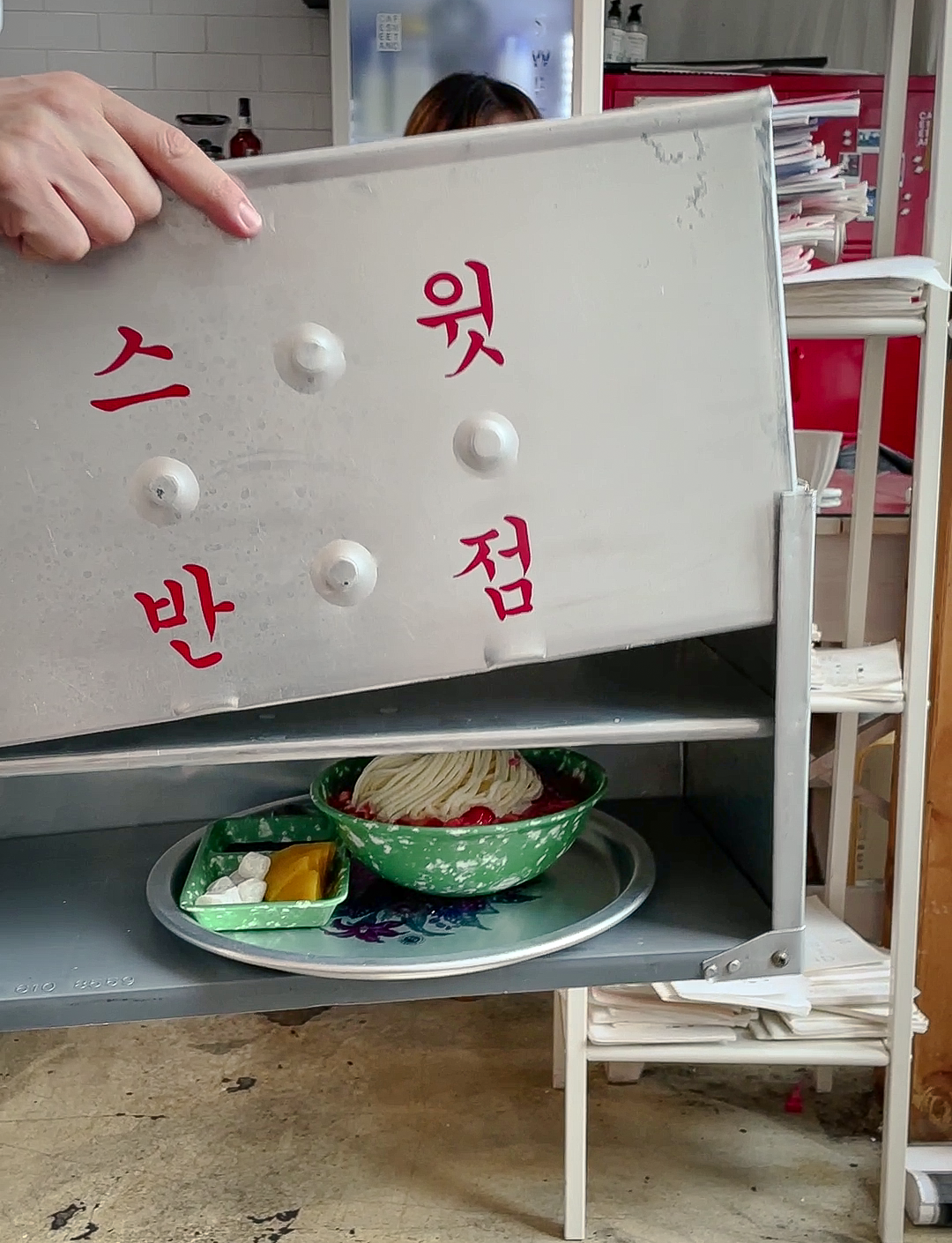 짬뽕빙수는 사장님께서 직접 철가방을 이용해 배달해주시는데, 사진을 찍을 수 있도록 포토 타임도 마련해주시더라고요. 직접 받아본 짬뽕빙수는 꽤나 디테일이 살아있었습니다. 철가방에 있을 때는 얼핏 보기에 짬뽕같이 보이기도 하더라고요. 심지어 단무지, 양파, 춘장을 흉내 낸 고명까지 너무 섬세하게 흉내 내었더라고요.