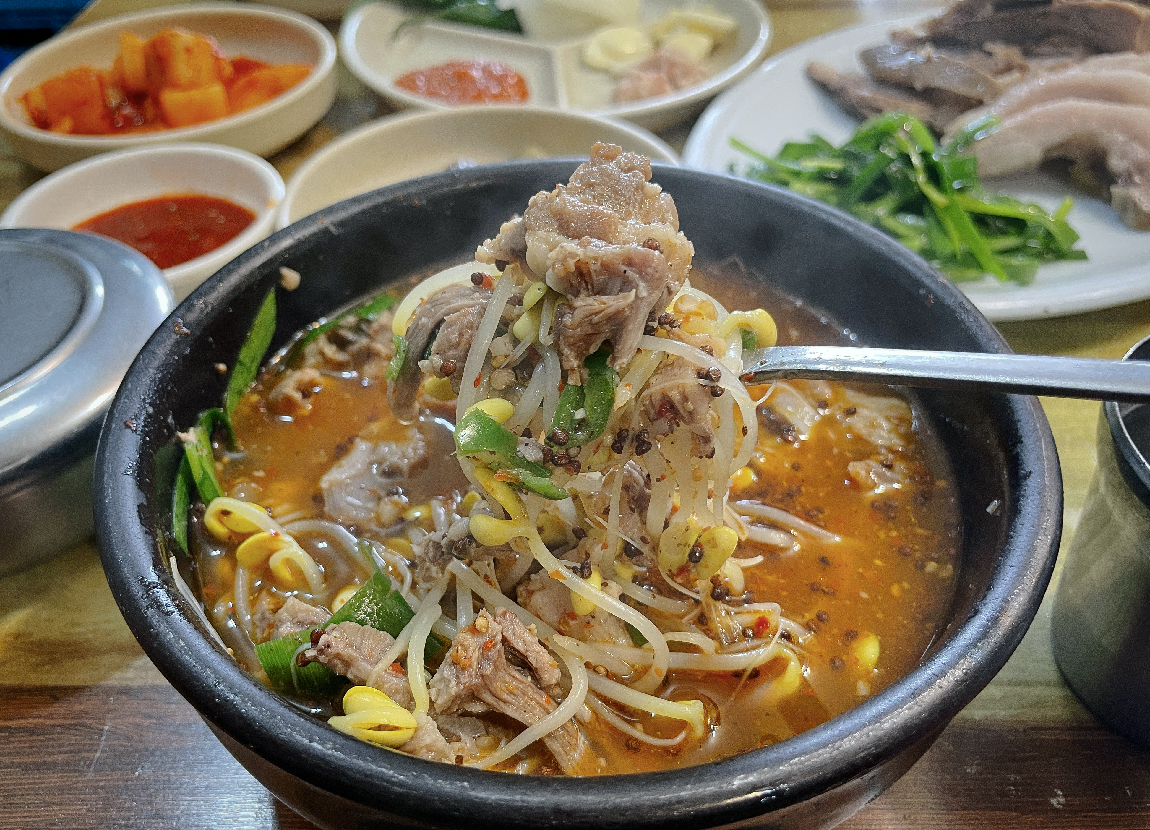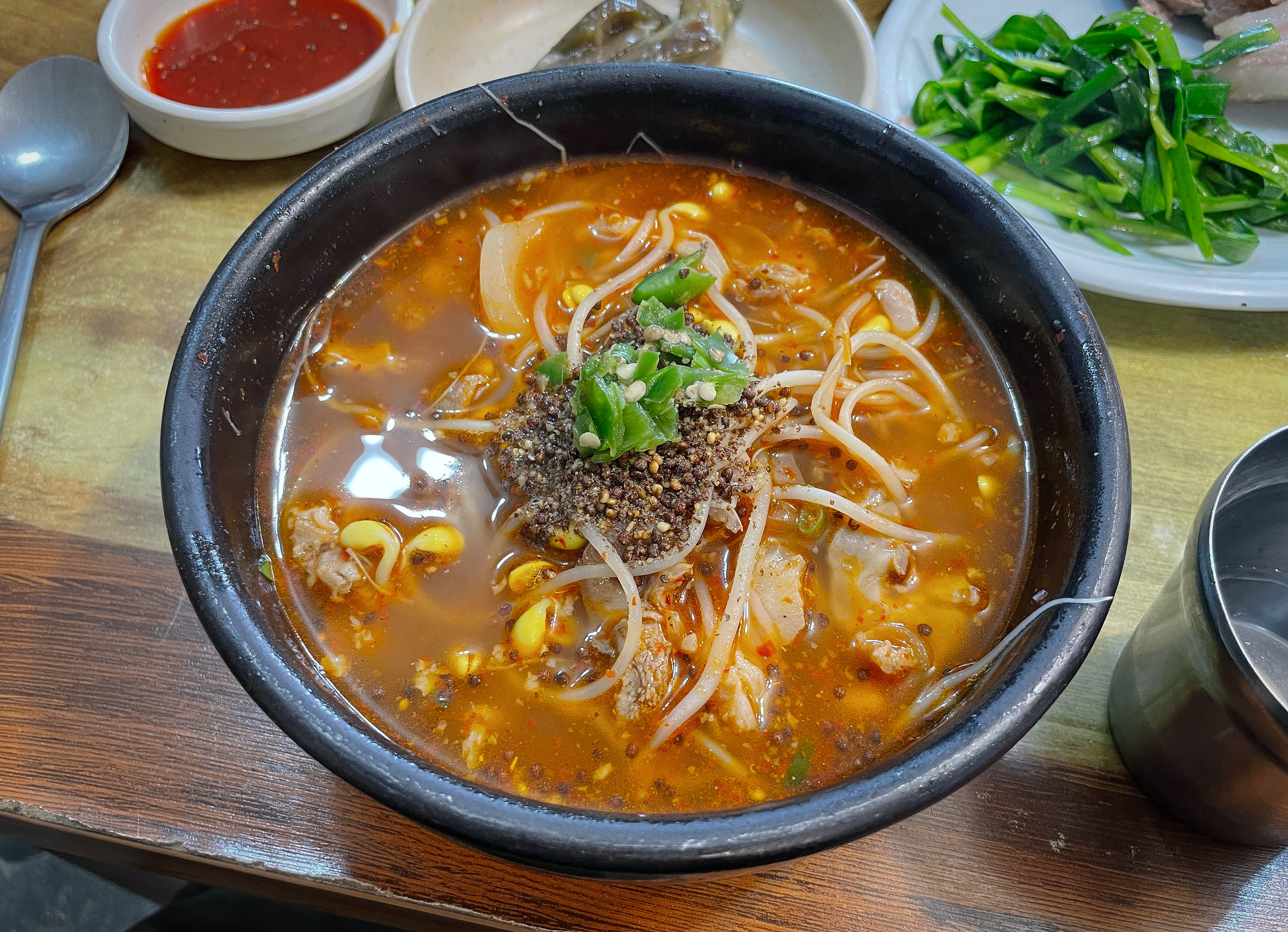 수육은 한 입 가득 찰 정도로 도톰하게 썰어져 나왔는데, 잡내도 안 나고 부드러우면서도 탄력 있게 잘 삶아져서 고기 씹는 질감도 좋았고, 육즙도 있었습니다. 그냥 먹어도 맛있지만, 초장이나 쌈장, 부추와 곁들이는 것도 좋았습니다.