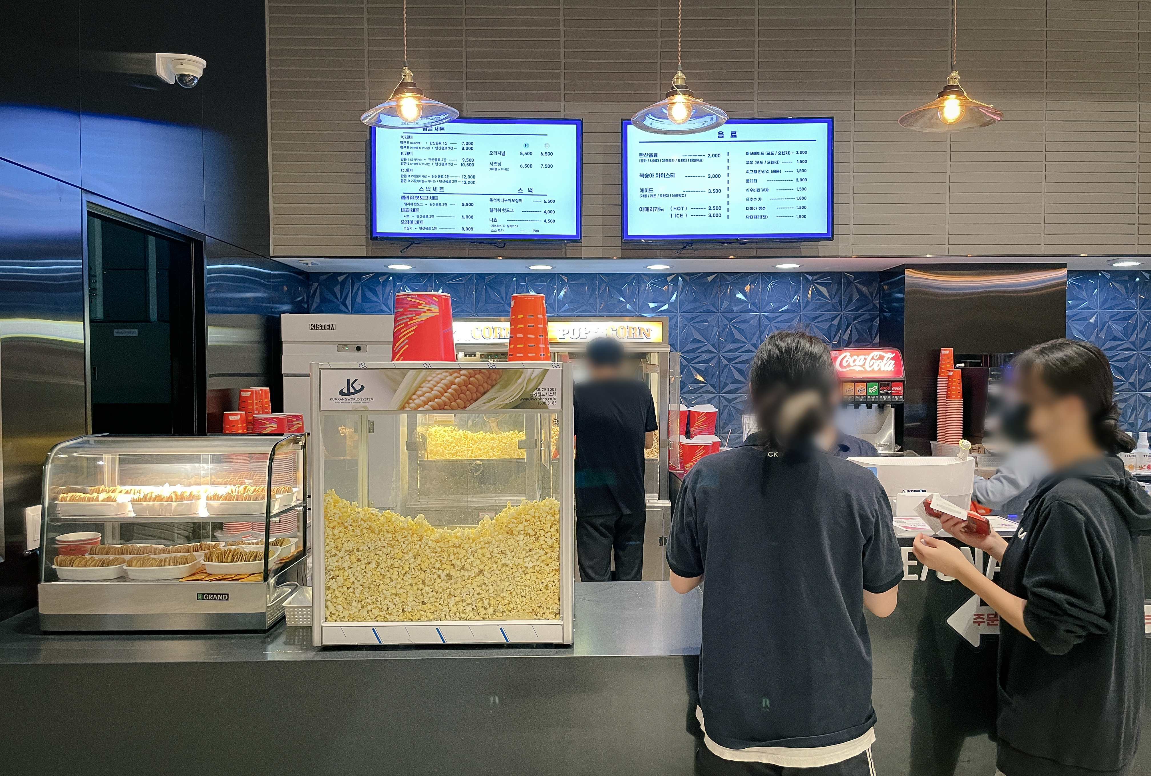 영화관람권을 받고 한결 편안해진 마음으로 건물 구경도 하고, 영화관과 인근 편의시설도 살펴보았습니다. 쾌적한 시설과 깔끔한 분위기는 대도시 영화관이라 봐도 무방할 정도였고, 팝콘과 콜라만 있을 것 같았던 스낵코너도 핫도그, 나쵸, 버터구이 오징어 등 다양한 메뉴를 판매하고 있었습니다.