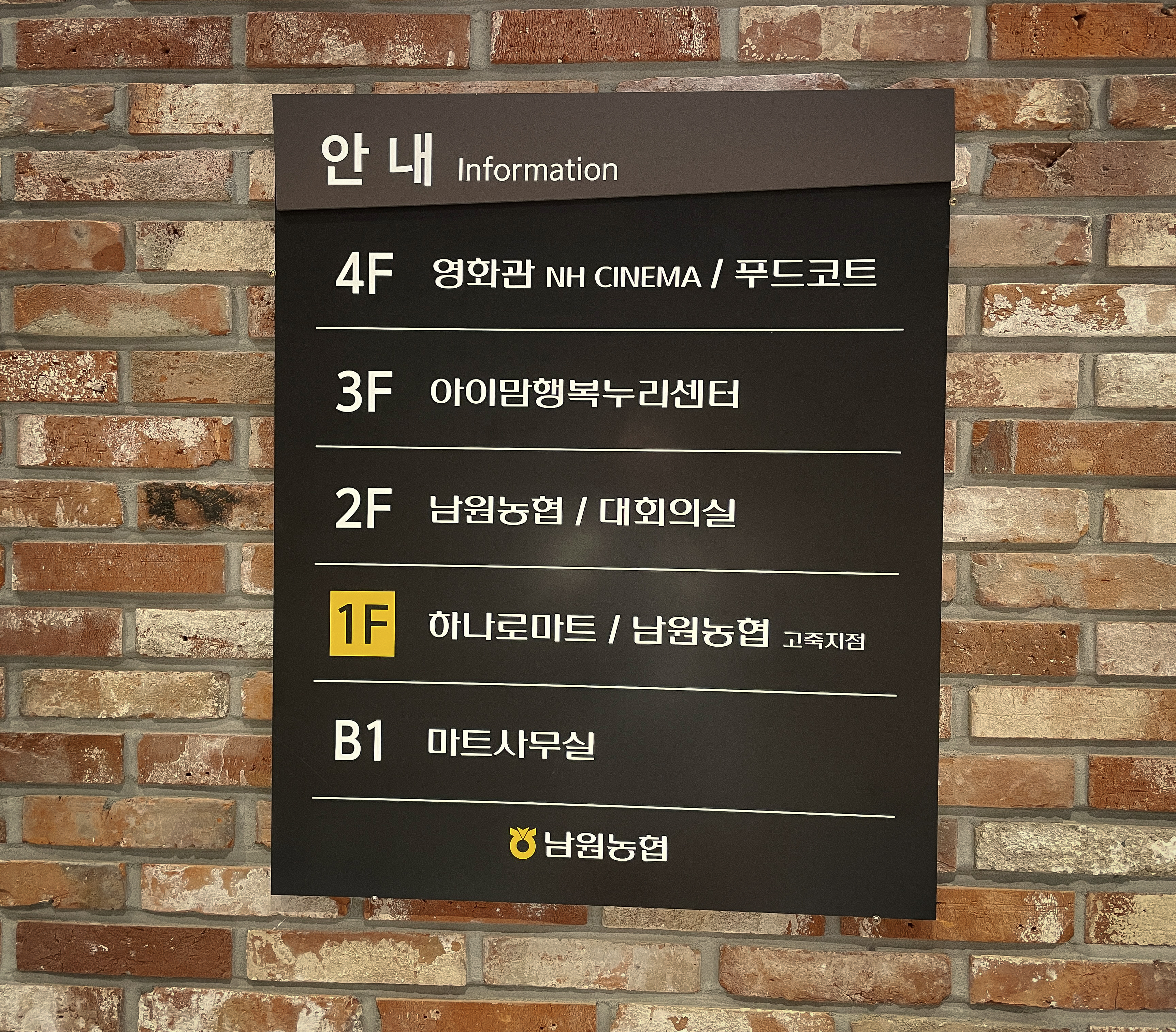 'NH시네마'는 전북 남원시 고죽동 66-3, 4층에 위치한 영화관이며, 1층에는 여느 농협처럼 은행과 꽤 큰 규모의 하나로마트가 자리 잡고 있었습니다. 영화관 건물과 가까운 곳에 농협에서 운영하는 주유소도 있으니, 웬만한 볼일은 이곳에서 다 해결할 수 있다고 봐도 무방할 것 같았습니다.