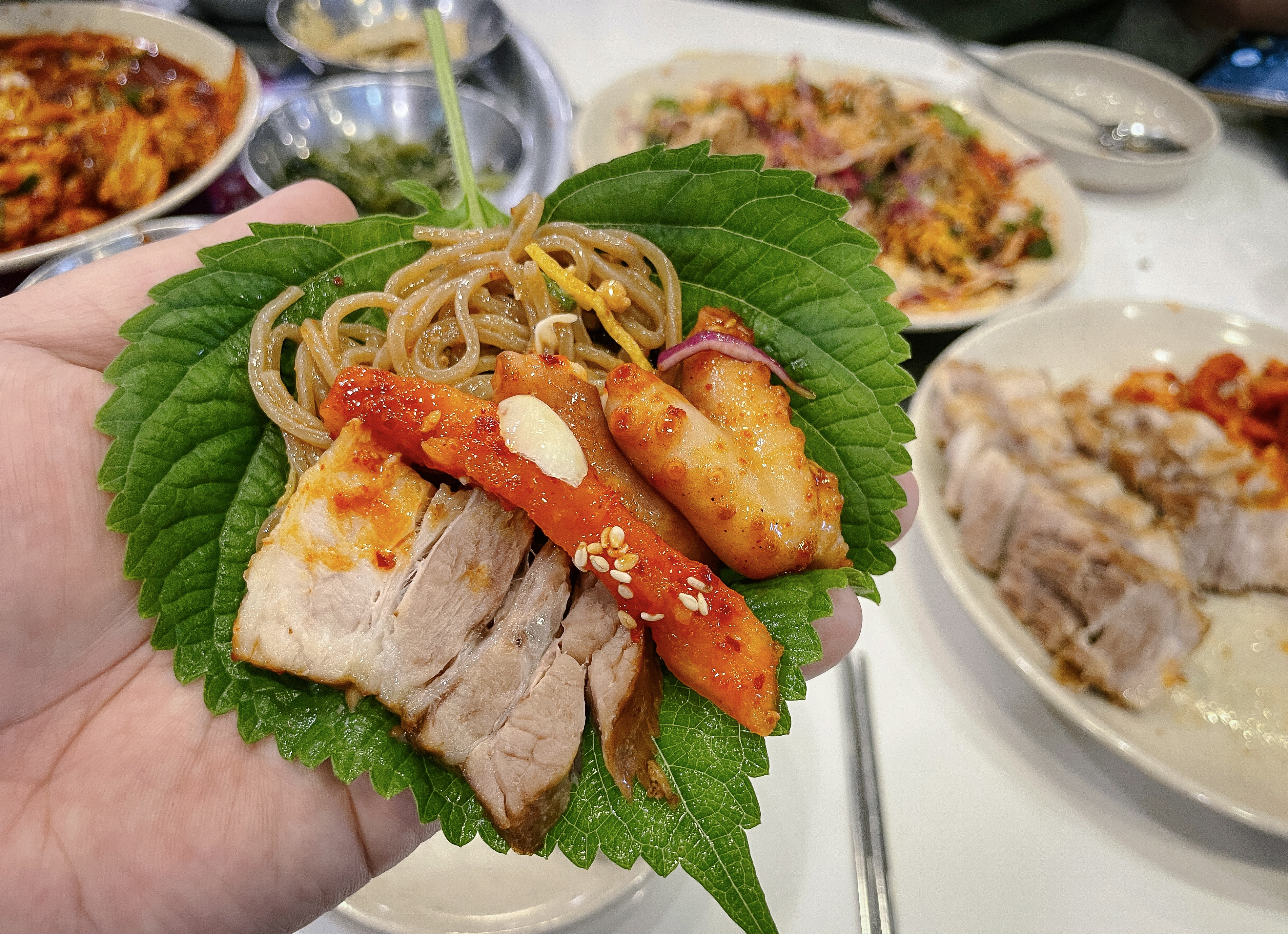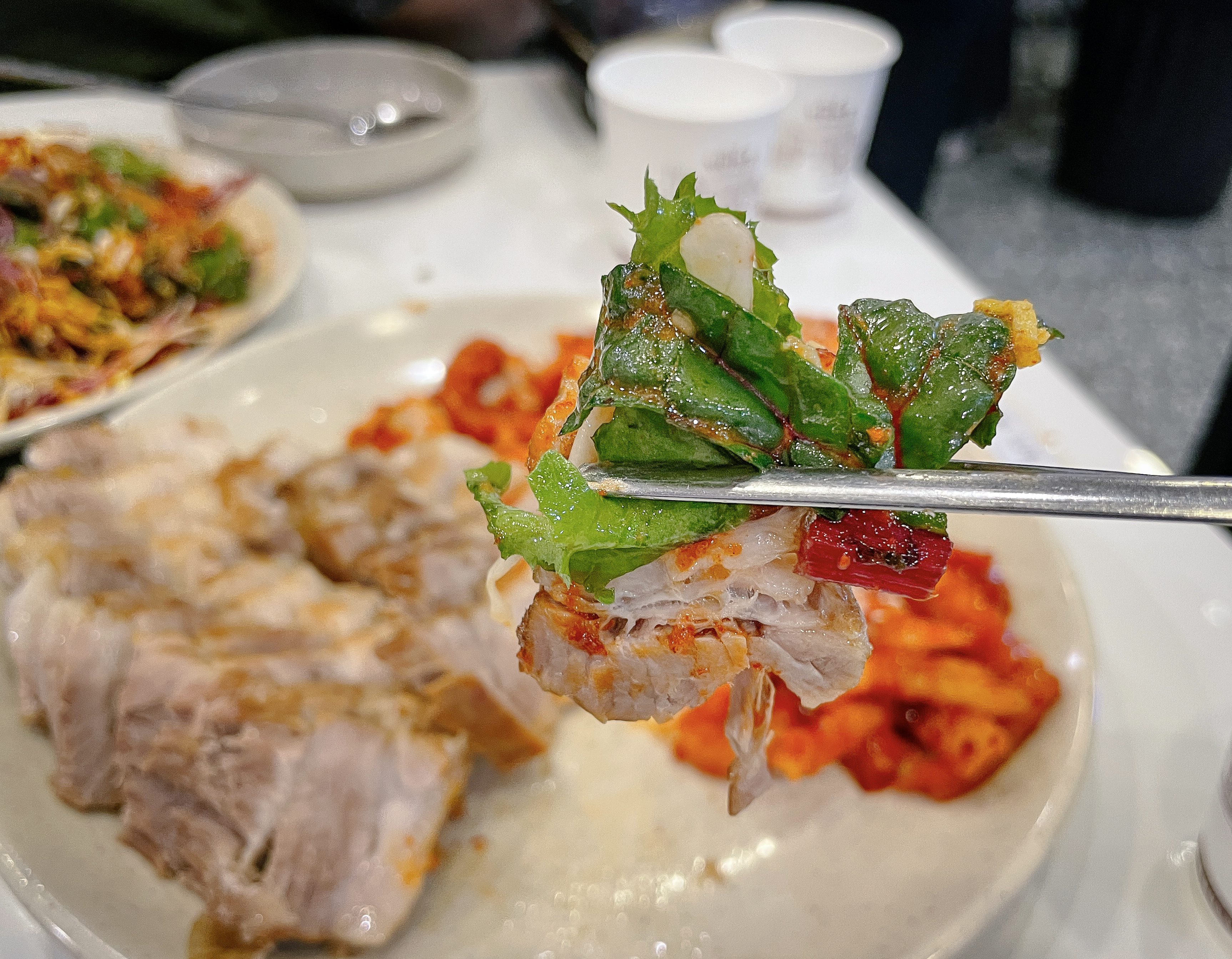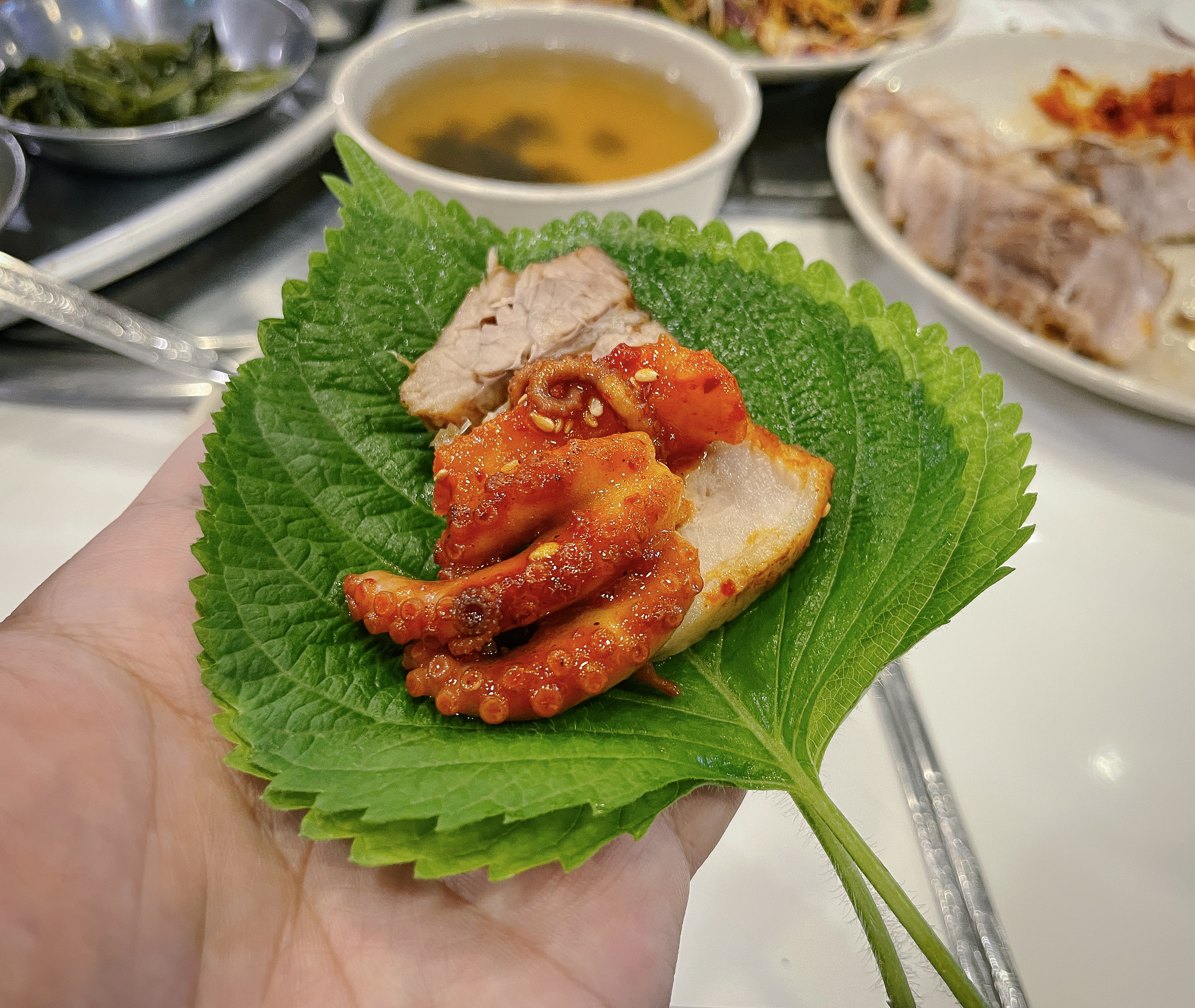 보쌈 역시 부드러운 식감에 비계와 살코기가 적절히 조화를 잘 이루었고, 보쌈김치와 깻잎에 싸서 먹으면 맛이 좋았습니다. 물론 앞서 설명한 것처럼 매콤한 낙지볶음과도 잘 어울렸습니다.