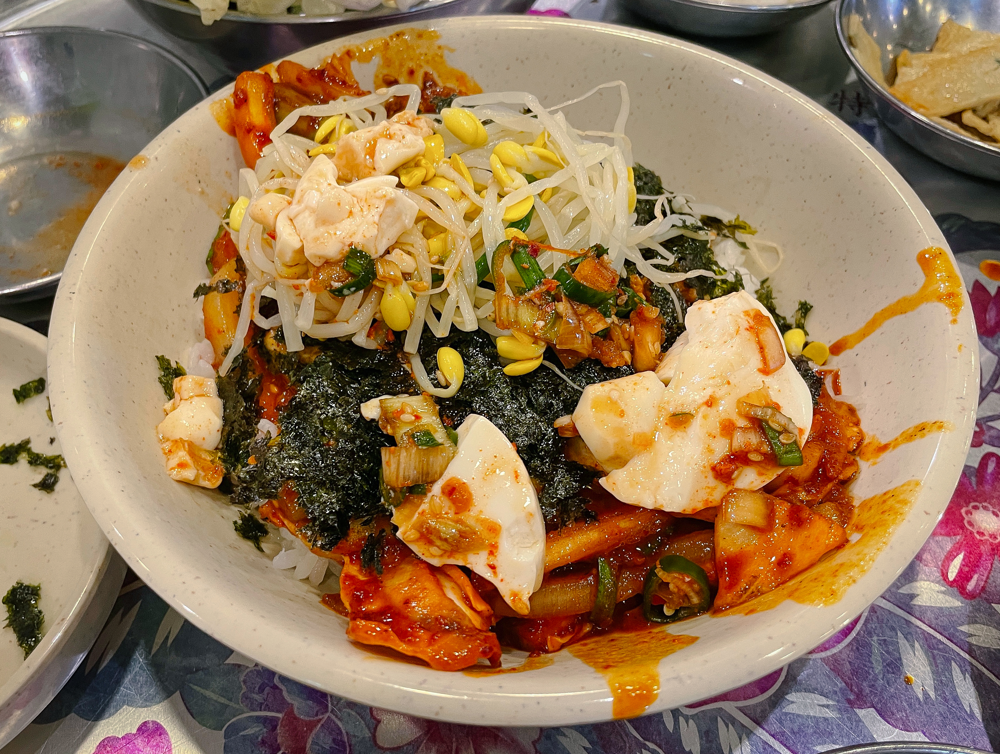 참고로 밥을 주문하면 이렇게 대접에 제공해 주십니다. 콩나물, 두부, 나물 등과 함께 남은 낙지볶음을 넣고 슥슥 비벼서 먹으면 되었는데, 공기밥을 안 주문했으면 후회할 뻔했습니다.