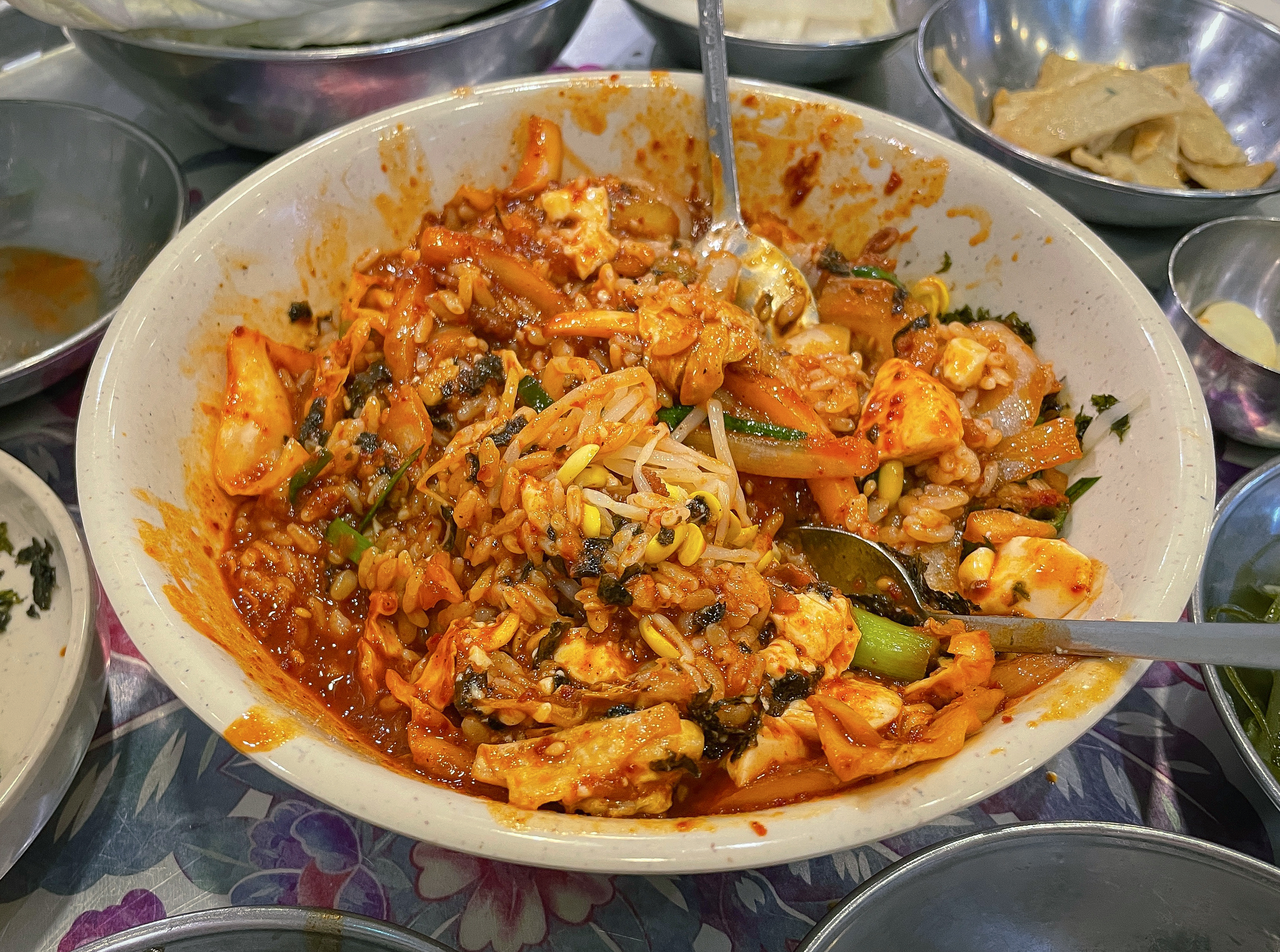 참고로 밥을 주문하면 이렇게 대접에 제공해 주십니다. 콩나물, 두부, 나물 등과 함께 남은 낙지볶음을 넣고 슥슥 비벼서 먹으면 되었는데, 공기밥을 안 주문했으면 후회할 뻔했습니다.