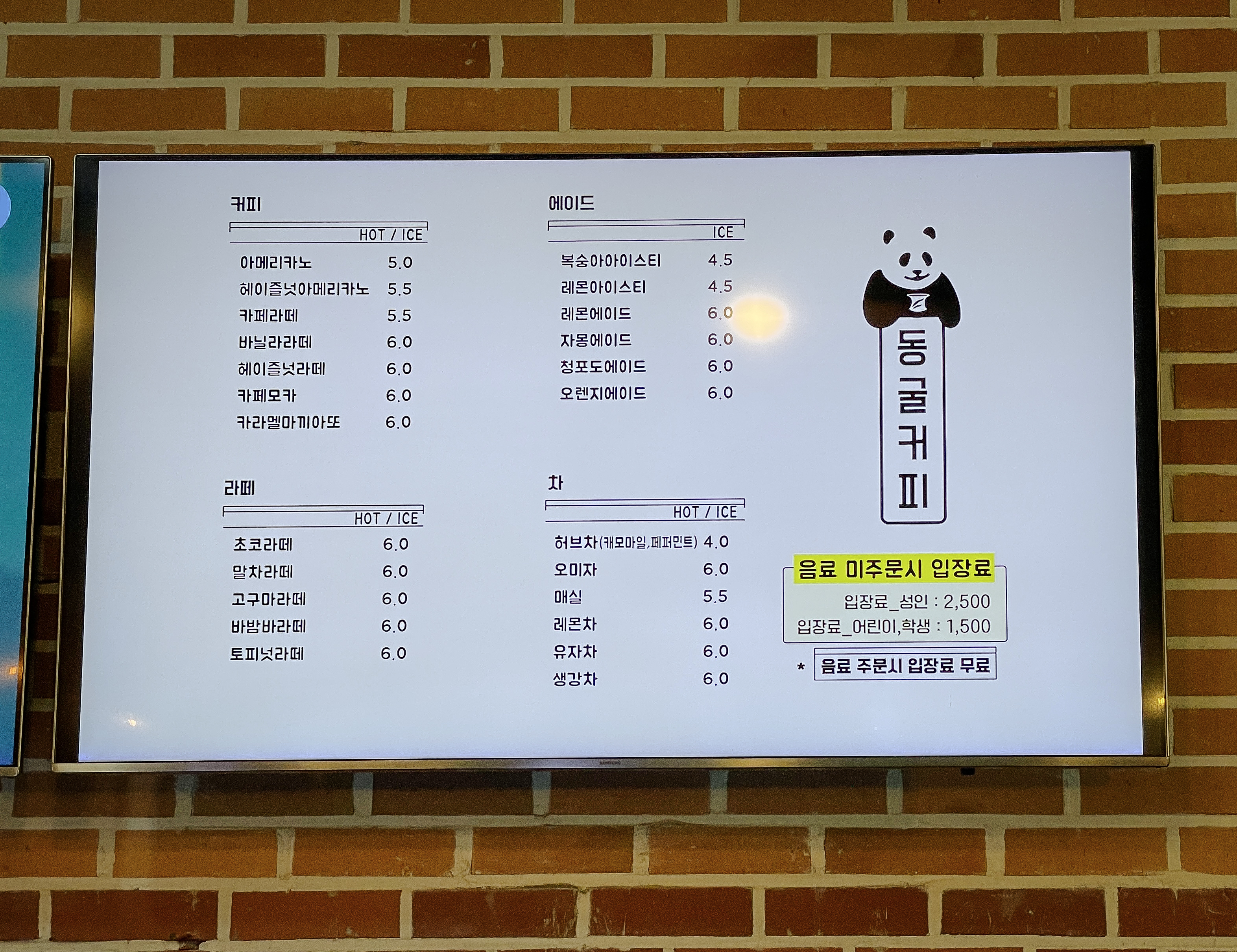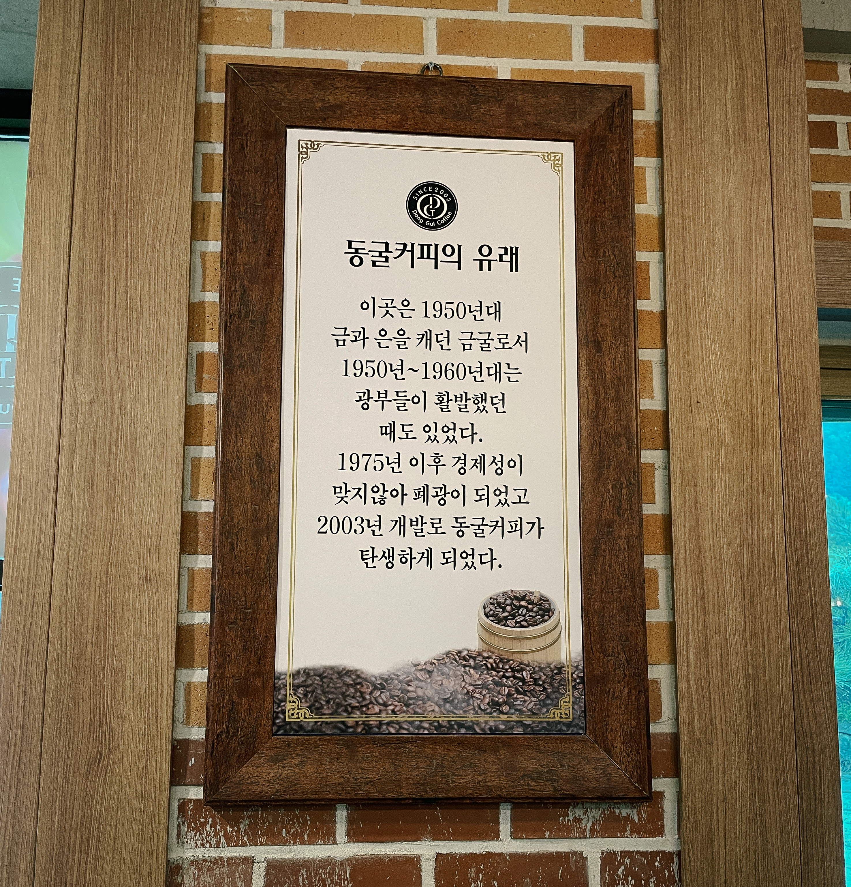카페 안에는 일반 카페처럼 커피, 라떼, 차, 에이드 등을 판매하고 있었고, 동굴커피만의 시그니쳐 메뉴(?)는 따로 없었습니다. 그래도 이런 특이한 시설은 음료의 가격이 비싼 경우가 많은데, 생각보다 비싸지도 않고 가격이 꽤 합리적이었습니다. 동굴커피 안에는 '동굴커피의 유래'가 적혀있었는데, 내용을 읽어보니 1950년대 금, 은을 캐던 금광으로 사용하다 1975년 폐광 이후 2003년 동굴커피가 들어서게 되었다고 합니다.