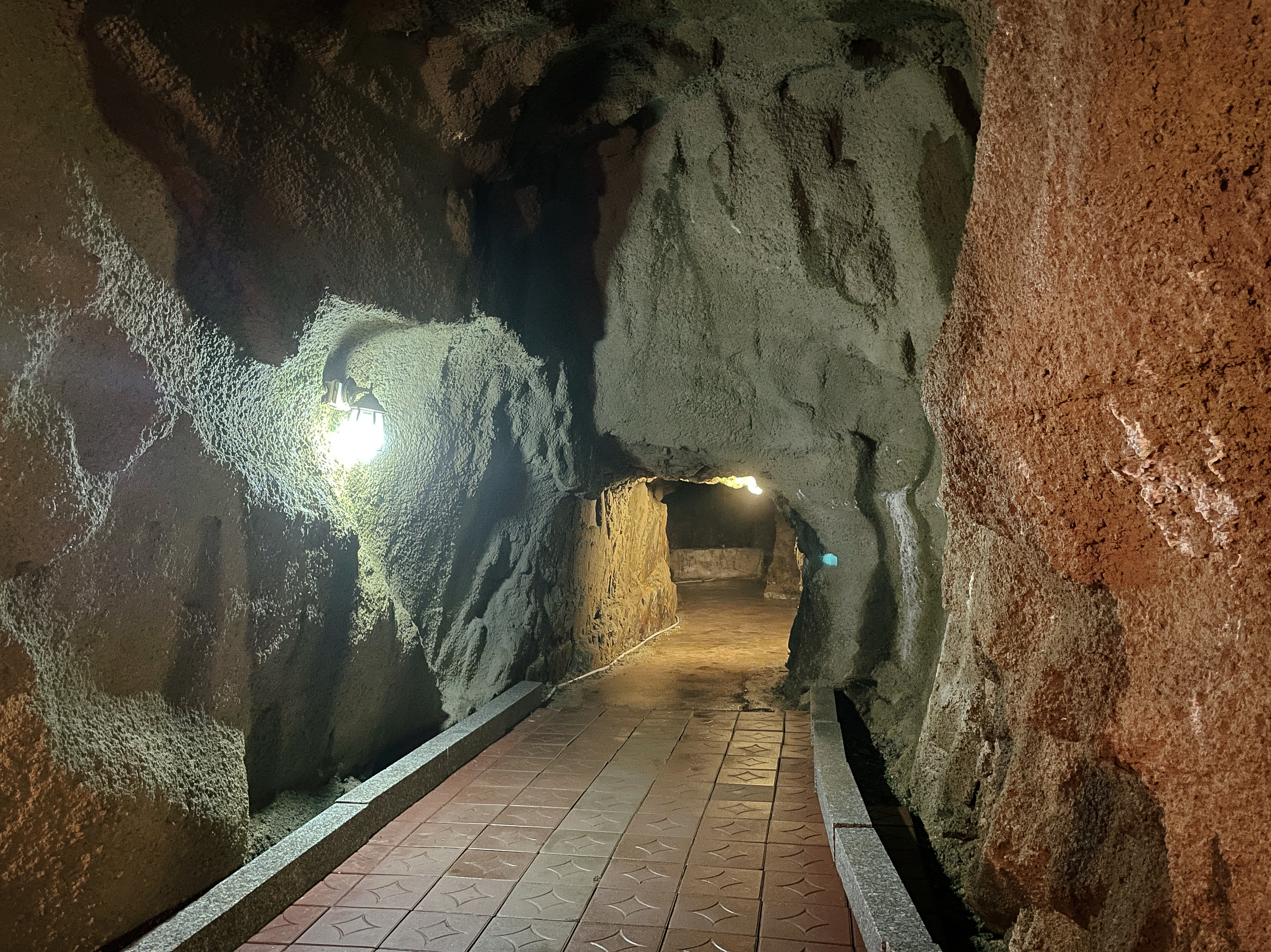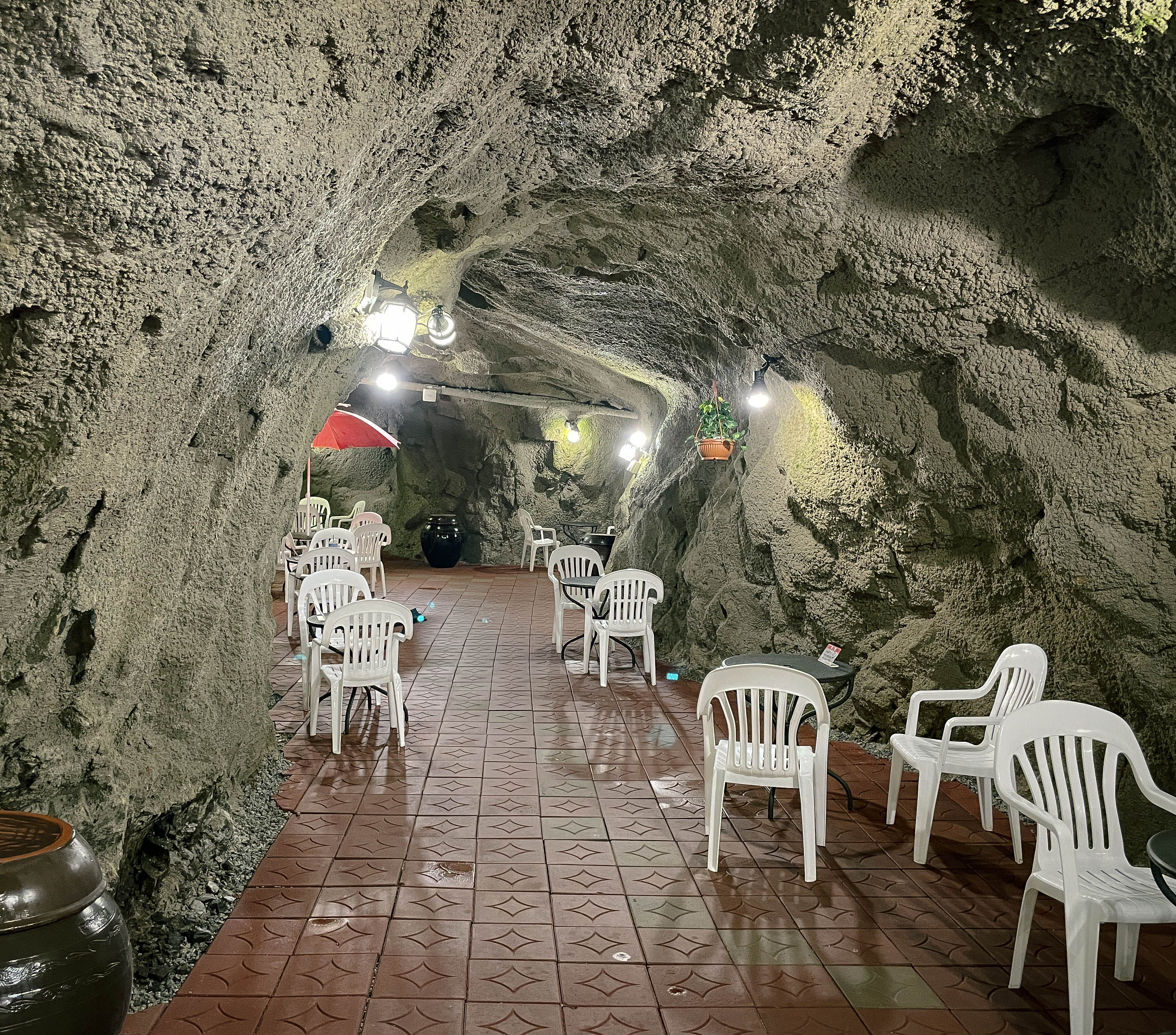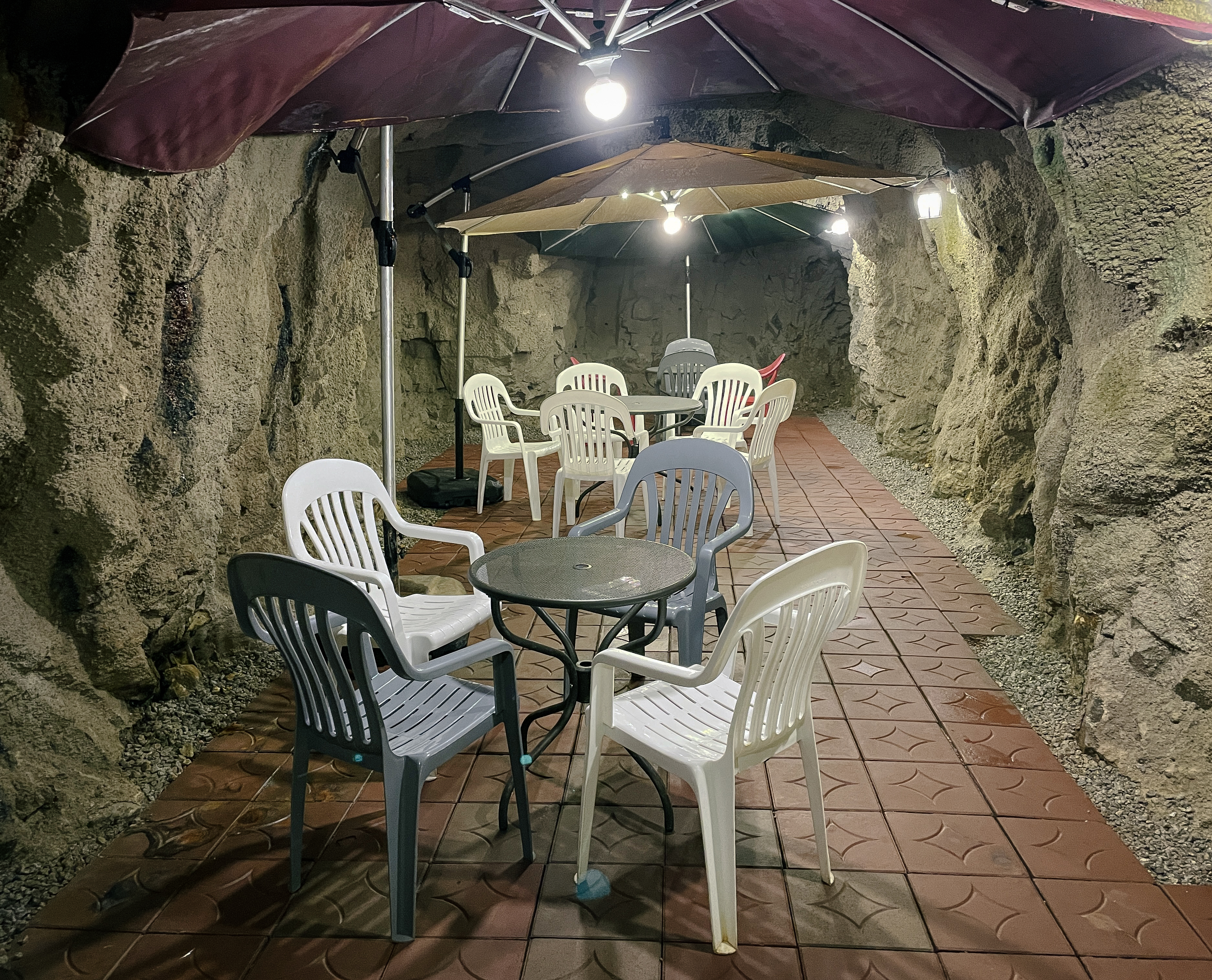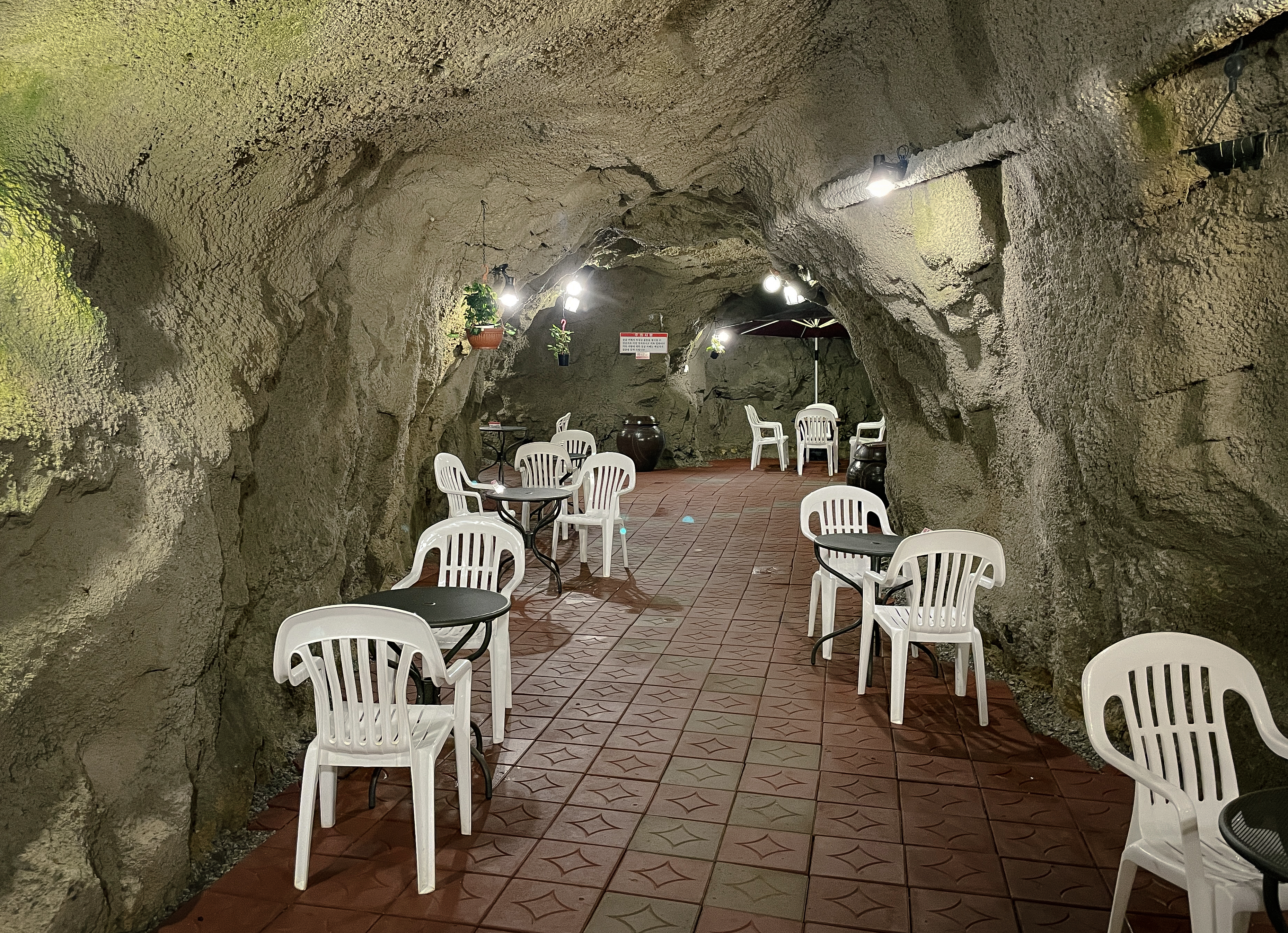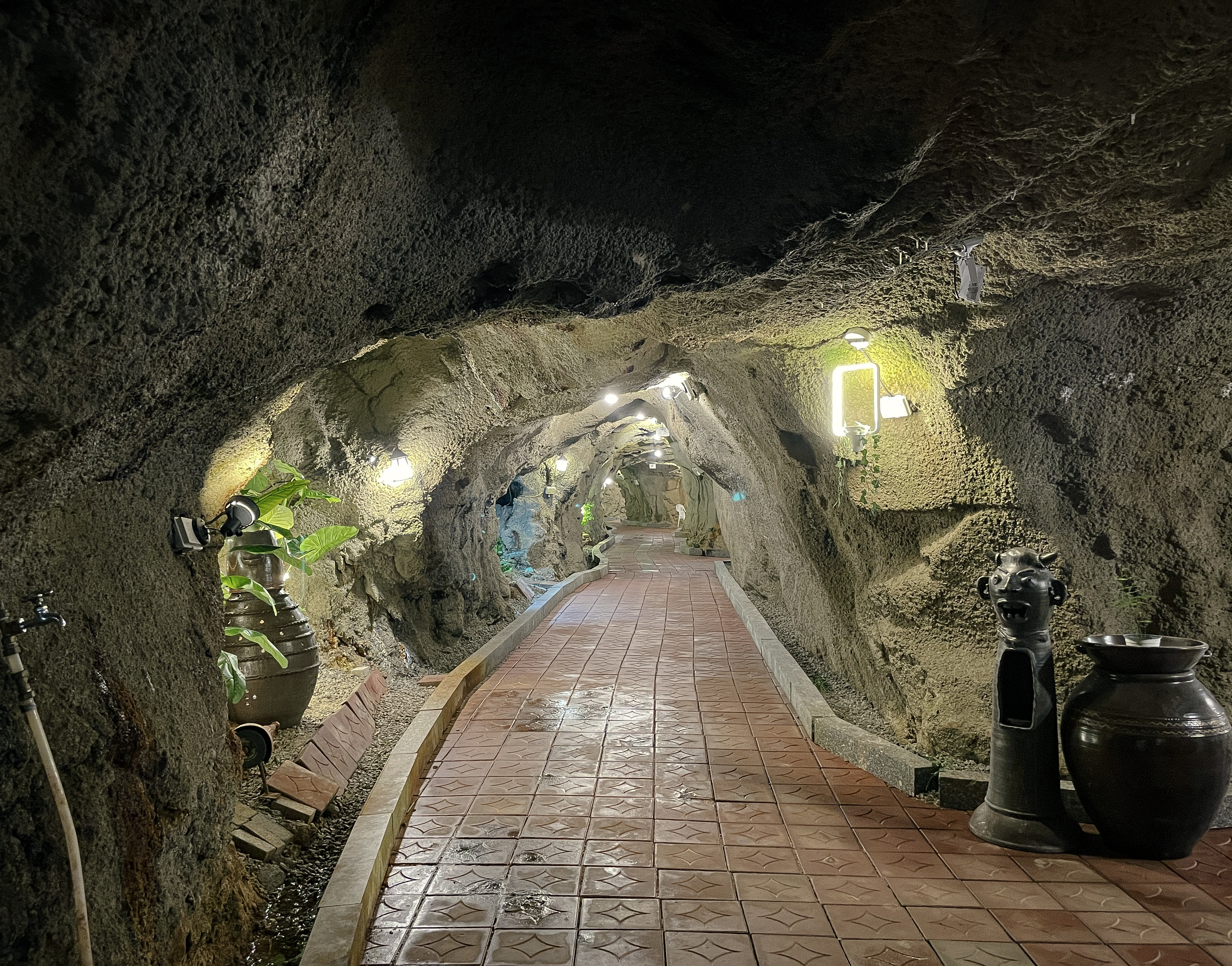 저는 동굴 입구로 주문한 커피를 들고 들어가 마셨습니다. 동굴의 길이는 체감상 100m는 되어 보였고, 생각보다 길고 복잡한 구조였습니다. 실제로 이 카페에는 냉방시설이 전혀 보이지 않았고, 직접 사장님께 여쭤보니 동굴에서 나오는 바람이 있어서 한여름에도 에어컨이 필요가 없다고 말씀하시더라고요. 제가 실제로 육안으로 봤을 때도 에어컨이 없었습니다.