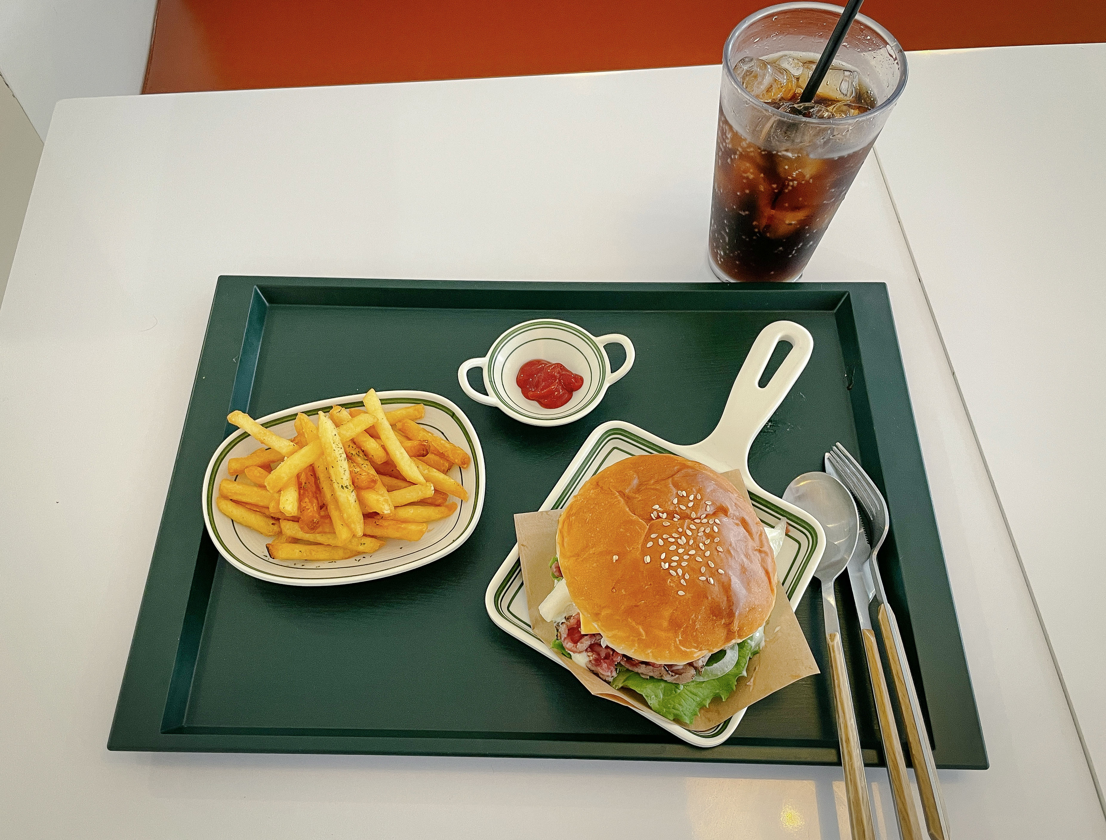육회햄버거는 치즈와 양상추, 육회가 들어간 단순한 구성의 햄버거였습니다. 육회는 배와 함께 버무려져서 부드러우면서도 단 맛이 있었습니다. 버거 번은 따로 구워내지는 않는지 약간 퍽퍽한 느낌이 있었는데, 기대했던 메뉴여서 그런지 아쉬움이 남았습니다.