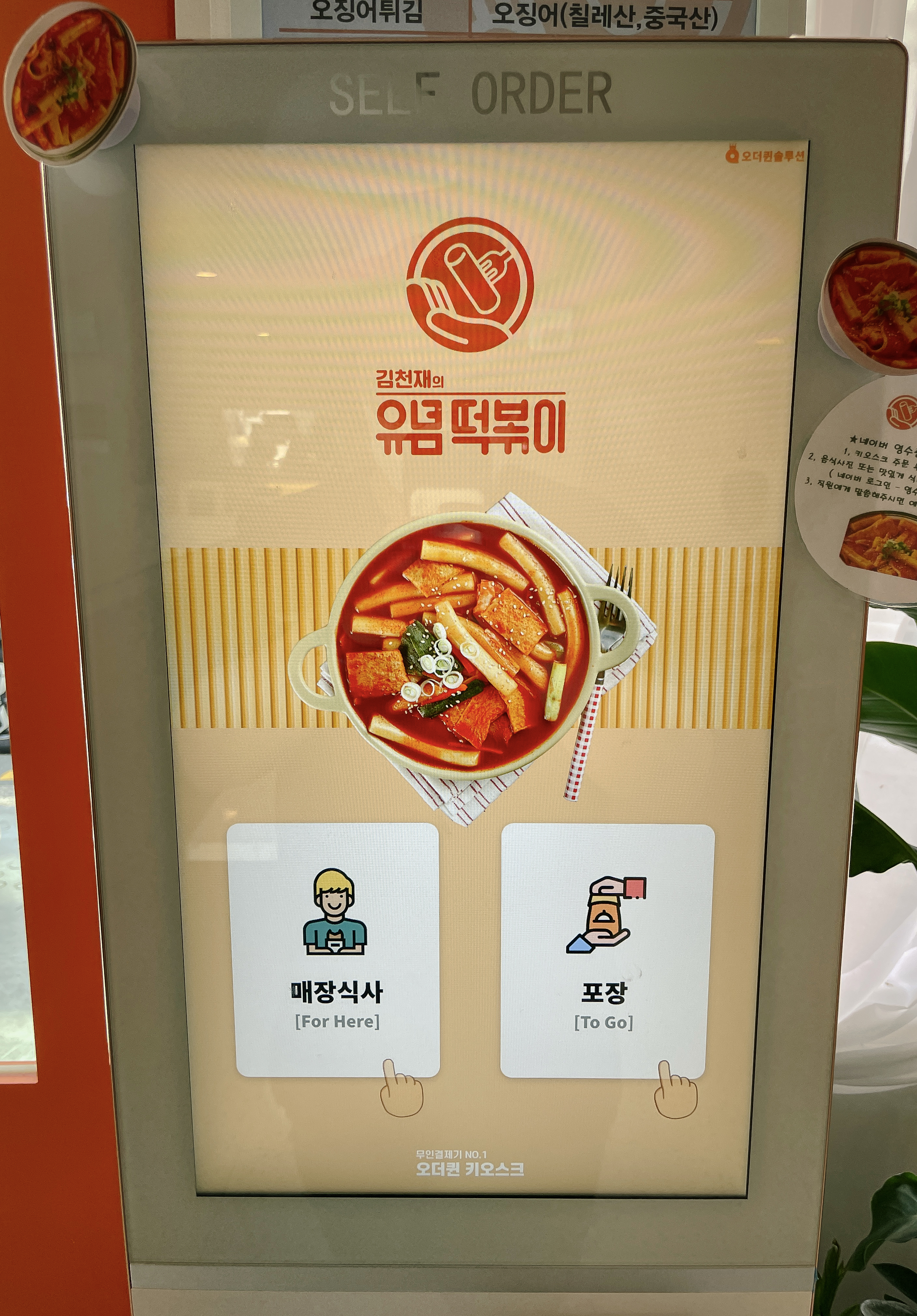 가게 내부의 키오스크 역시 각각 다른 메뉴를 판매하고 있었습니다. 키오스크에서는 다양한 메뉴들을 판매하고 있었고, 제가 주문하려던 떡볶이 피자를 비롯한 육회 버거 등을 팔고 있었습니다. 그 밖에도 육회 핫도그 등 먹음직스러운 메뉴를 많이 팔고 있었습니다.