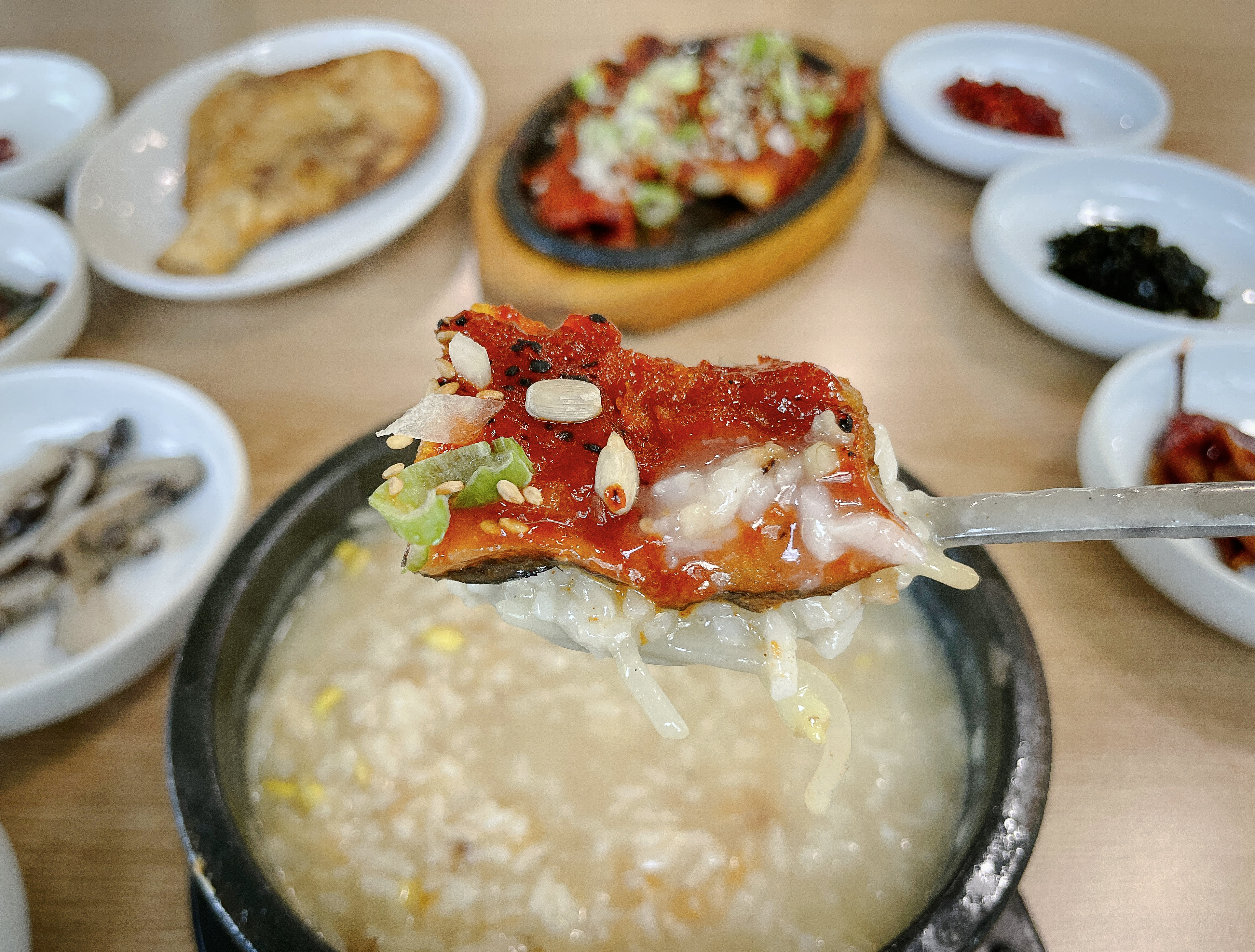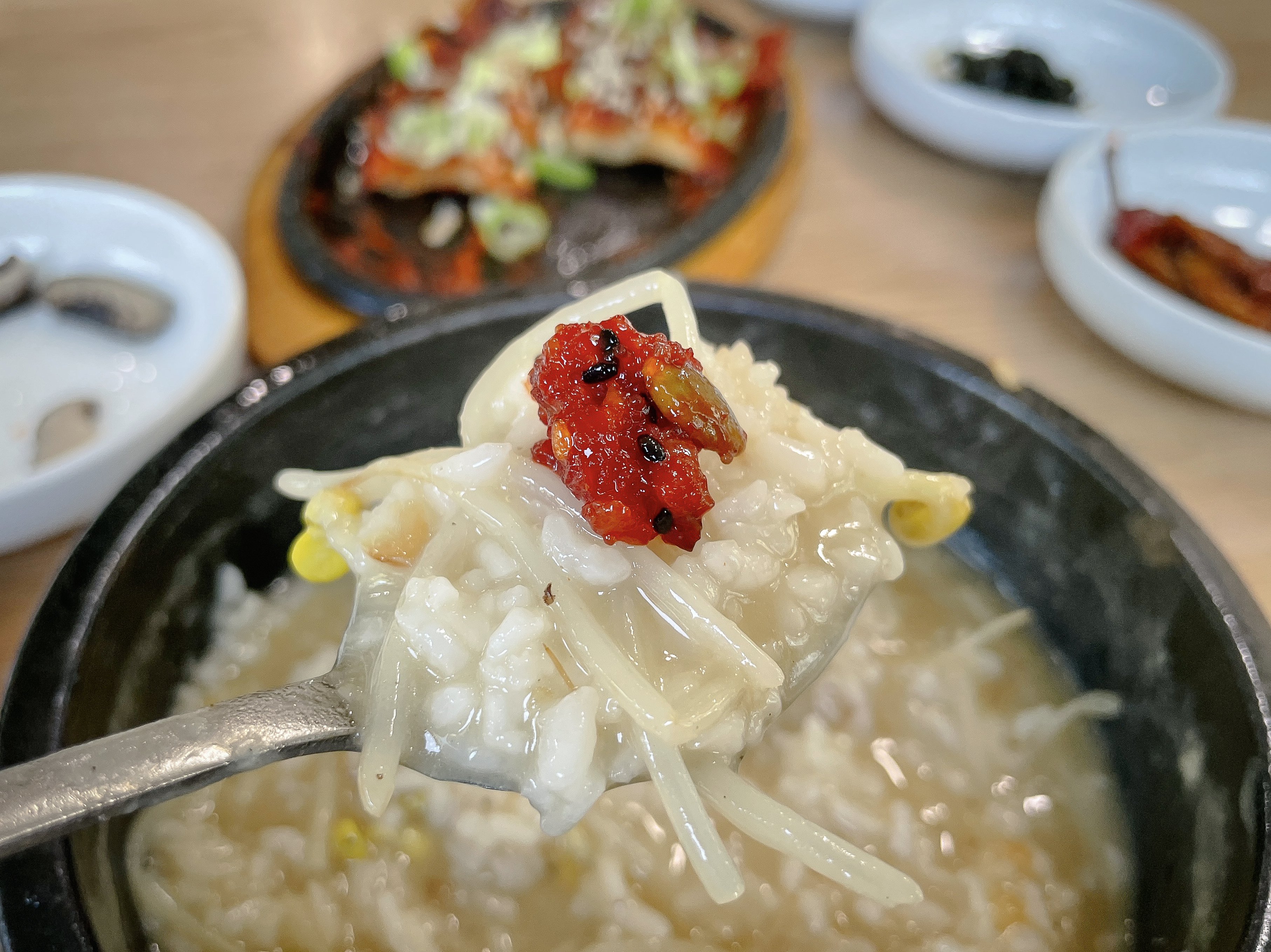 국밥은 그냥 먹어도 적당한 간이 있어서 맛이 좋았지만, 씹는 식감이 좋은 황태구이나 짭조름한 맛의 씨앗 젓갈과 곁들여도 맛이 괜찮았습니다. 양양 감나무식당의 황태국밥은 제가 처음 접해보는 국밥이었고, 맛도 괜찮았습니다. 다만 대기시간이 좀 길다는 게 약간 아쉬운 점이었습니다.