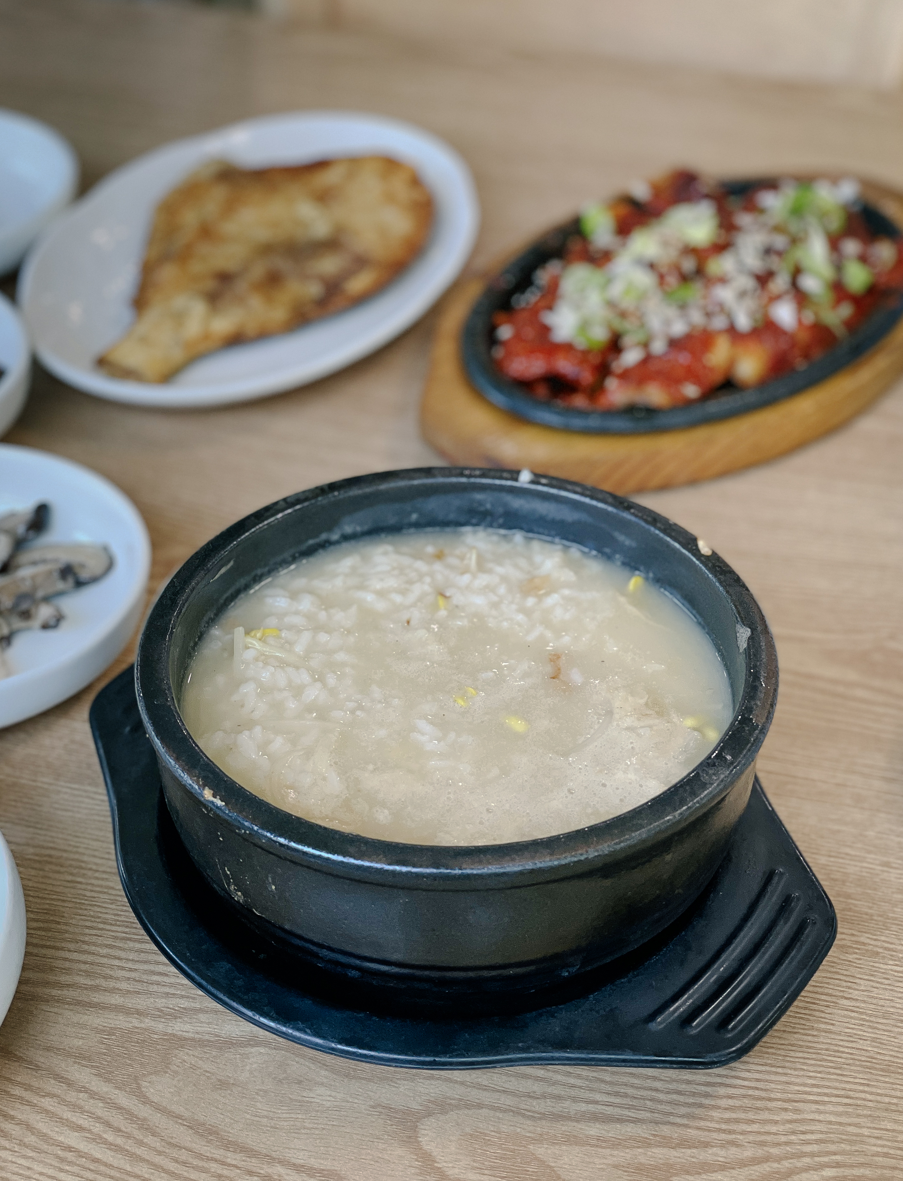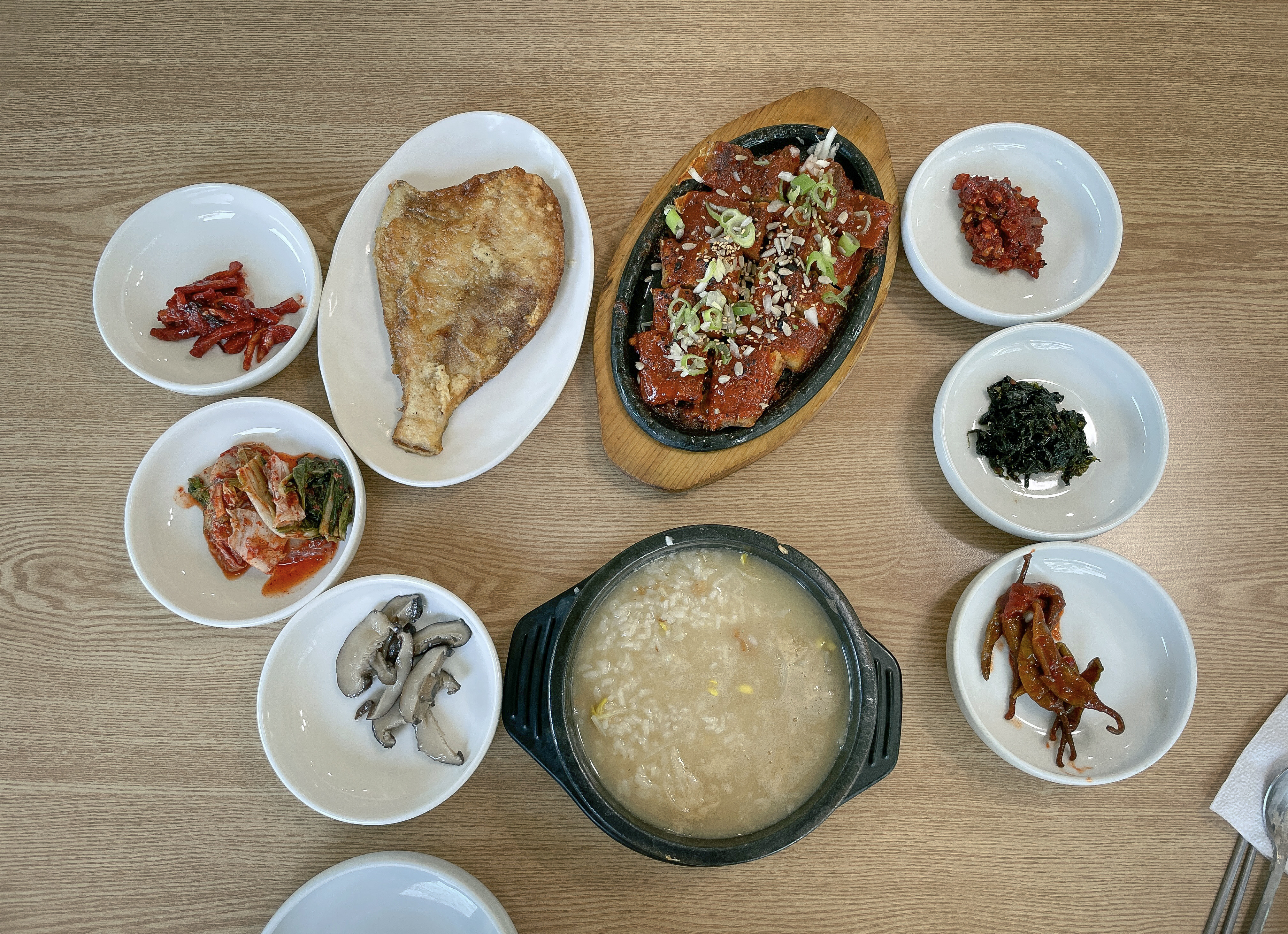 감나무식당 황태국밥은 가자미구이와 젓갈, 버섯볶음, 김치 등이 함께 제공되었습니다. 반찬들을 맛깔스럽게 잘 나오는 편이었고, 특히 씨앗 젓갈이라 불리는 젓갈이 국밥과 곁들이기에 정말 좋았습니다.