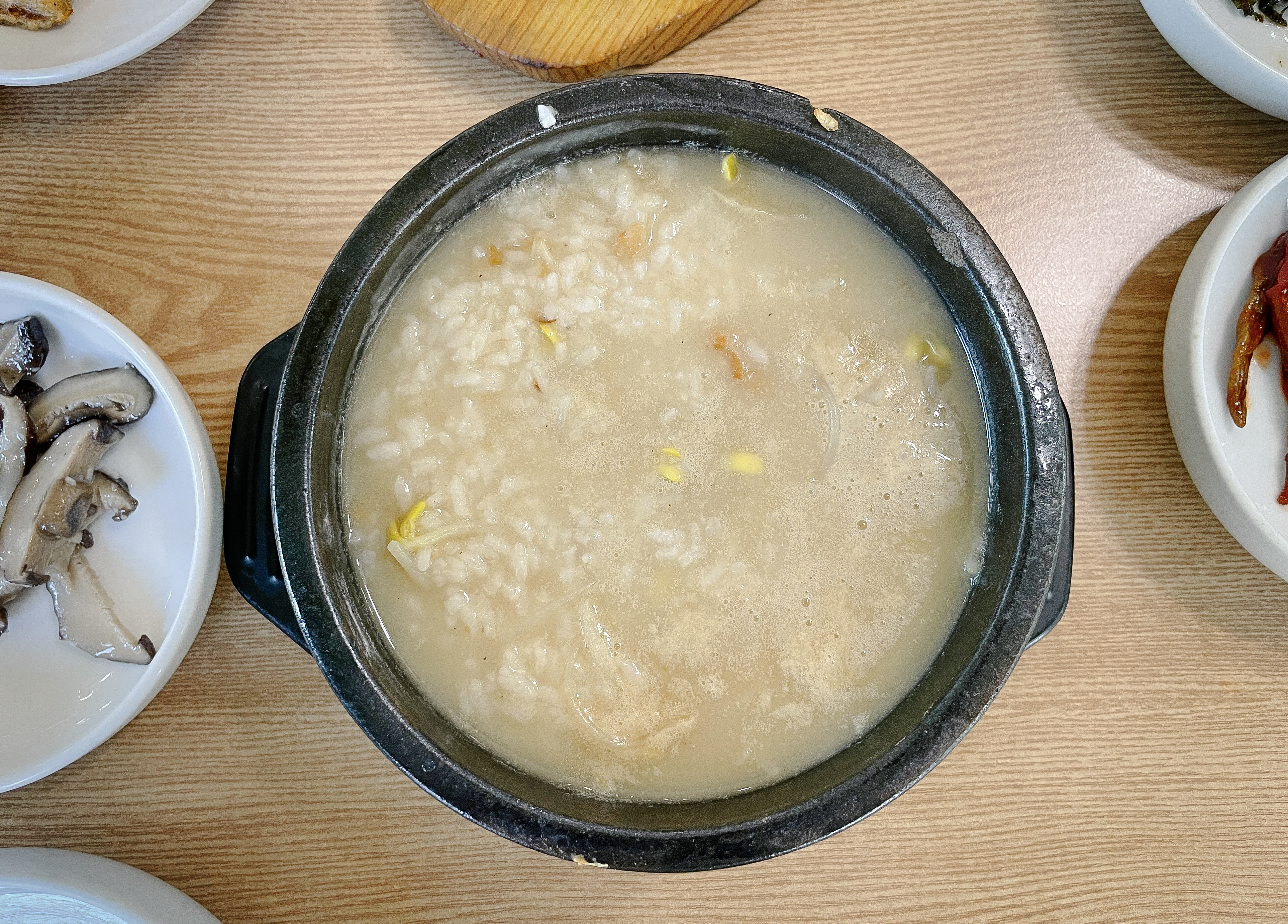 감나무식당 황태국밥은 가자미구이와 젓갈, 버섯볶음, 김치 등이 함께 제공되었습니다. 반찬들을 맛깔스럽게 잘 나오는 편이었고, 특히 씨앗 젓갈이라 불리는 젓갈이 국밥과 곁들이기에 정말 좋았습니다.