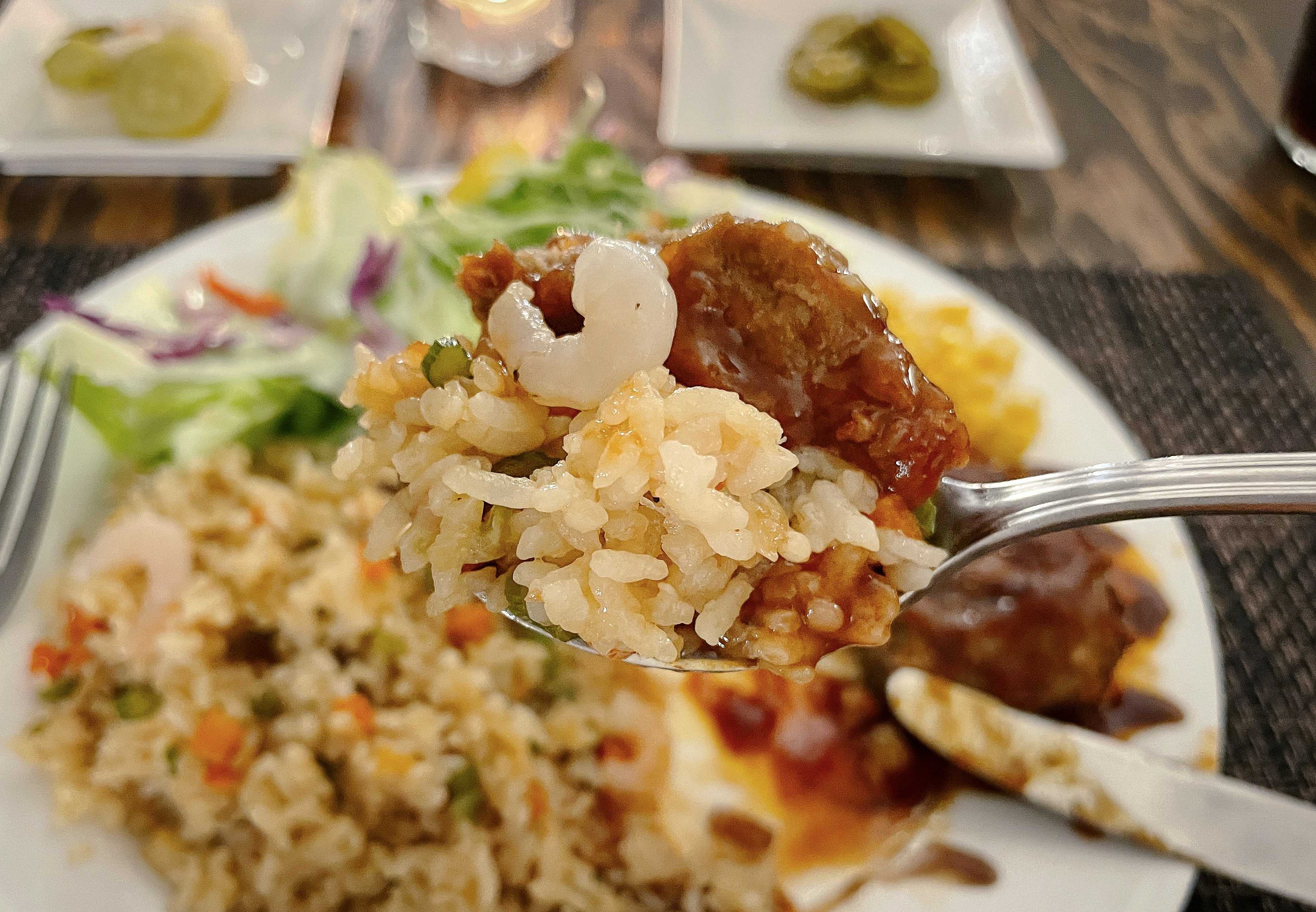 비프스테이크해물볶음밥의 가격은 19,000원이었는데, 솔직히 말하자면 중식당처럼 직접 해물볶음밥을 만드는 것도 아니고, 냉동된 제품을 전자레인지로 돌려주는 맛이었고, 비프함박스테이크도 마찬가지로 기성품 맛이었습니다.