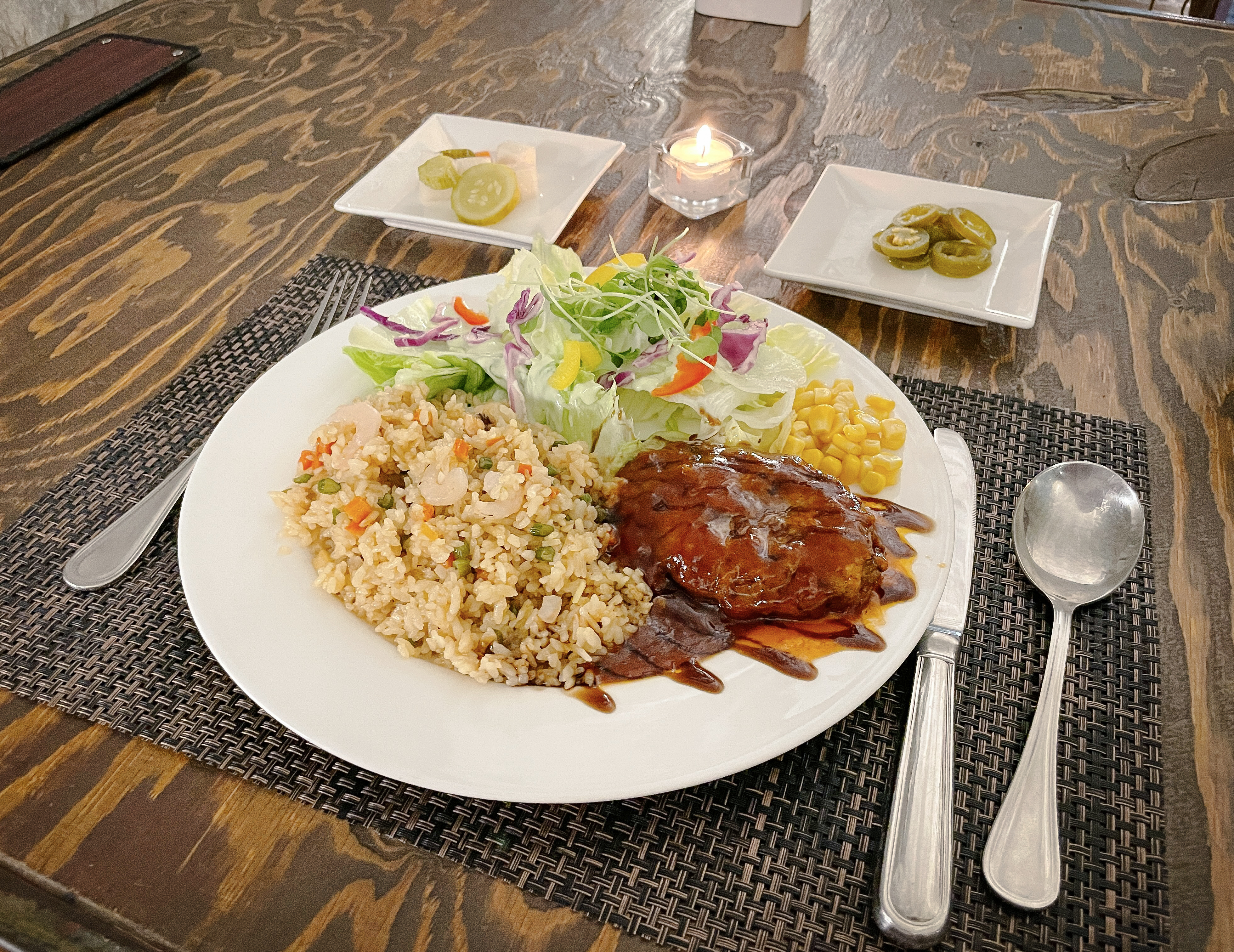 비프스테이크해물볶음밥의 가격은 19,000원이었는데, 솔직히 말하자면 중식당처럼 직접 해물볶음밥을 만드는 것도 아니고, 냉동된 제품을 전자레인지로 돌려주는 맛이었고, 비프함박스테이크도 마찬가지로 기성품 맛이었습니다.