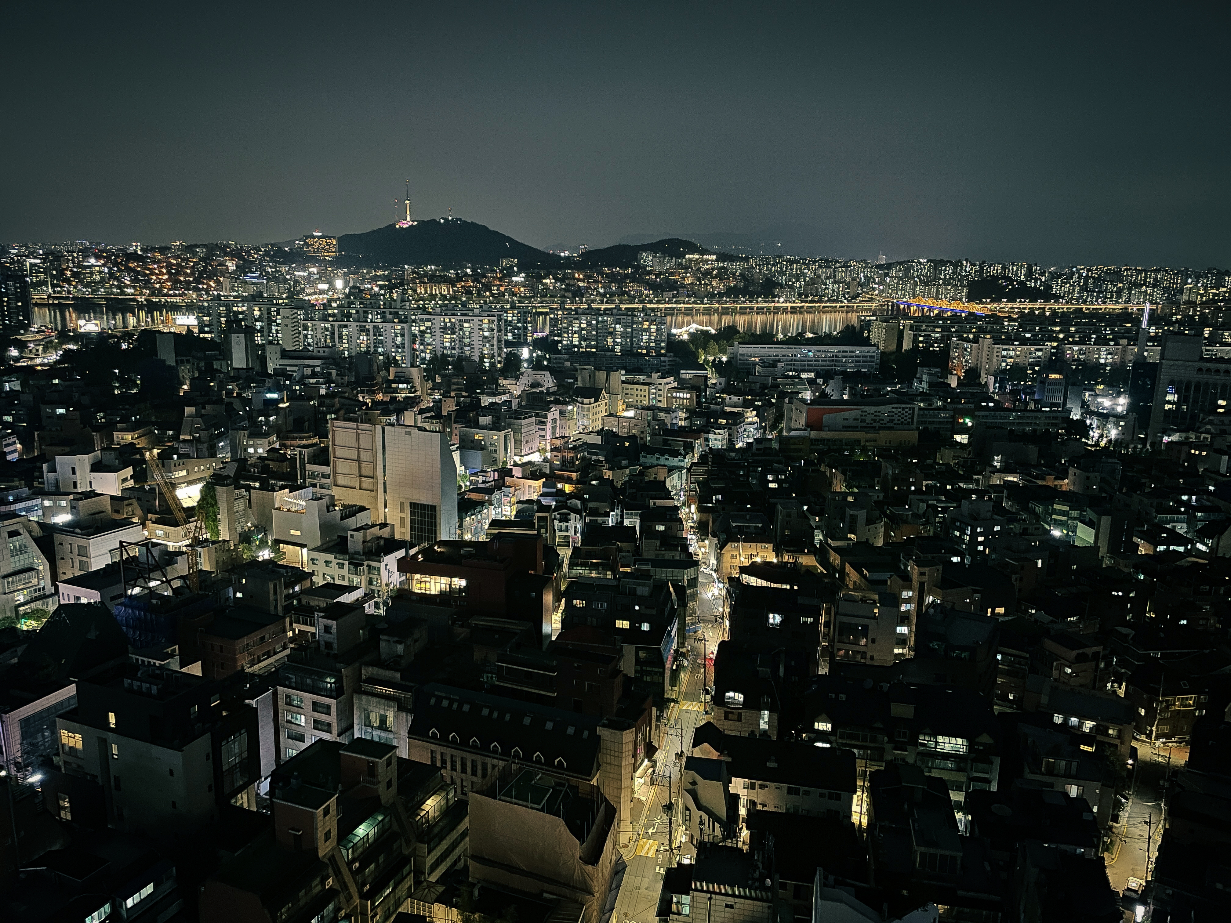 루프탑 전망대에서 내려다보는 맑은 날 서울 야경은 정말 커피 가격이 아깝지 않을 정도로 좋았습니다. 이런 분위기에서는 와인이나 잔술을 마셔야 할 것 같았지만, 저는 자가용을 가지고 와서 녹차로 대신했습니다.