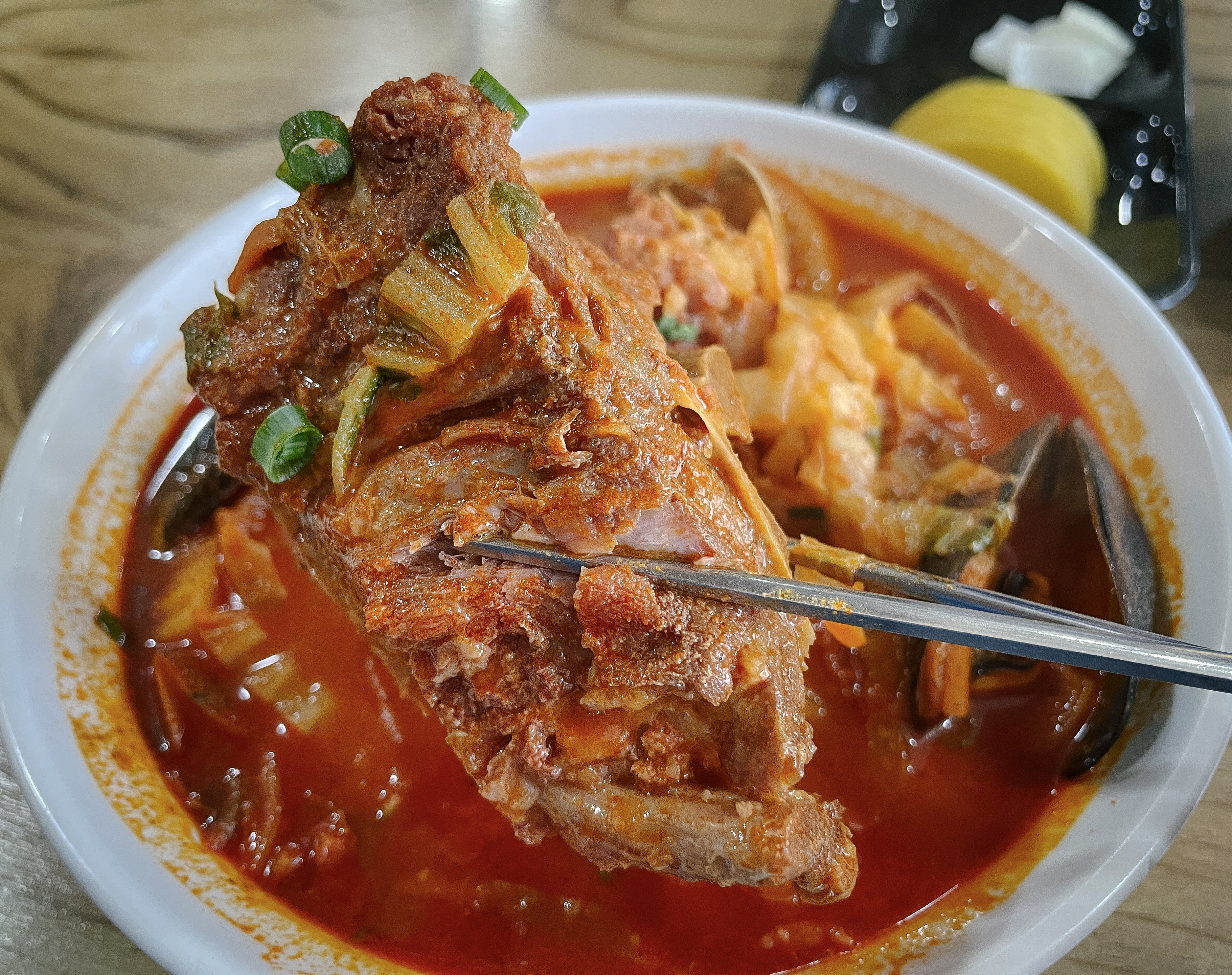 뼈짬뽕 먹는 방법은 짬뽕 그릇 안에 있는 면을 먼저 건져먹고, 다음에 건더기를 먹는 순서로 먹으면 되었습니다. 뼈다귀의 고기는 부드러웠고 국물은 해산물과 돈 등뼈가 동시에 들어가 얼큰하면서 감칠맛이 있었습니다.