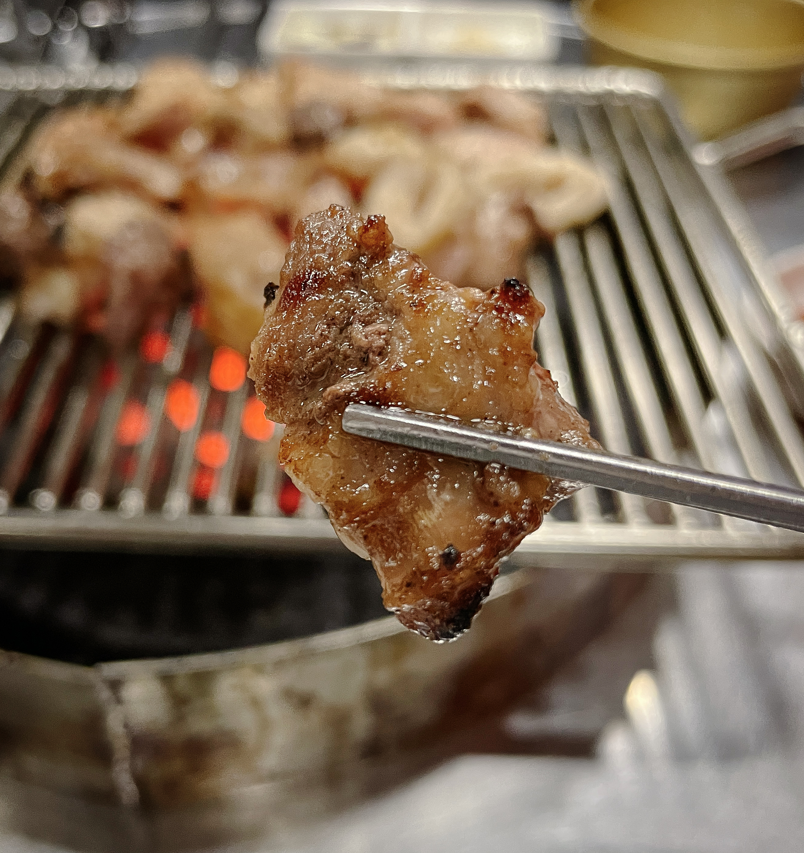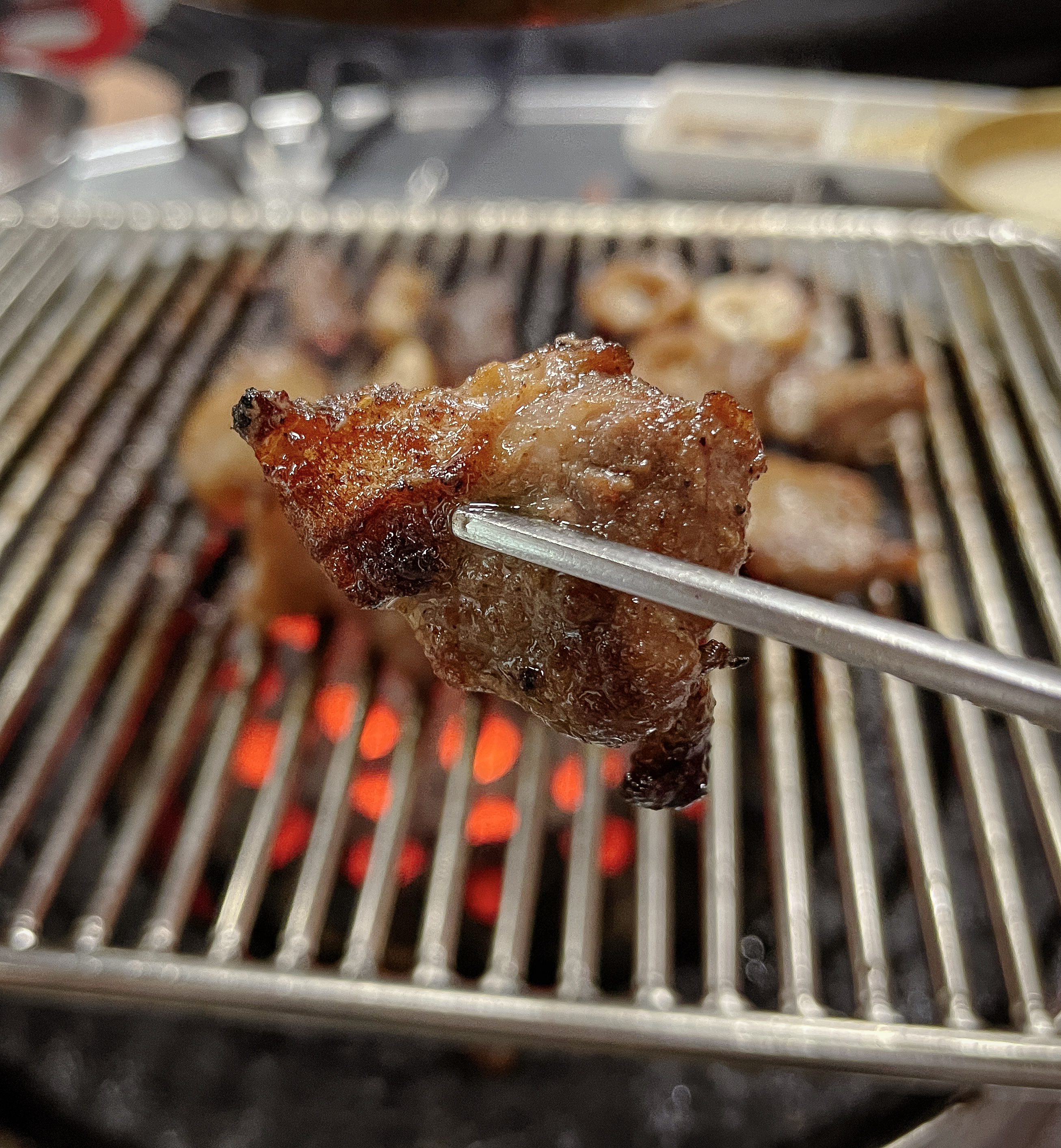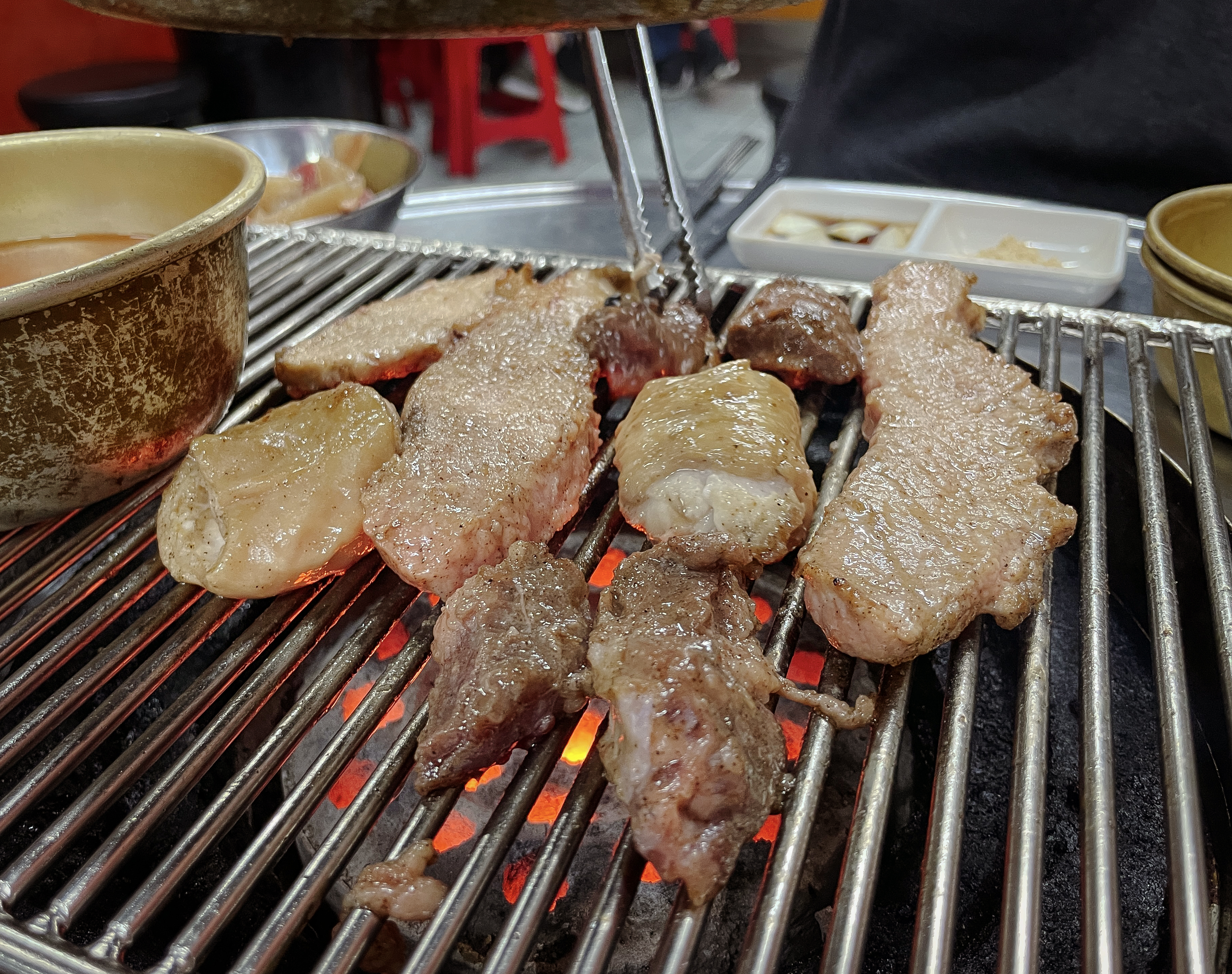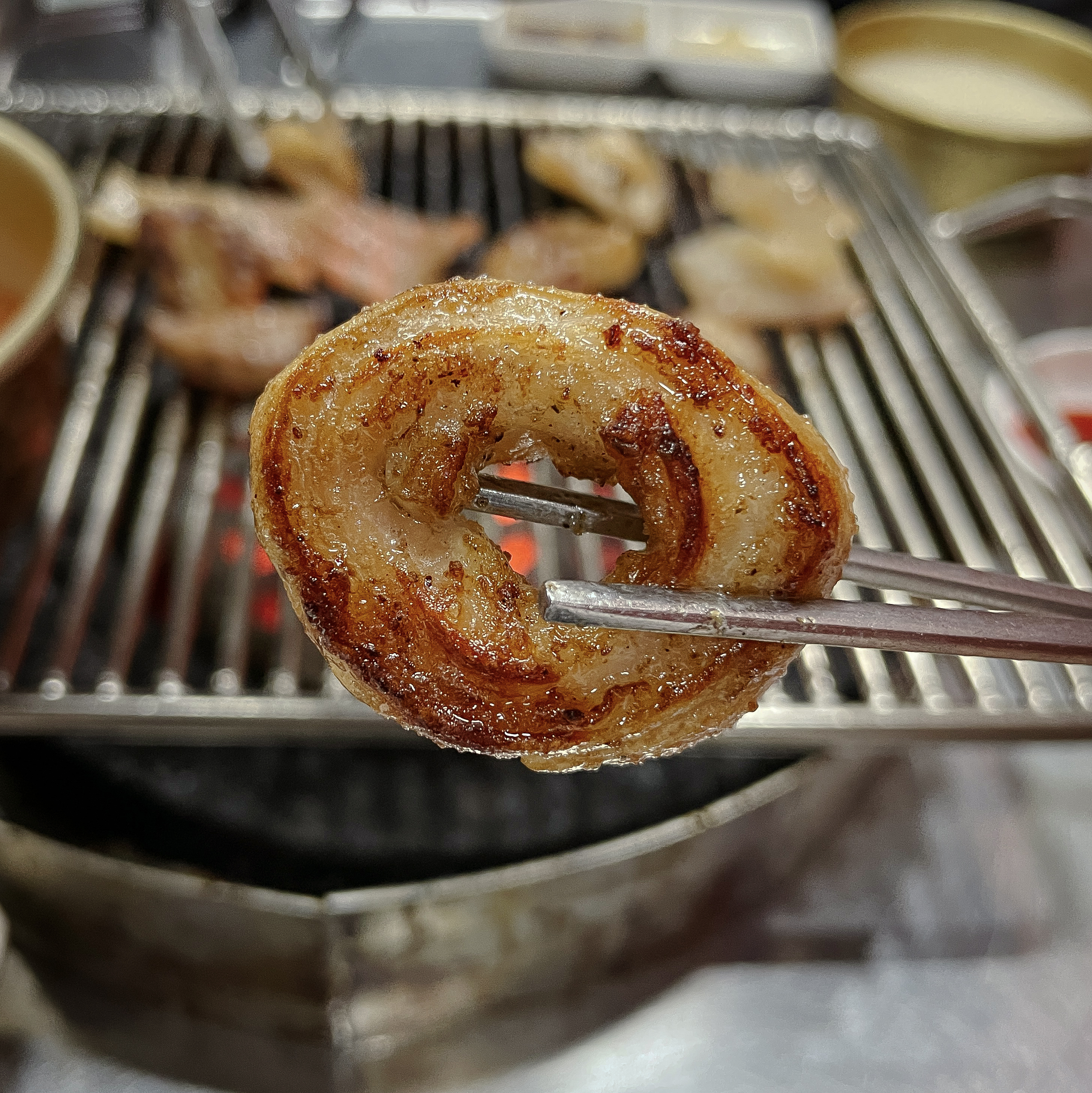 고기는 양념이 잘 배어있어 잡내 없이 좋았고, 부속고기 특성상 꼬들꼬들한 식감이 있었습니다. 막창과 갈매기살은 그나마 익숙한 부위였는데, 이제 돼지 유통을 먹을 차례였죠. 젖꼭지라고 하니 거부감이 있었지만, 생각보다 식감은 쫄깃했고 돼지 껍데기와 막창의 중간쯤 되는 식감이었습니다.