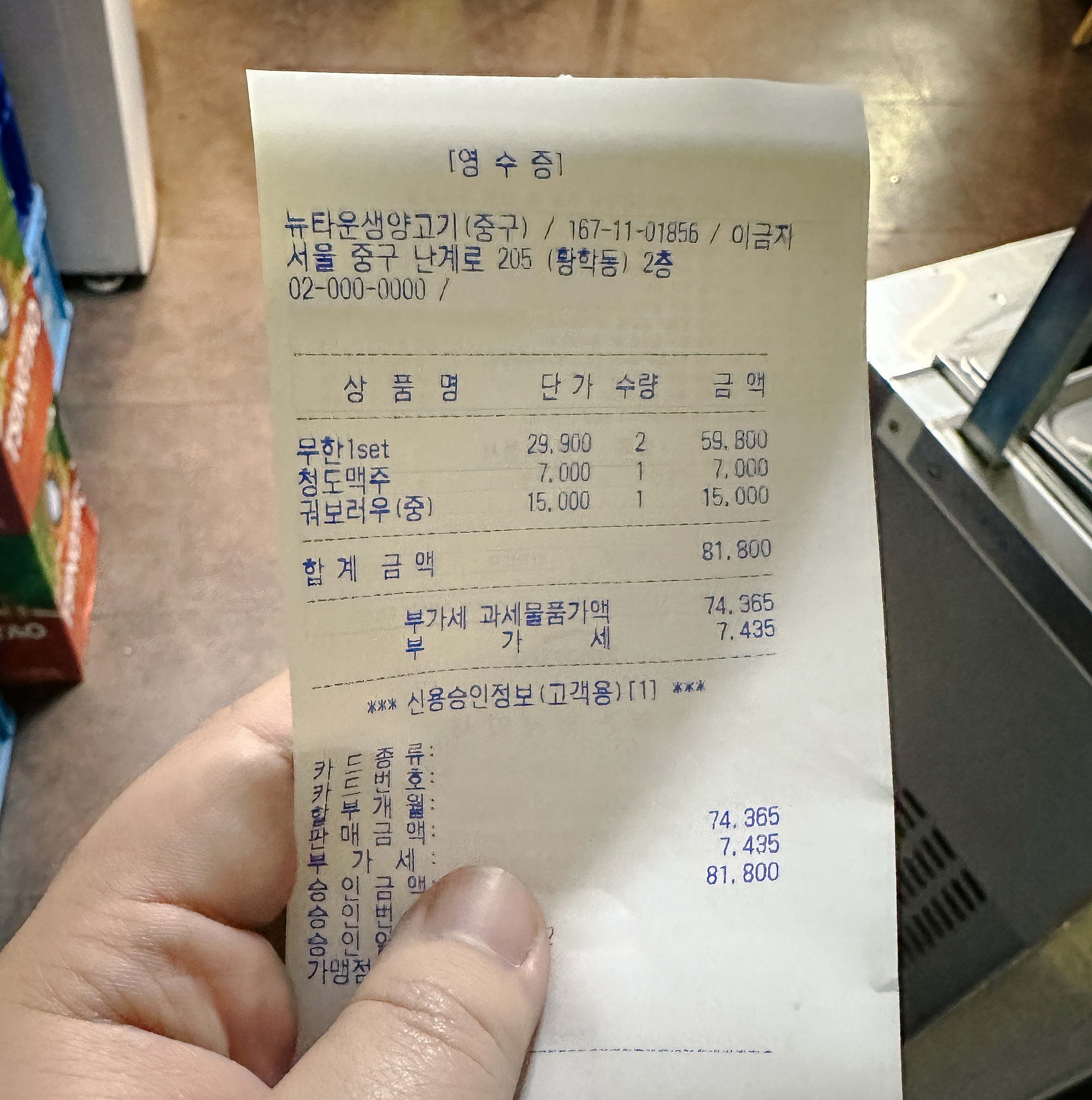 저희가 식사한 금액은 81,800원. 유튜버는 만족스럽게 식사했을지 모르겠지만, 저희는 썩 좋은 경험은 못했던 가게였습니다. 남자 사장님도 바쁘시다는 이유로 친절하시지는 않으셨고, 무한리필이라고 해서 만족스럽게 먹을 정도로 많이 주지는 않으시고요. 특히 불판의 세기가 너무 약해서 애간장이 타서 재방문 의사는 없을 것 같습니다.