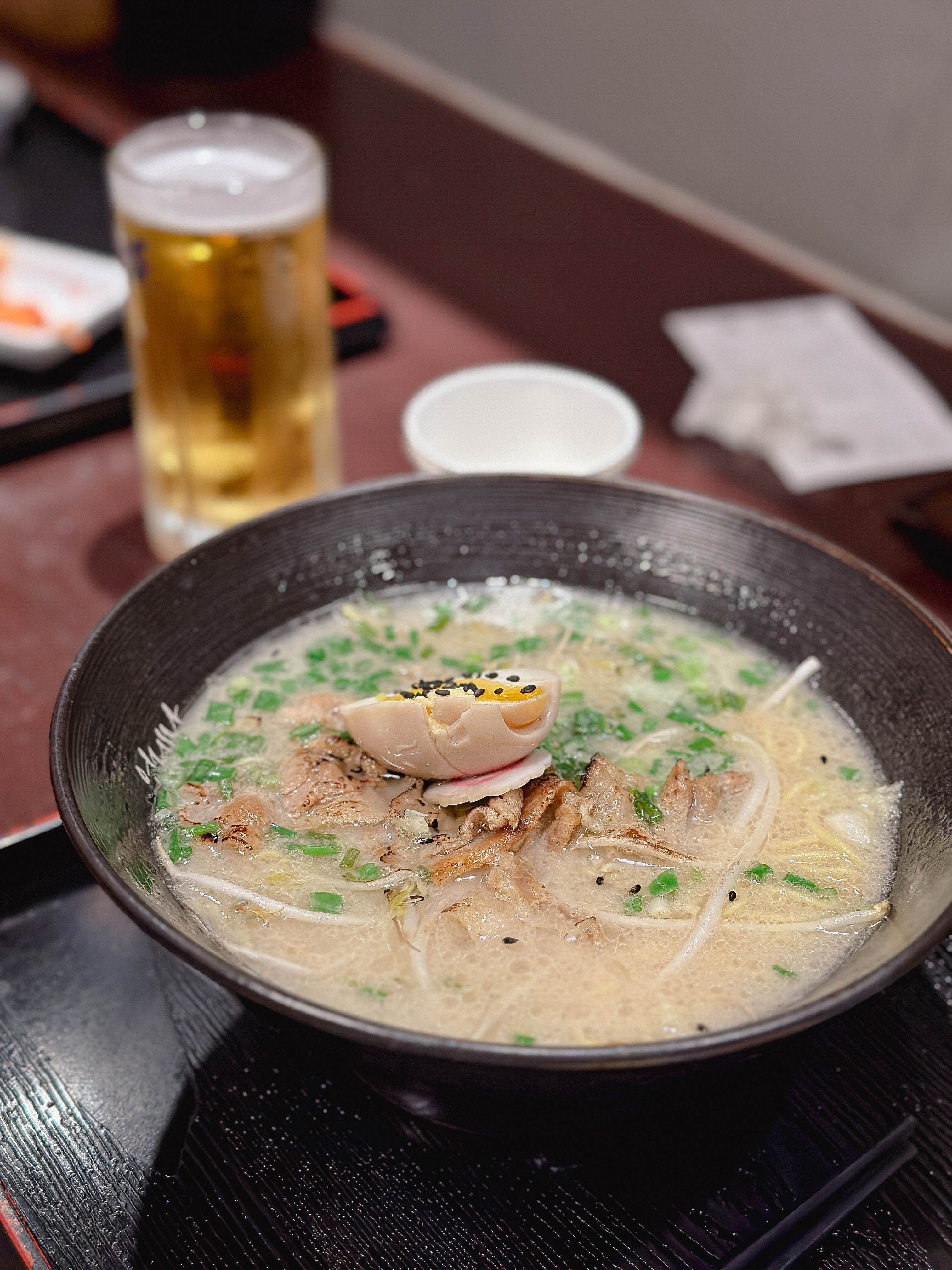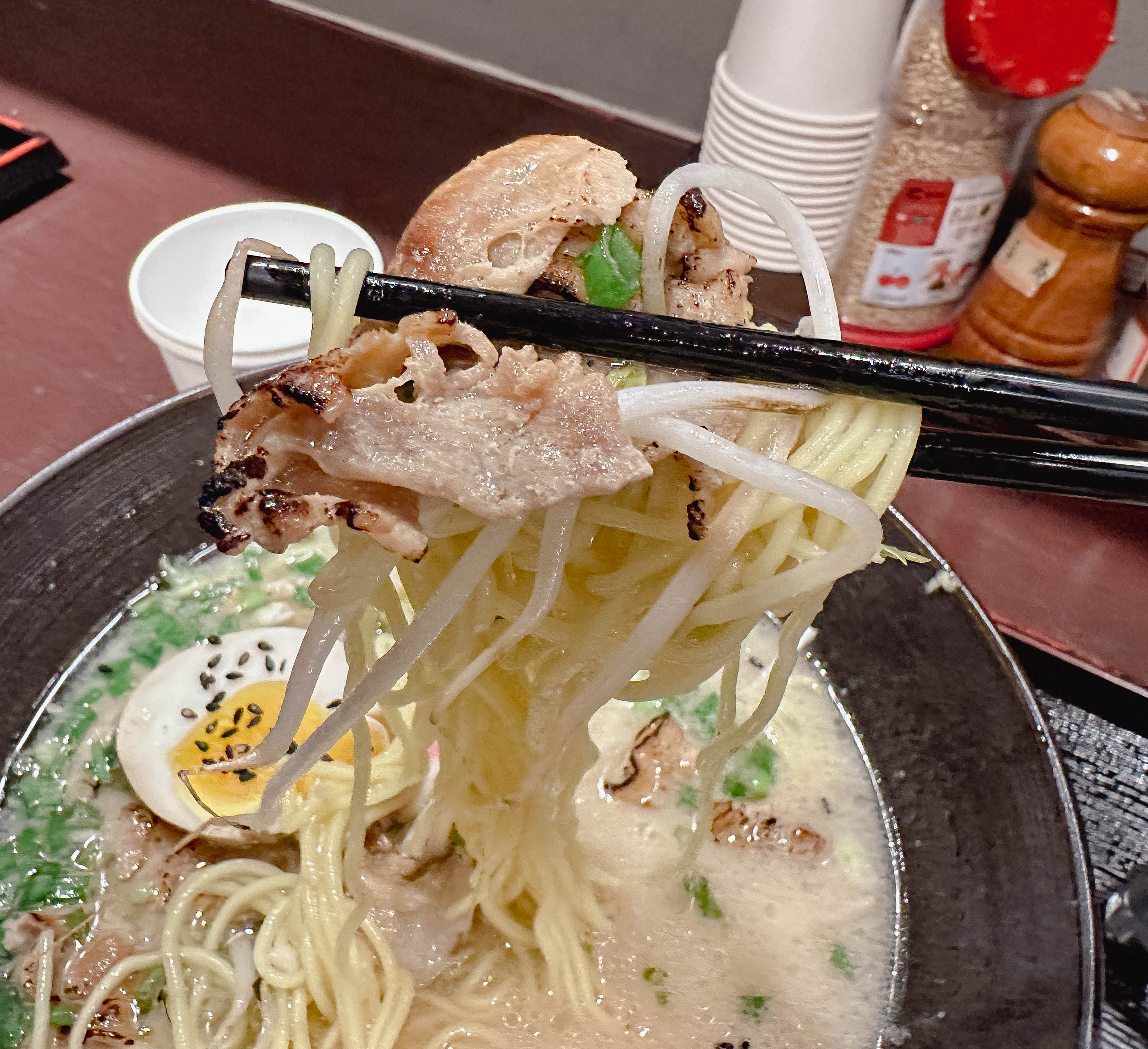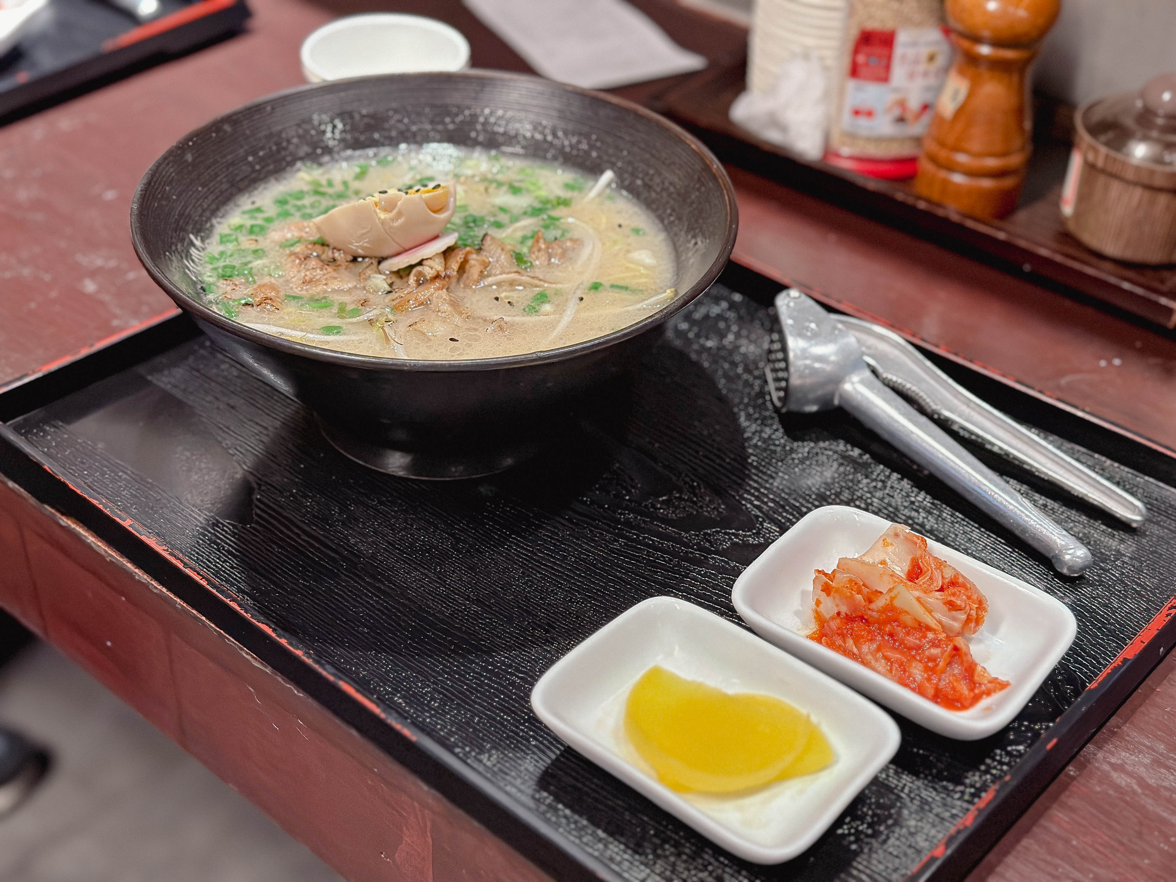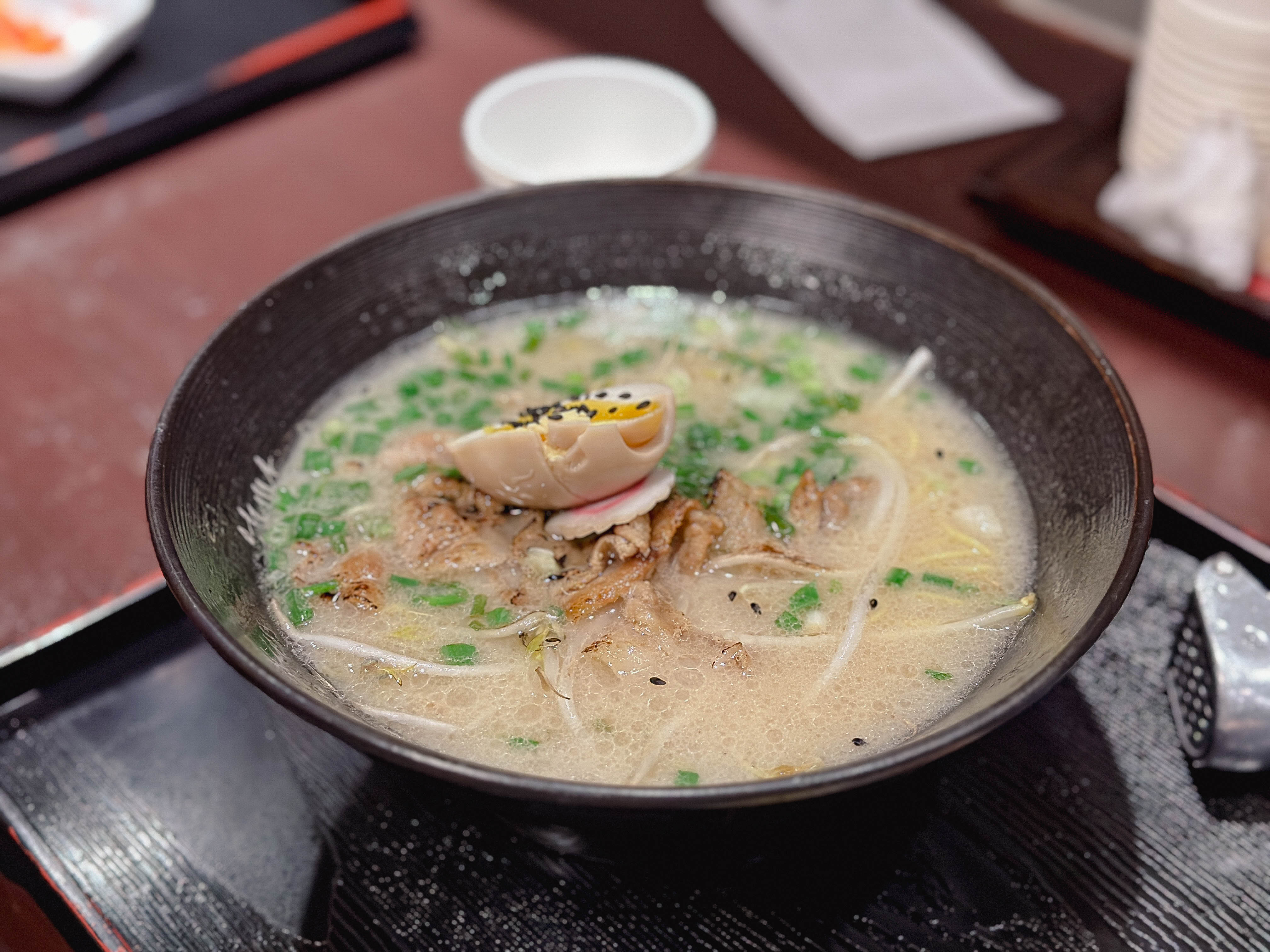제가 먹은 돈코츠라멘의 모습입니다. 적당한 농도의 국물과 숙주나물 그리고 이곳은 독특하게 차슈가 아닌 불고기(?)를 고명으로 얹어주고 있었습니다. 간장소스로 맛을 낸 불고기였는데, 차슈보단 덜 느끼하고 색다르기도 하더라고요.