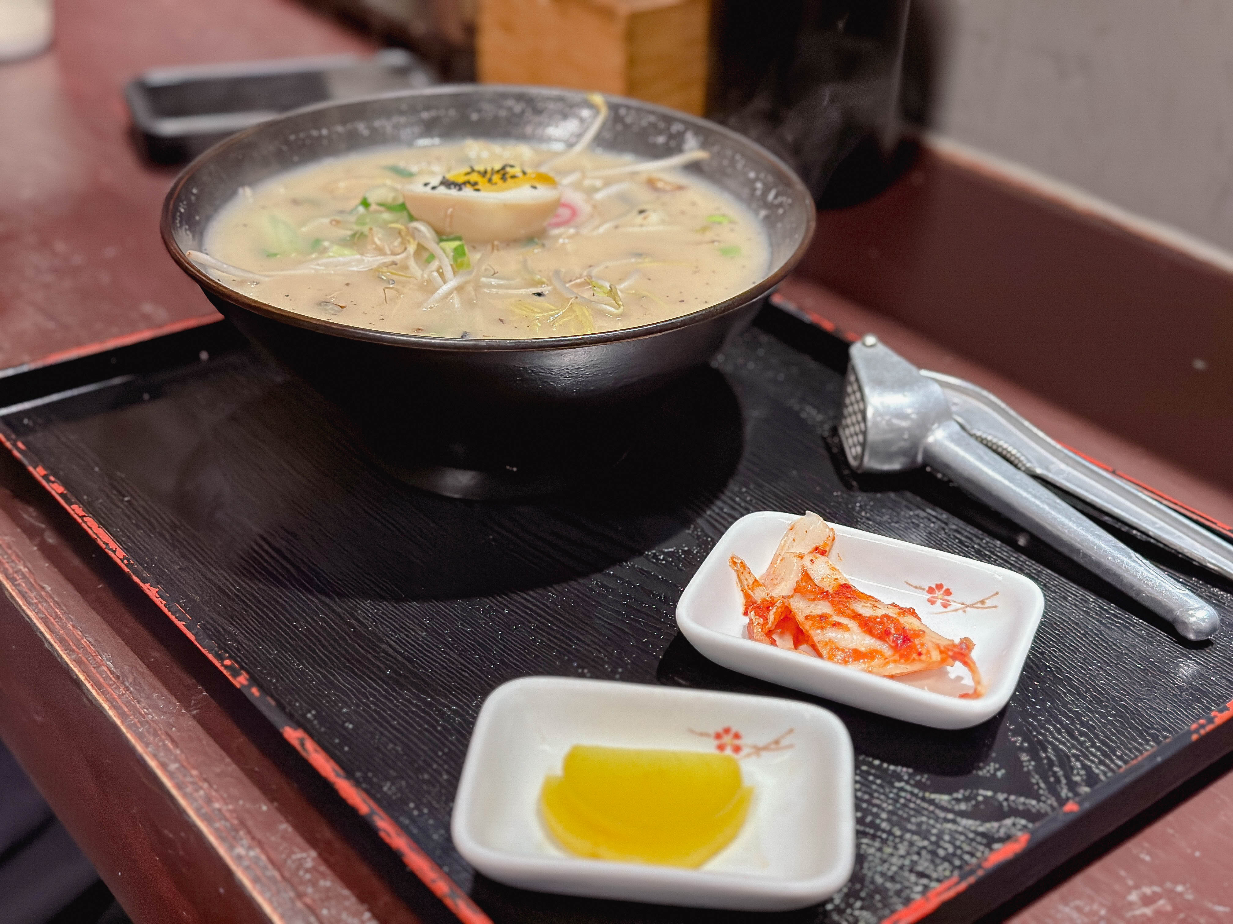 나미루라멘의 '나가사키라멘'과 '돈코츠라멘'의 모습입니다. 두 라멘 모두 특별히 비주얼이 뛰어나거나 하지는 않았는데, 가격 대비 괜찮은 퀄리티의 라멘이었습니다. 반찬은 단무지와 배추김치가 나왔습니다.