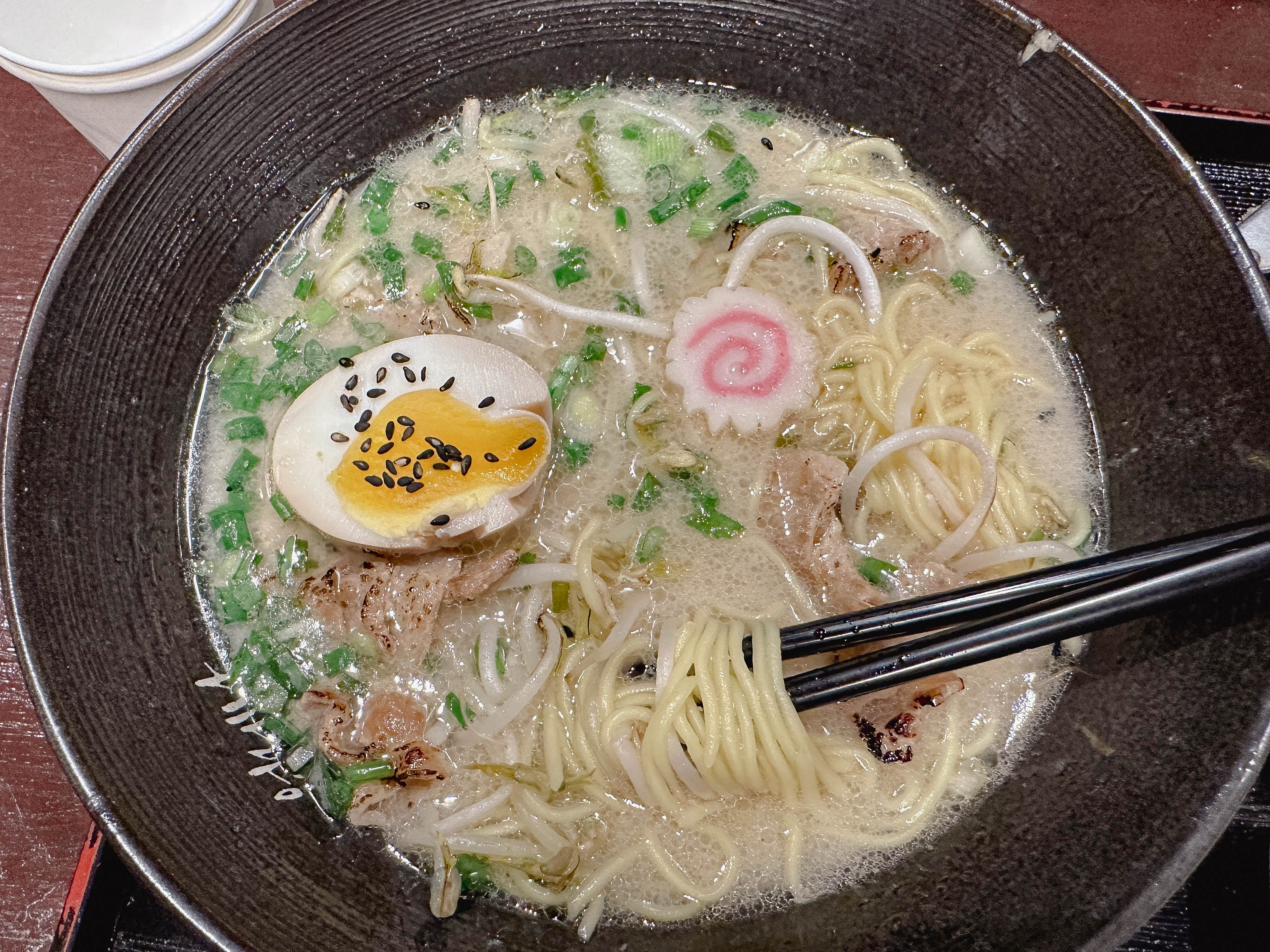 제가 먹은 돈코츠라멘의 모습입니다. 적당한 농도의 국물과 숙주나물 그리고 이곳은 독특하게 차슈가 아닌 불고기(?)를 고명으로 얹어주고 있었습니다. 간장소스로 맛을 낸 불고기였는데, 차슈보단 덜 느끼하고 색다르기도 하더라고요.