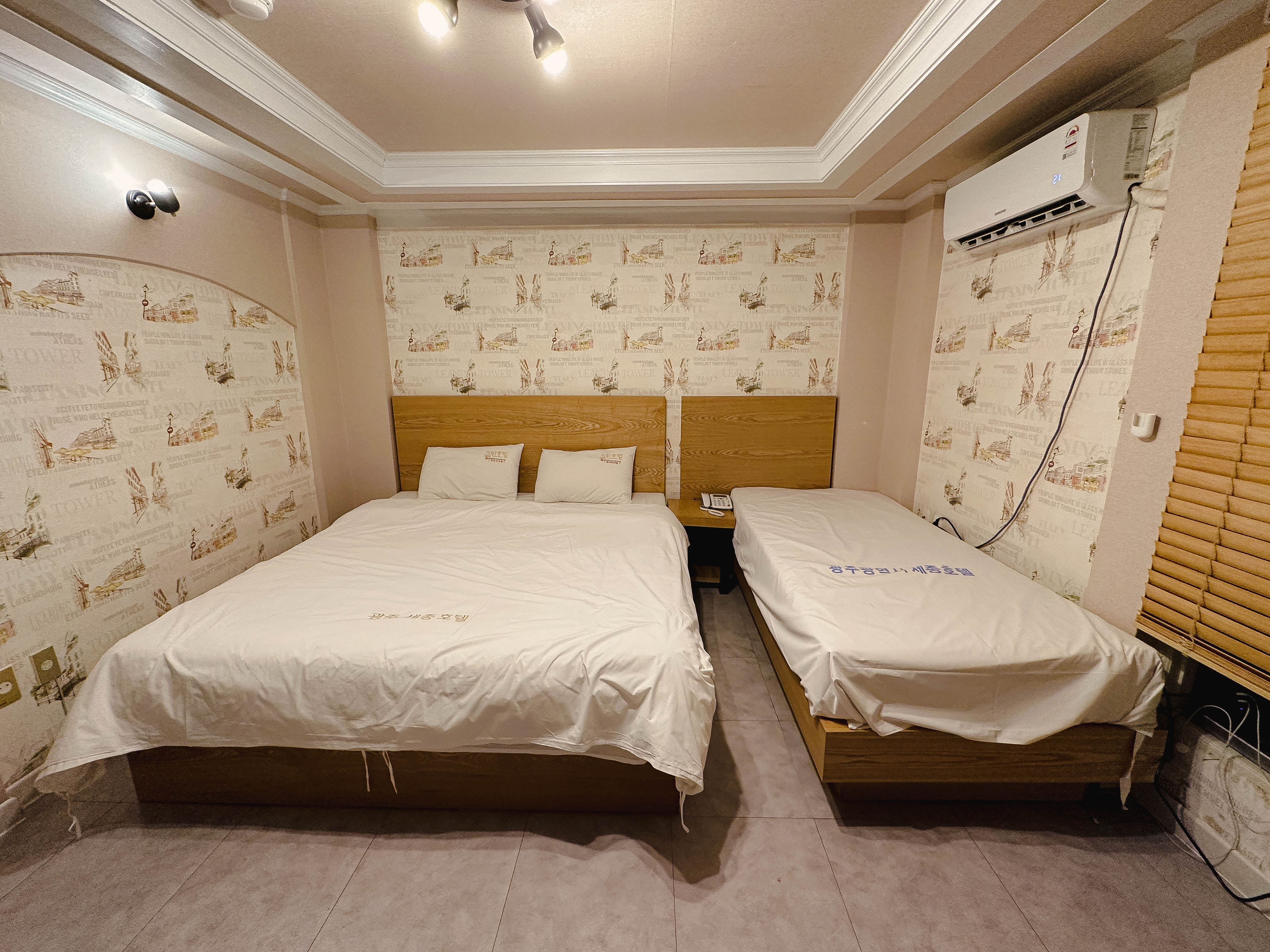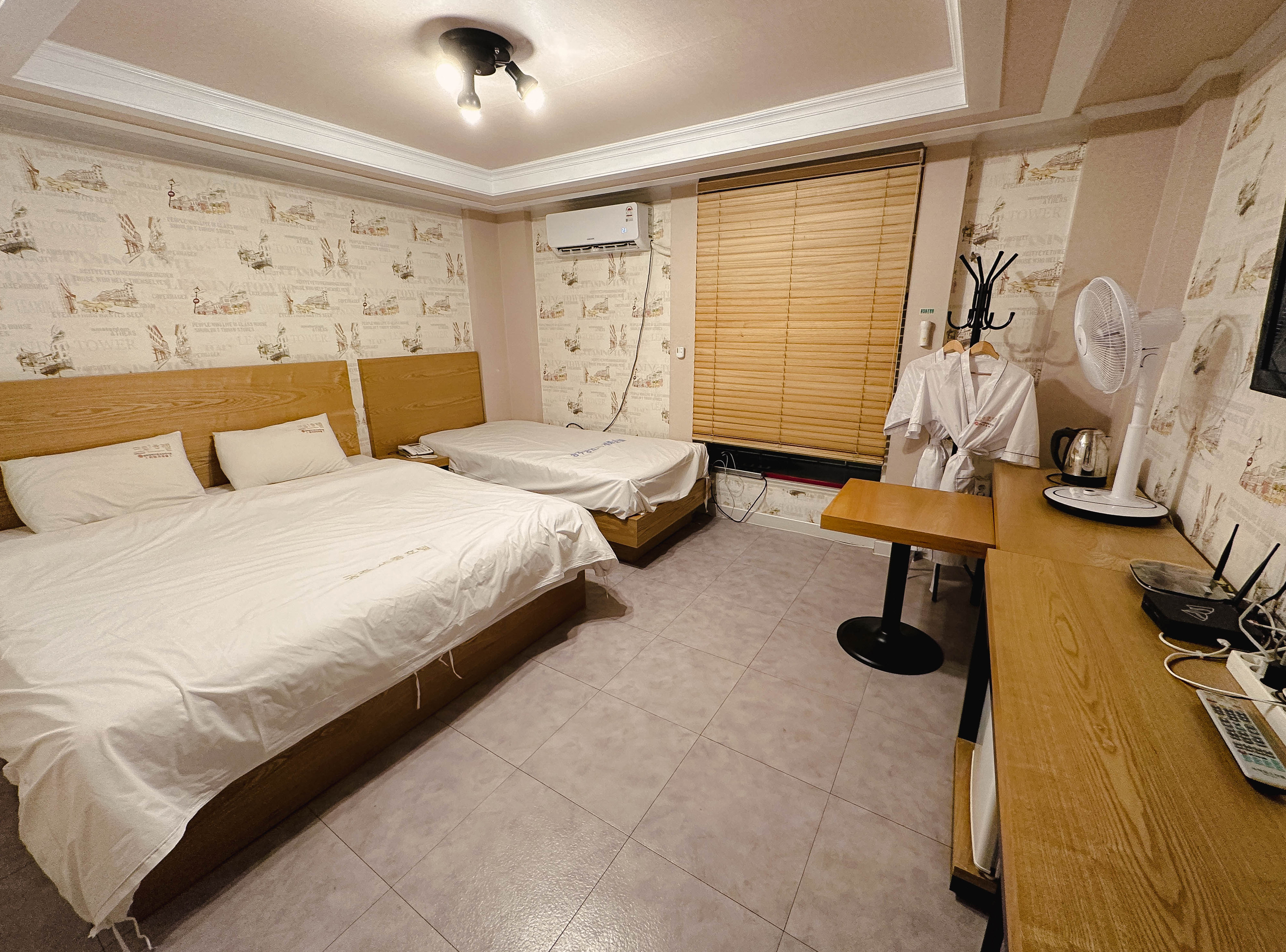 제가 이용한 방의 모습은 위와 같았습니다. 일단 크기가 컸고 청소가 잘 되어있었으며 침구류 및 집기가 잘 정돈되어 있어서 쾌적하게 이용할 수 있었습니다. 에어컨, 선풍기 등 냉방기기가 잘 작동되었고 꿉꿉한 냄새도 안 나더라고요.