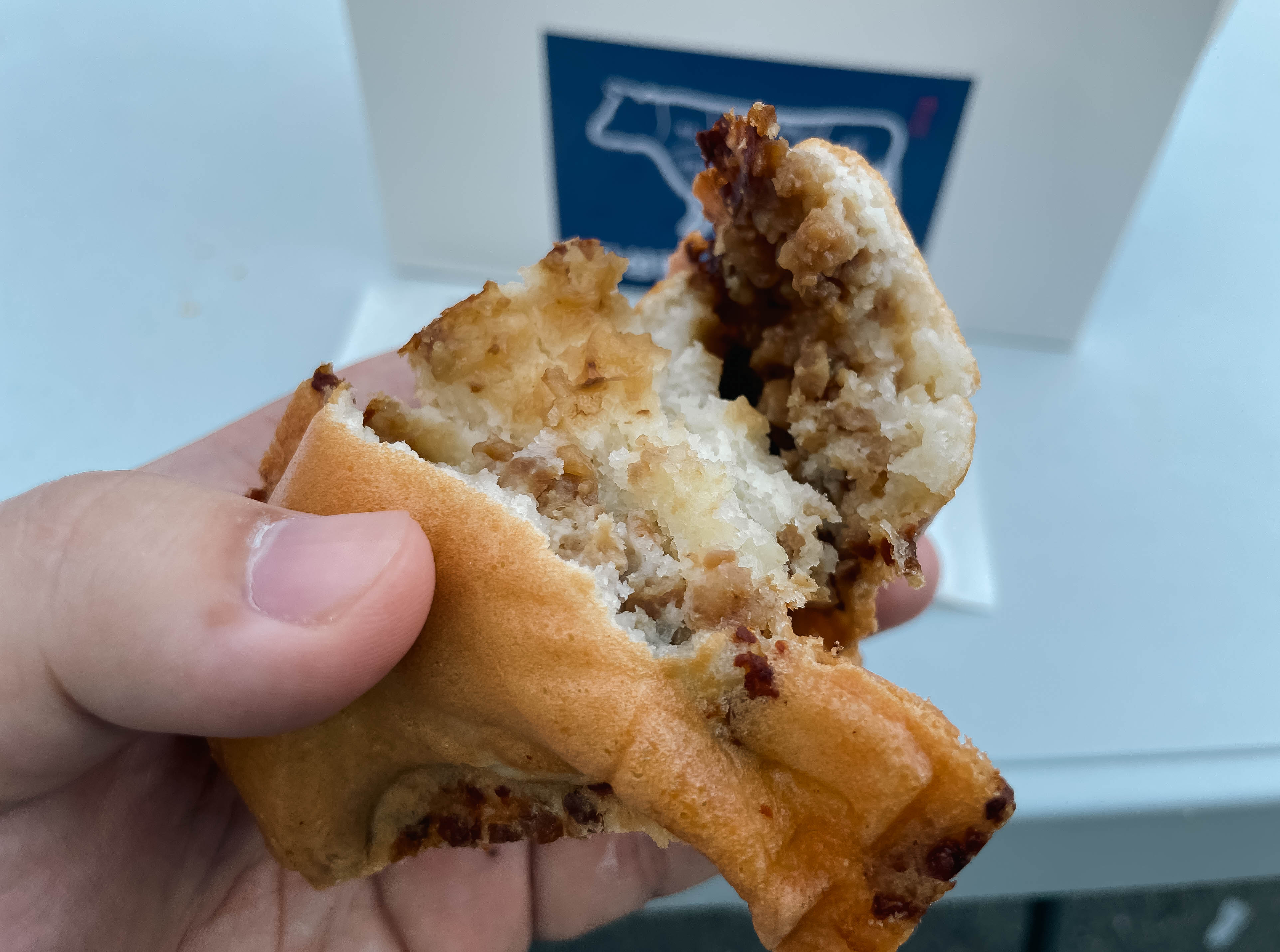 횡성한우빵의 모습은 위와 같이 생겼습니다. 더덕먹은횡성한우빵의 맛부터 소개해드리자면 내용물의 맛은 야채호빵의 맛과 비슷한 느낌을 주었습니다. 빵은 적당히 단 맛이 있었고, 선물용은 식혀서 내어주어 좀 차가웠습니다.