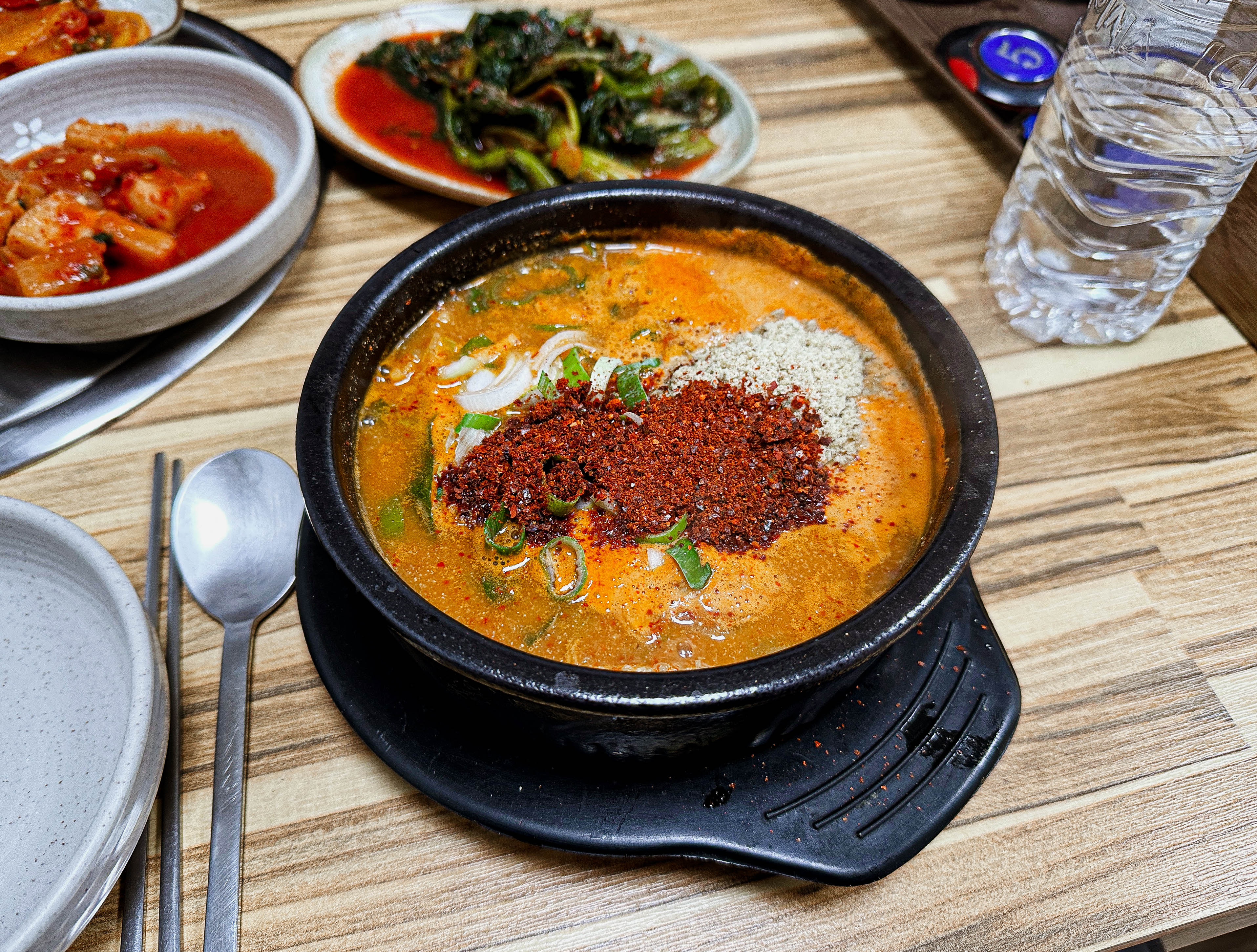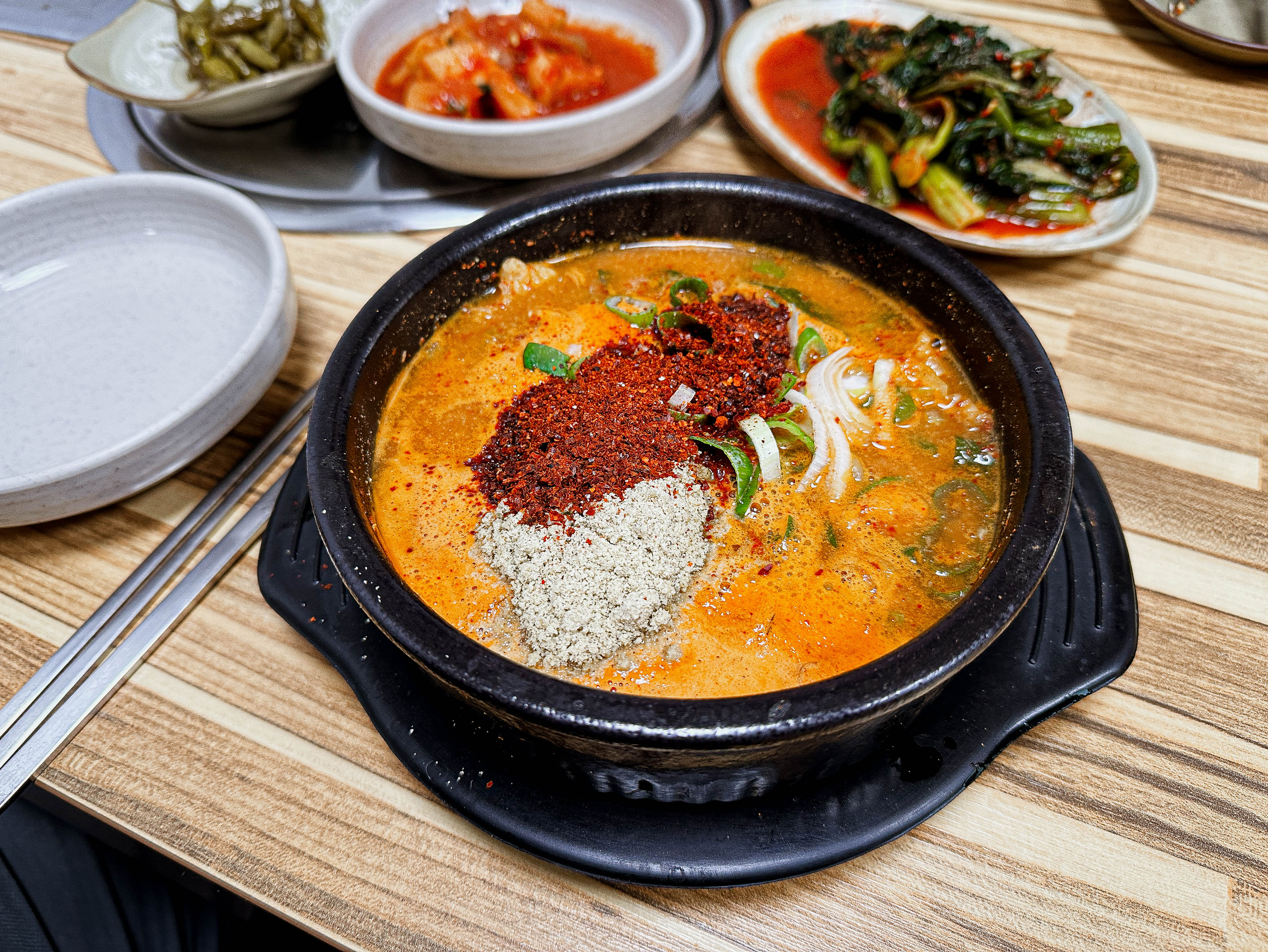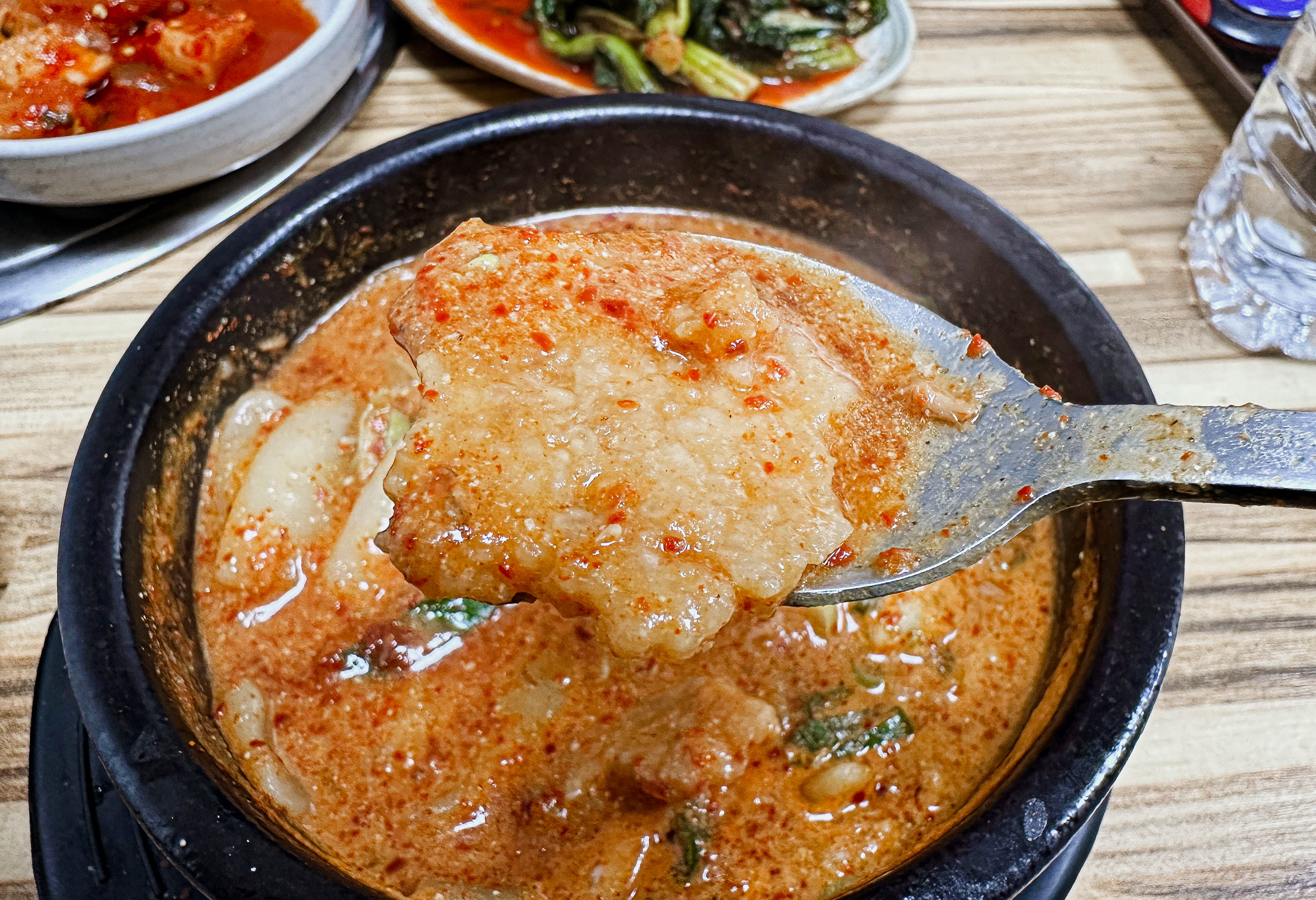 곧이어 주문한 어죽과 반찬이 함께 제공되었습니다. 반찬은 각종 절인 반찬과 김치가 제공되었습니다. 반찬들도 깔끔하고 맛이 좋았고, 특히 어죽이 꽤 먹음직스러워 보이더라고요.