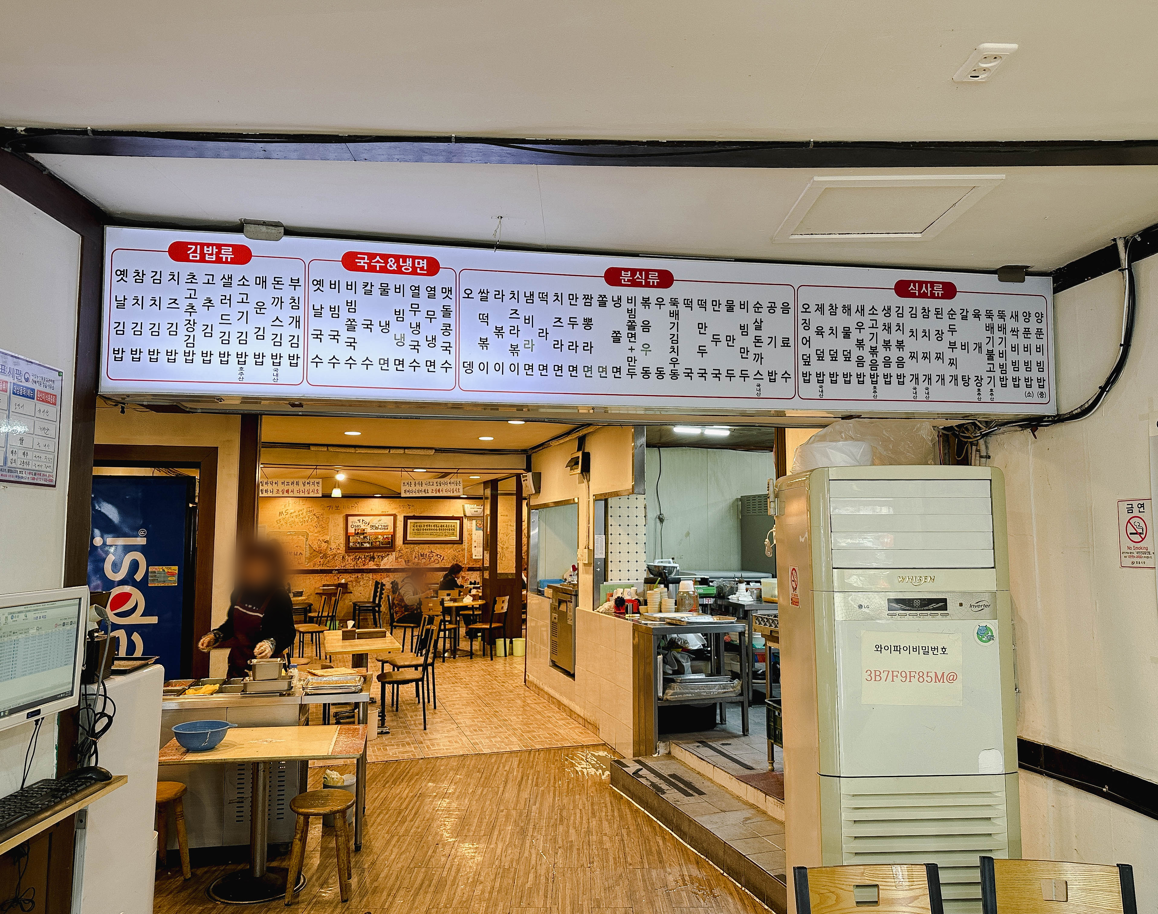정읍 옛날김밥의 김밥 메뉴는 옛날김밥, 참치김밥, 김치김밥, 치즈김밥, 초고추장김밥, 고추김밥, 샐러드김밥, 소고기김밥, 매운김밥, 돈까스김밥, 부침개김밥 등이 있었습니다. 저번에 다녀왔던 가게인 만남스넥도 초고추장 김밥이 있었는데, 이곳은 아예 메뉴로도 판매하고 있더라고요. 저는 가장 궁금했던 부침개김밥을 확인하기 위해서 '부침개김밥'과 무난한 메뉴인(?) '참치김밥'을 주문했습니다.