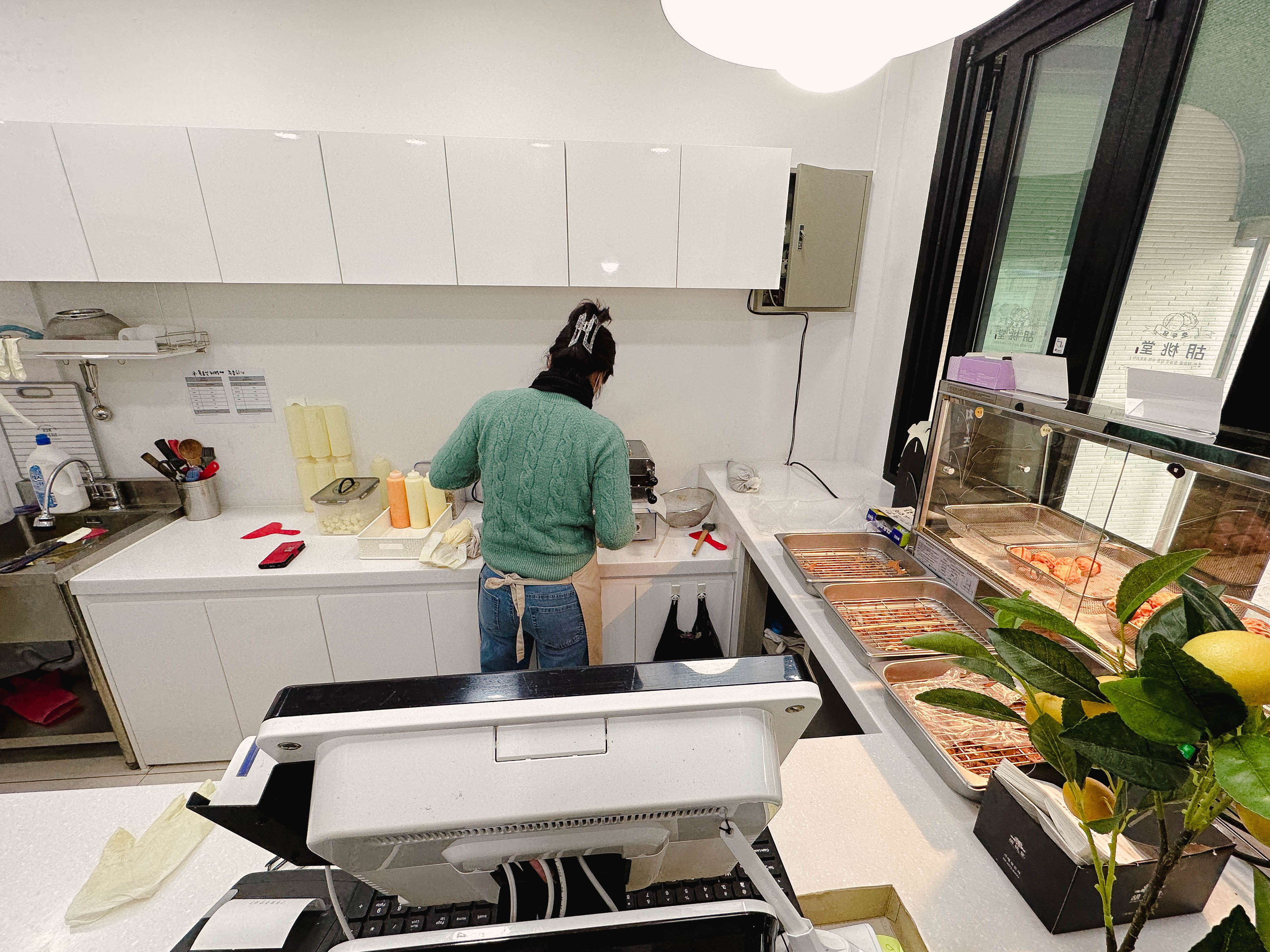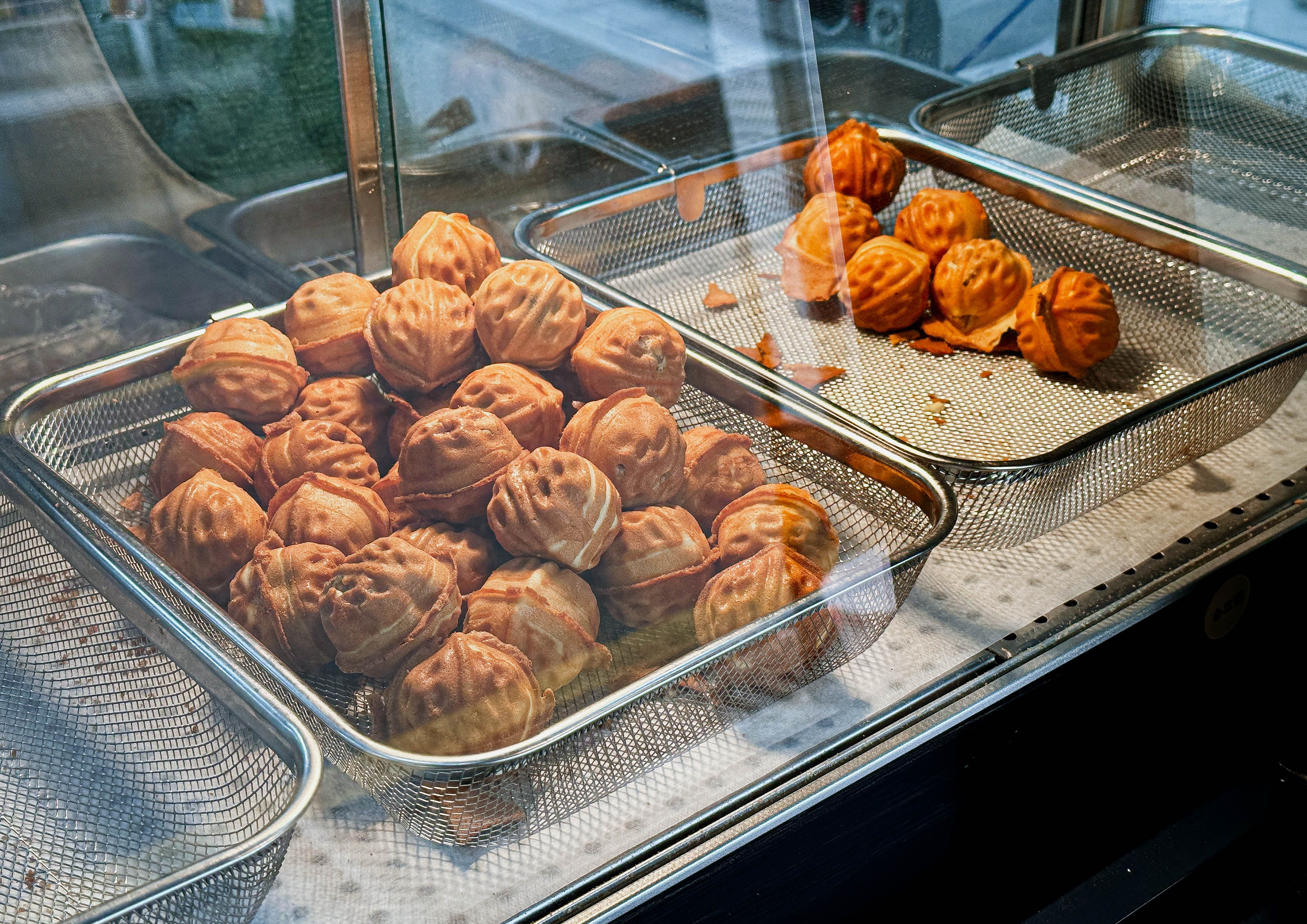 가게는 반죽부터 호두과자 속에 들어가는 앙금까지 가게에서 직접 준비해서 만든다고 하시더라고요. 팥 앙금은 기성품을 쓰고 있다고 하시는데, "호두과자 반죽부터 호두과자 안에 들어가는 슈크림까지 직접 관리하다 보니 손이 많이 간다" 고 하셨습니다. 실제로 만들어지는 호두과자는 휴게소의 호두과자보다 더 단단하고 호두과자 알이 굵어 보이더라고요.