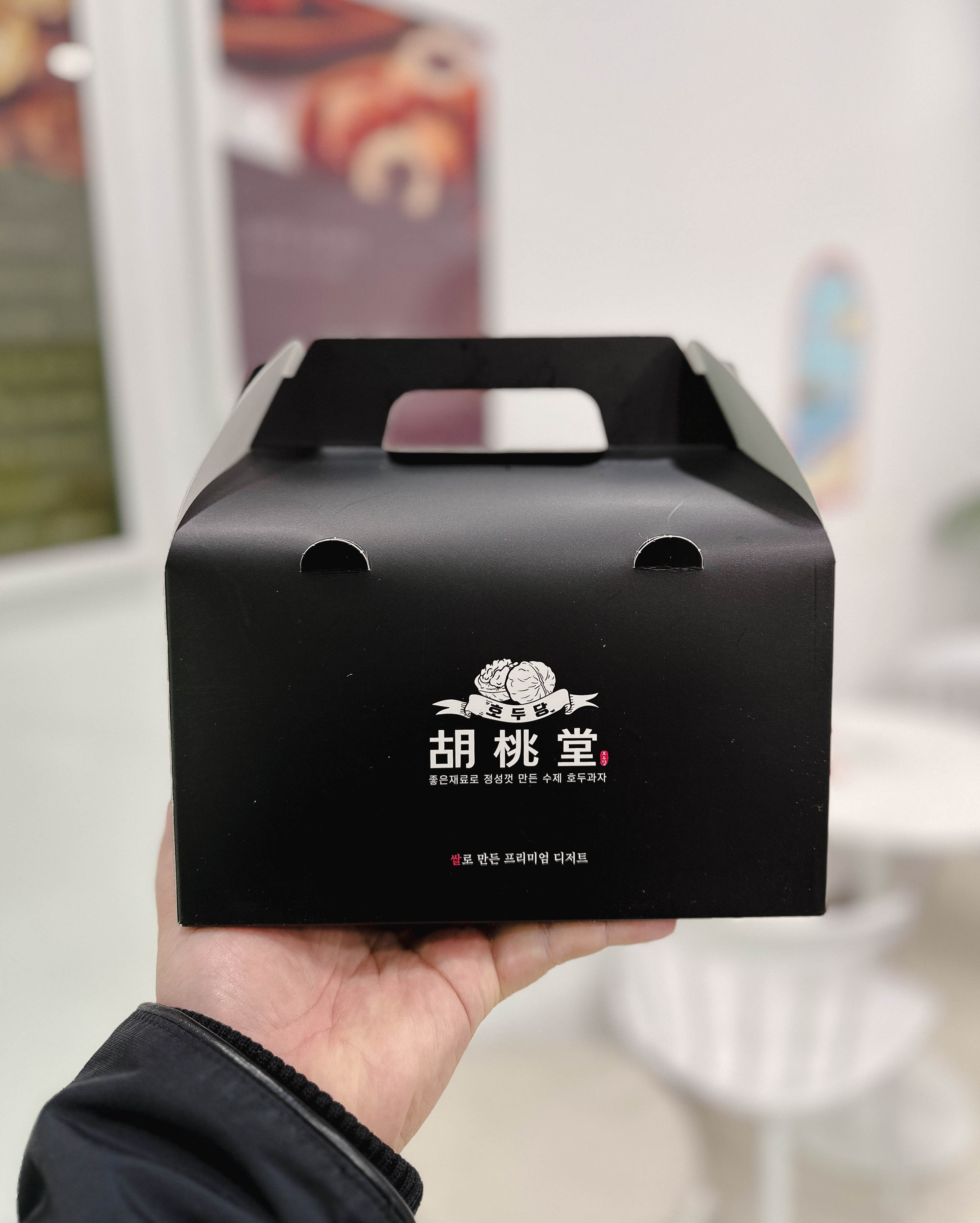 주문한 호두과자를 포장해 왔습니다. 포장은 검은색 상자에 담겨 나름 고급스러운 느낌이었습니다. 호두당 세트메뉴의 가격은 15,000원 이었습니다. 호두당에서 판매 중인 3가지 메뉴를 두루 맛볼 수 있으니 괜찮은 메뉴인 듯하더라고요.
