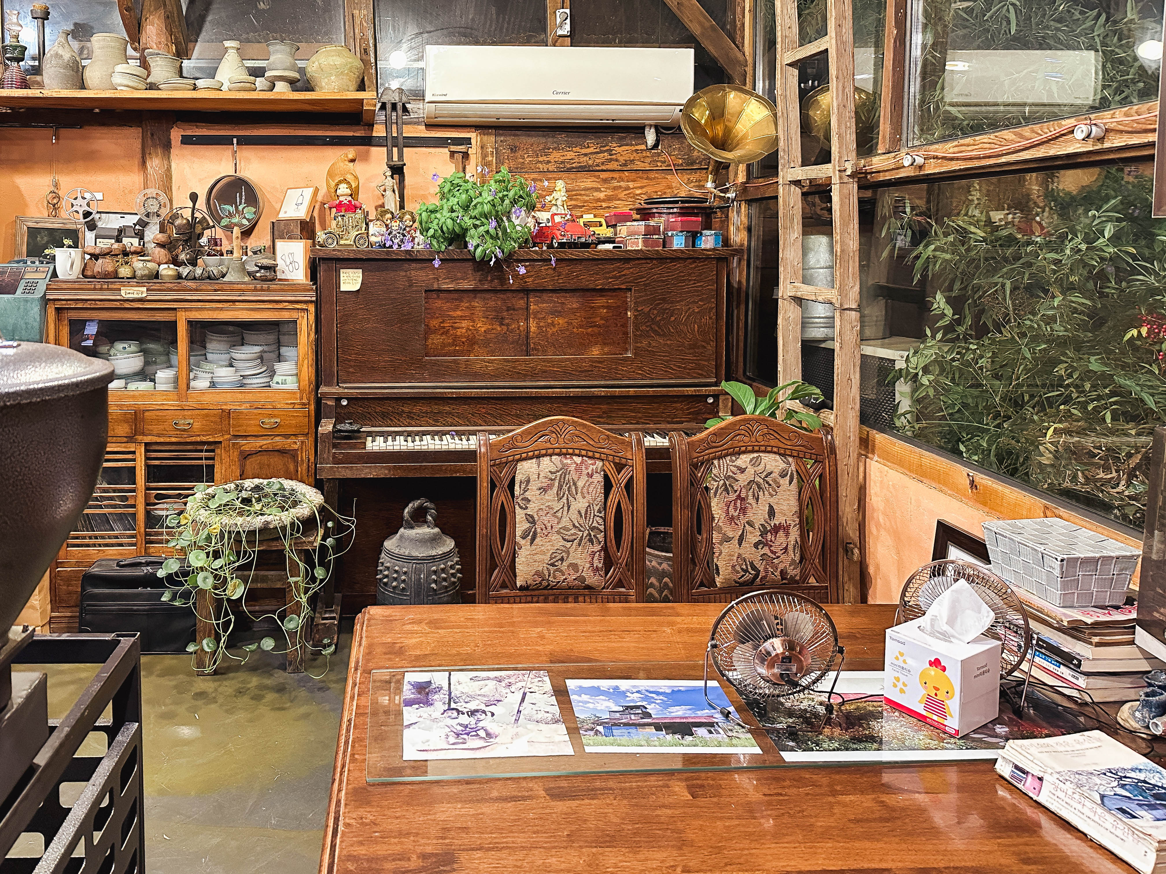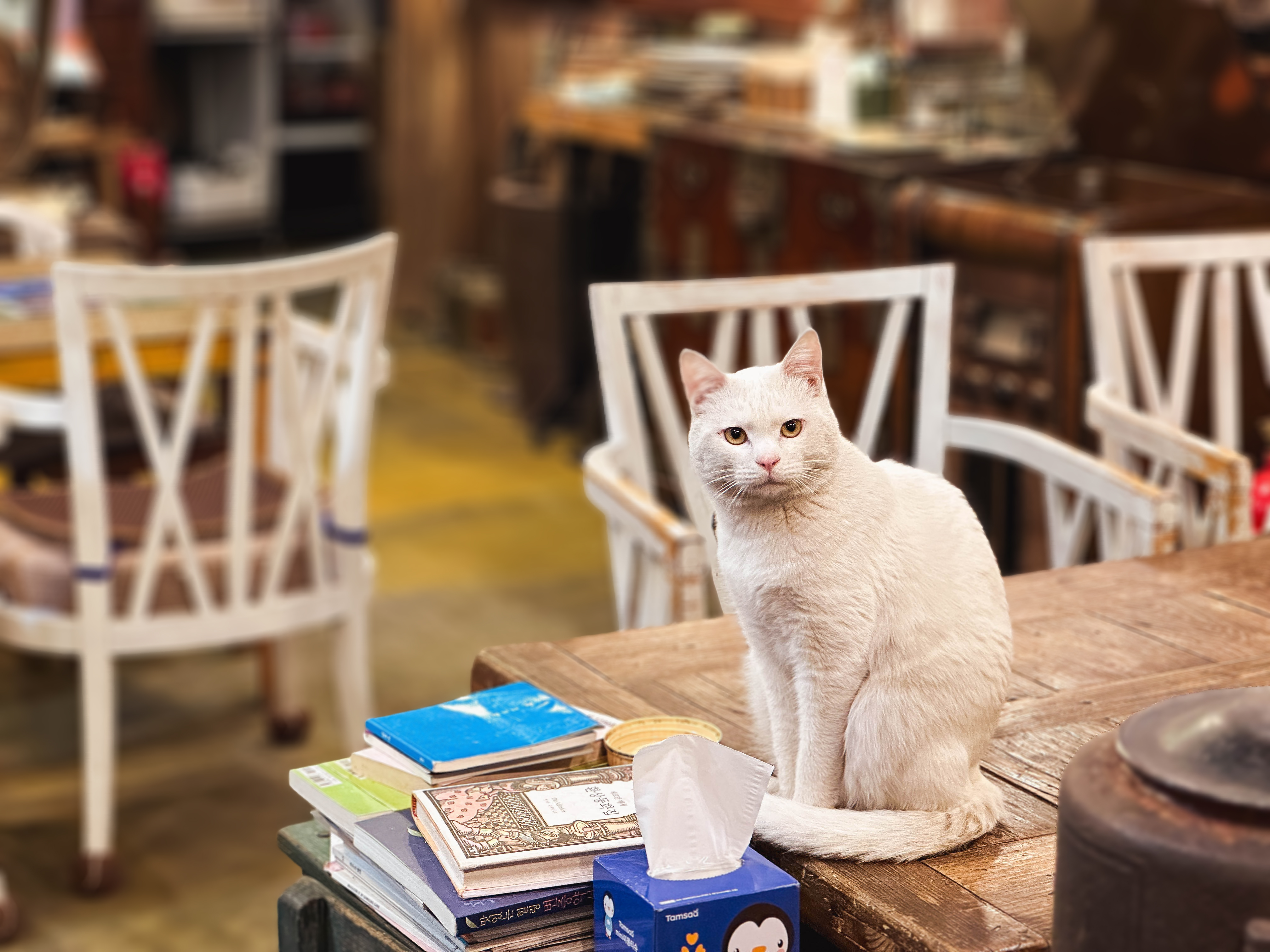 조금 더 가게의 디테일한 사진을 살펴보겠습니다. 고(古) 가구들과 다양한 그릇 및 집기들을 볼 수 있었고, 가게에서 키우는 것으로 보이는 고양이도 볼 수 있었습니다. 그럼 이제 제가 주문한 음료도 잠깐 소개해드리겠습니다.