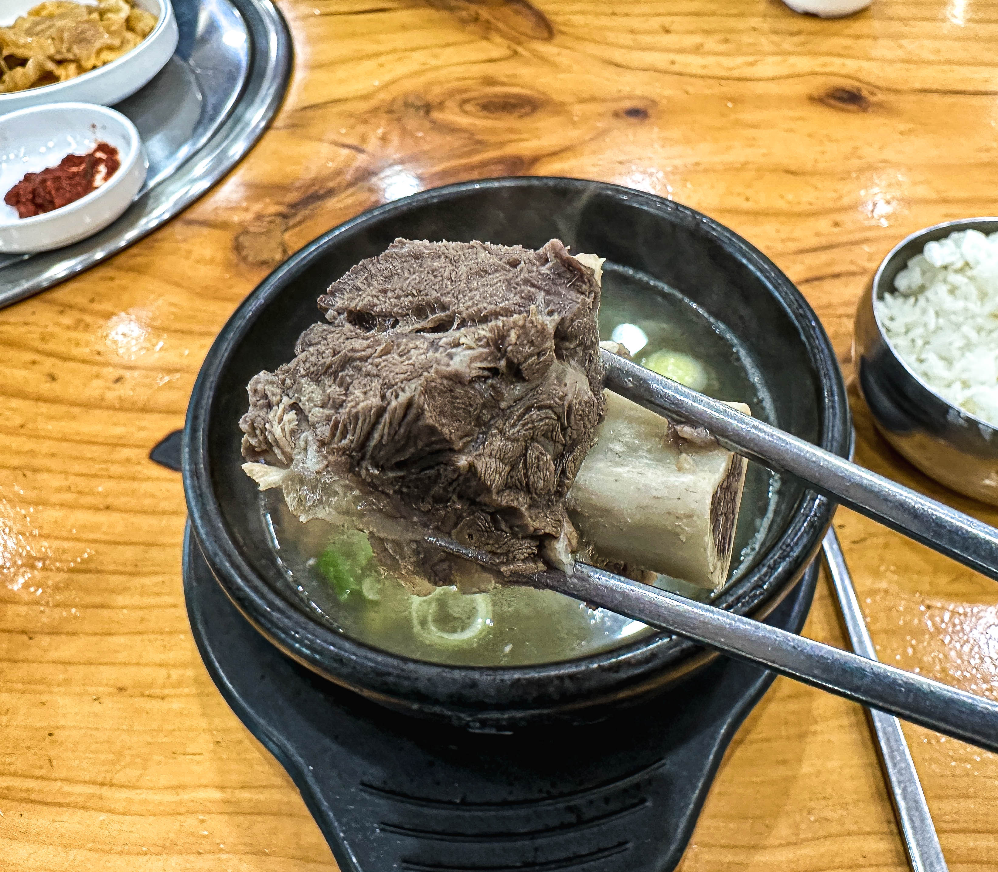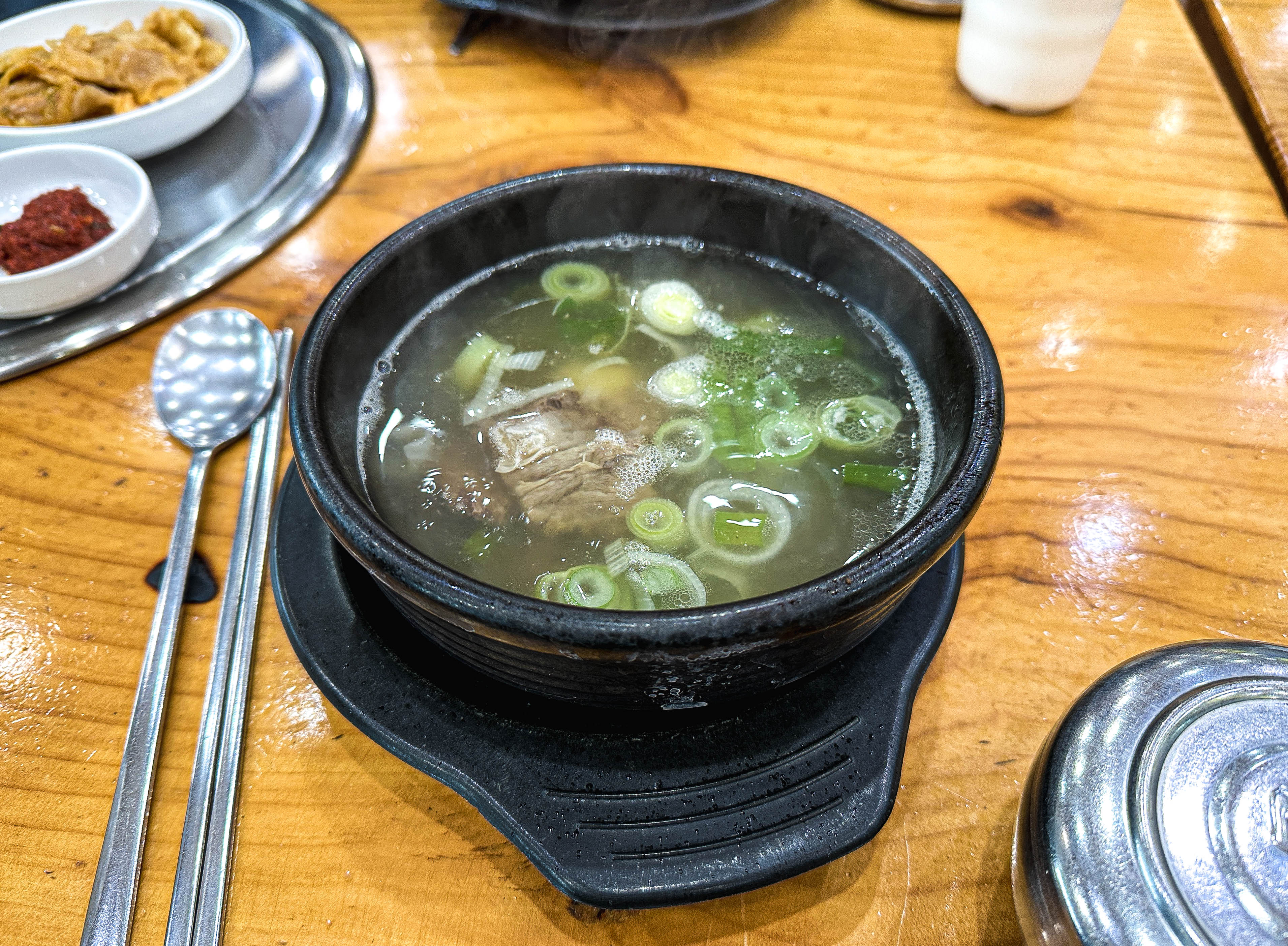 갈비탕 속의 갈비양은 생각보다 많지는 않았지만, 무난했던 것 같습니다. 너무 질기지도 않았고, 적당한 식감에 육향까지 있었던 메뉴였습니다. 국물도 너무 무겁거나 하지 않았고, 담백하고 좋았습니다. 관심 있으신 분은 한 번 이용해보셔도 좋을 것 같습니다.